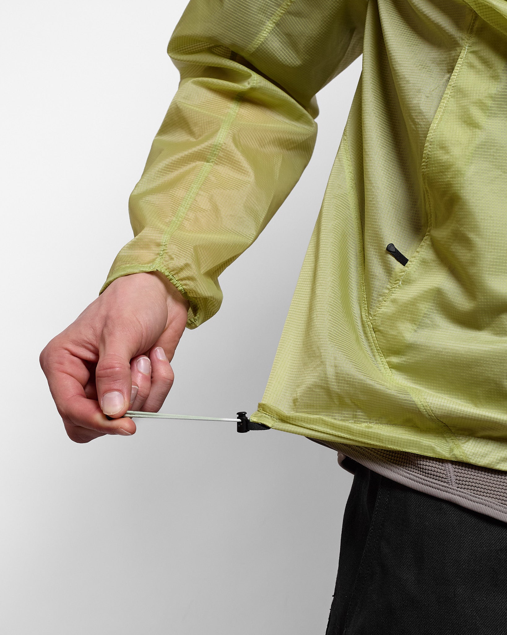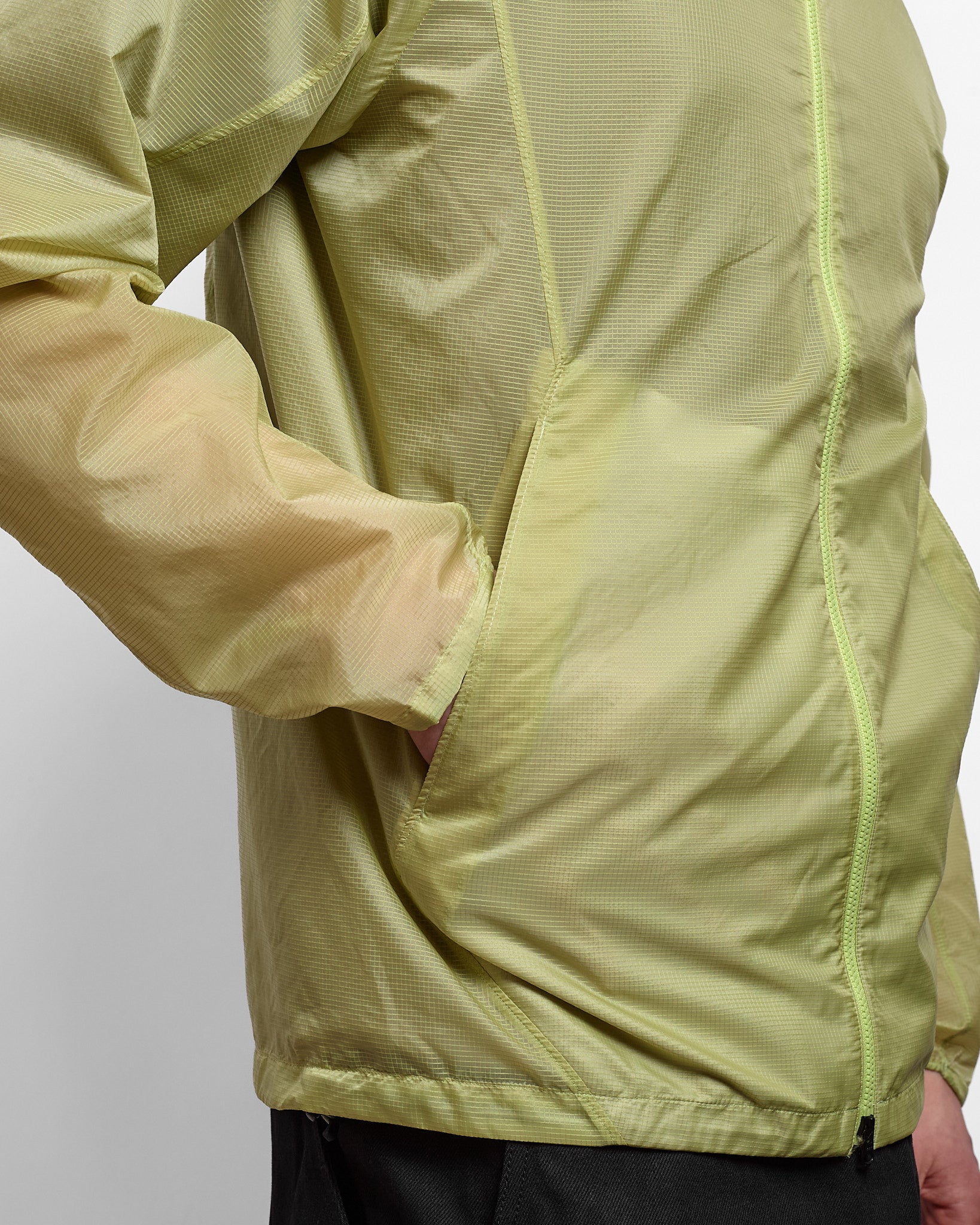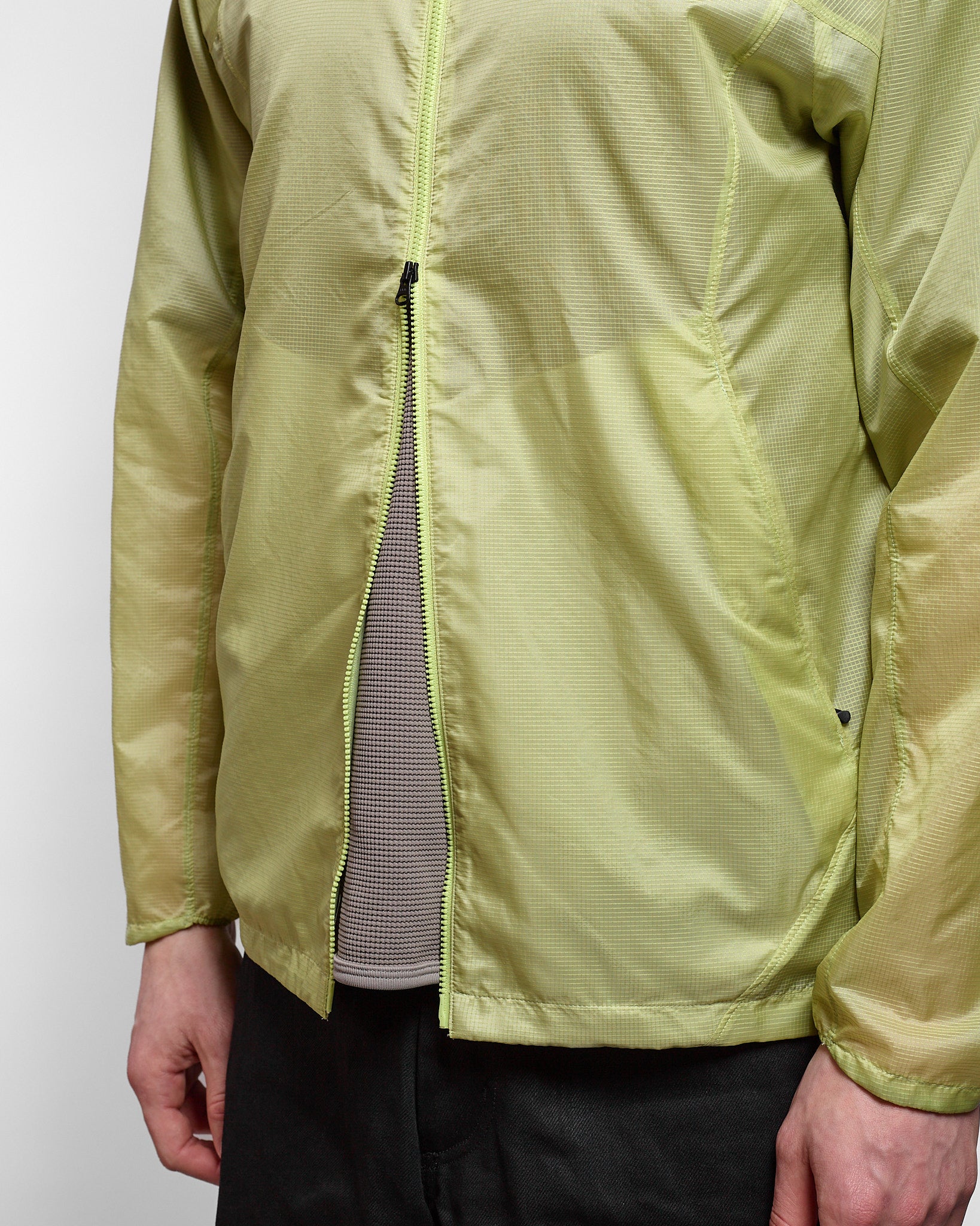 This gossamer-light wind jacket cuts the wind and looks good while doing it. Crafted from Goldwin’s original ripstop fabric, it combines a thin 10-denier base with reinforced ripstop sections for an optimal balance of weight and strength.
