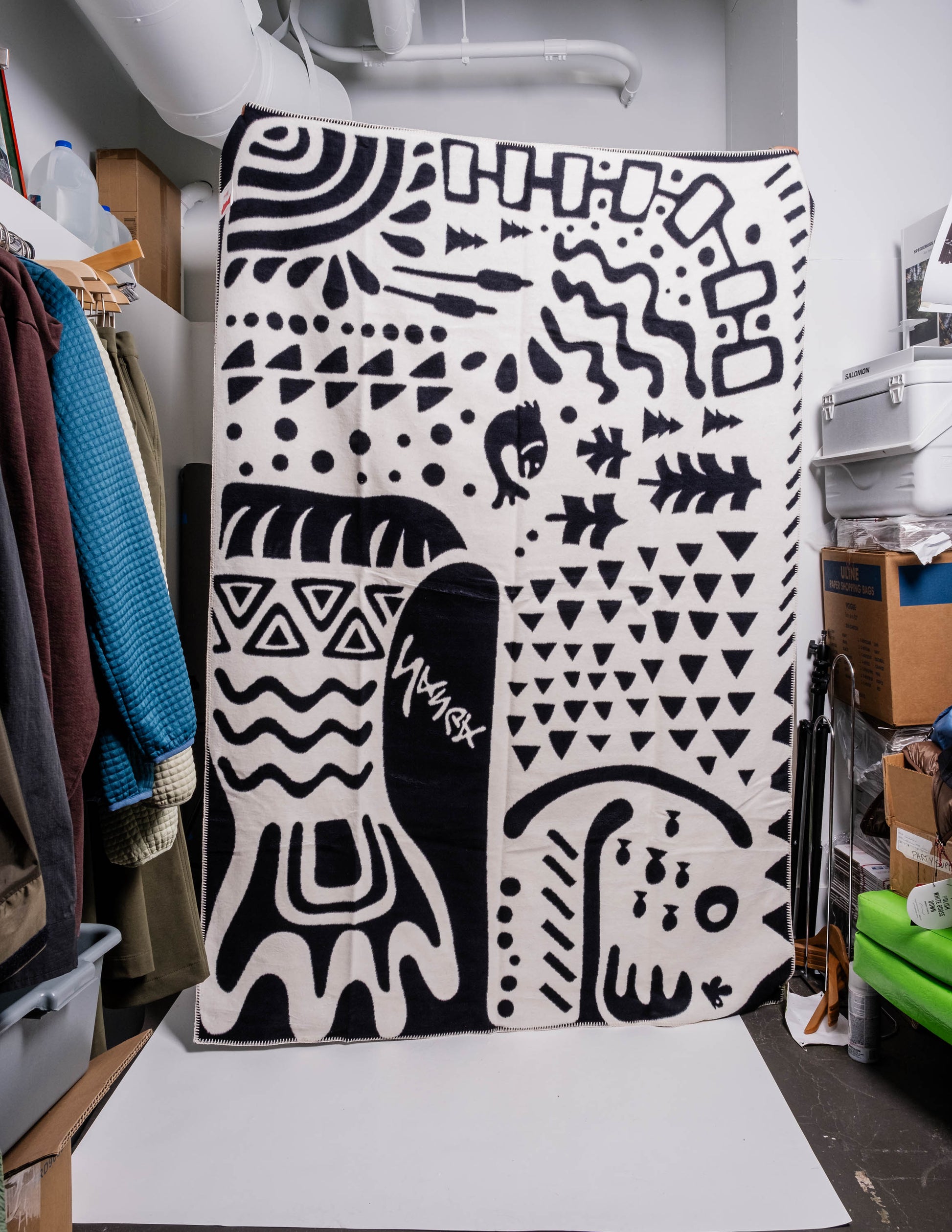 A giant, cozy jacquard blanket featuring a mythical ancient fish. Snuggle up.
