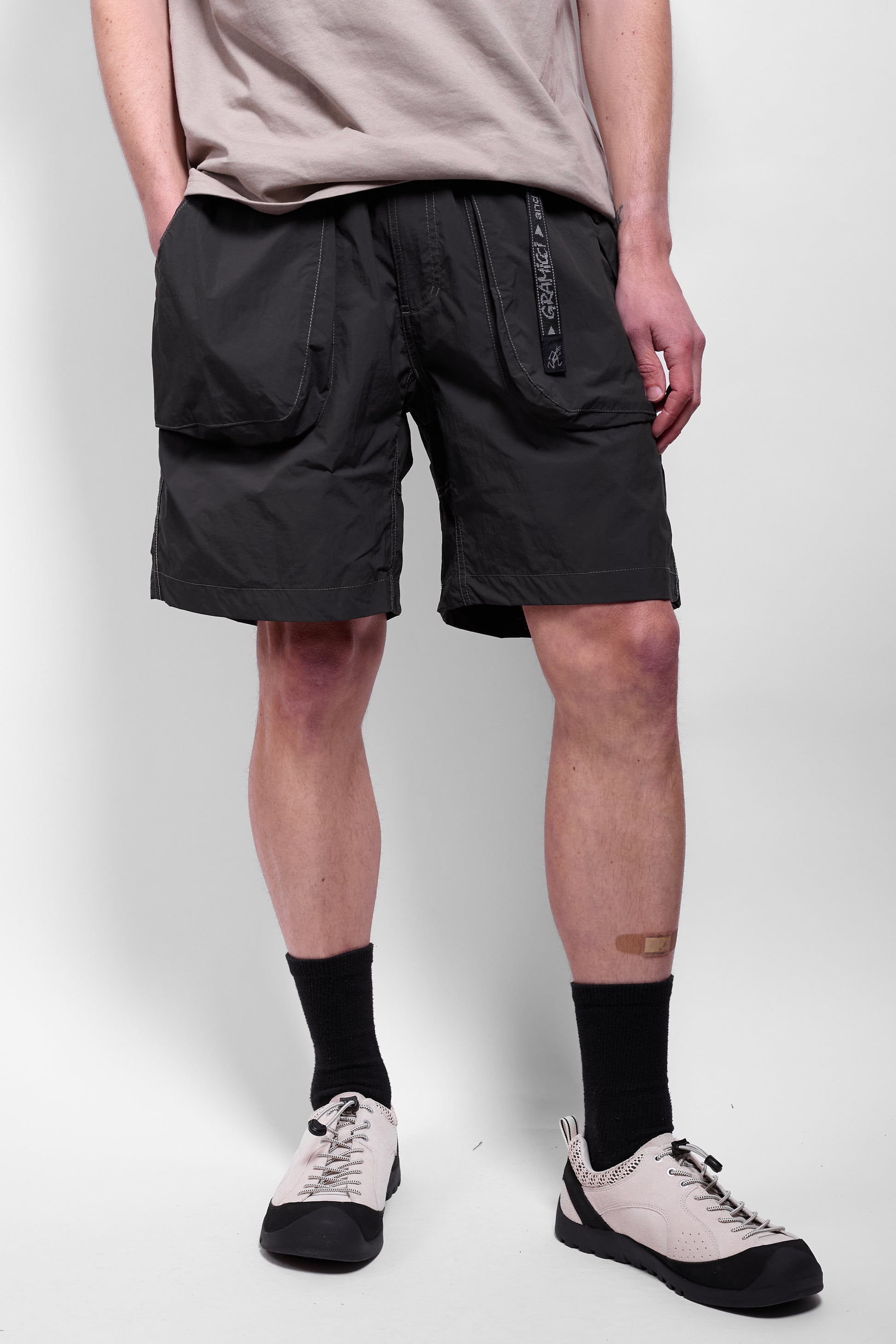 Part of Gramicci's ongoing collaborative series with fellow Japanese luminaries andWander, these shorts are constructed from a brushed water-repellant nylon. They feature the latter's signature reflective stitching and have big 3D button-closure pockets.