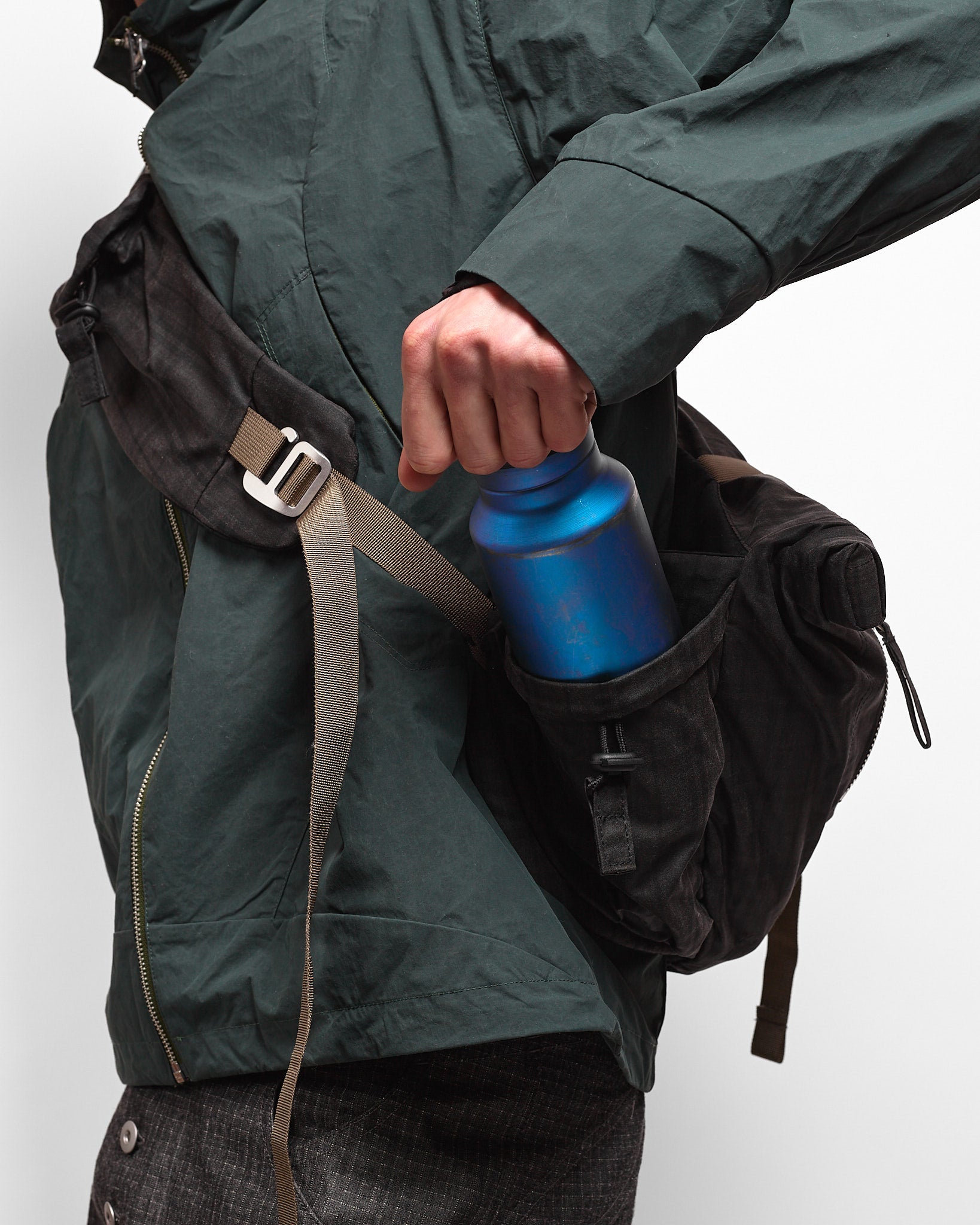 - Adjustable bottle pouch and a phone pouch on the body strap