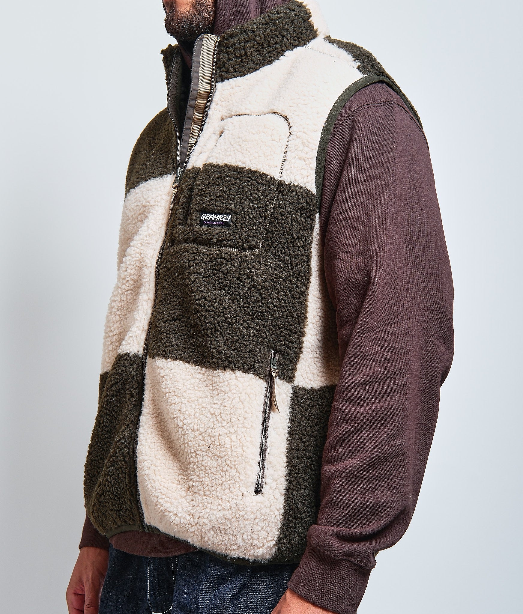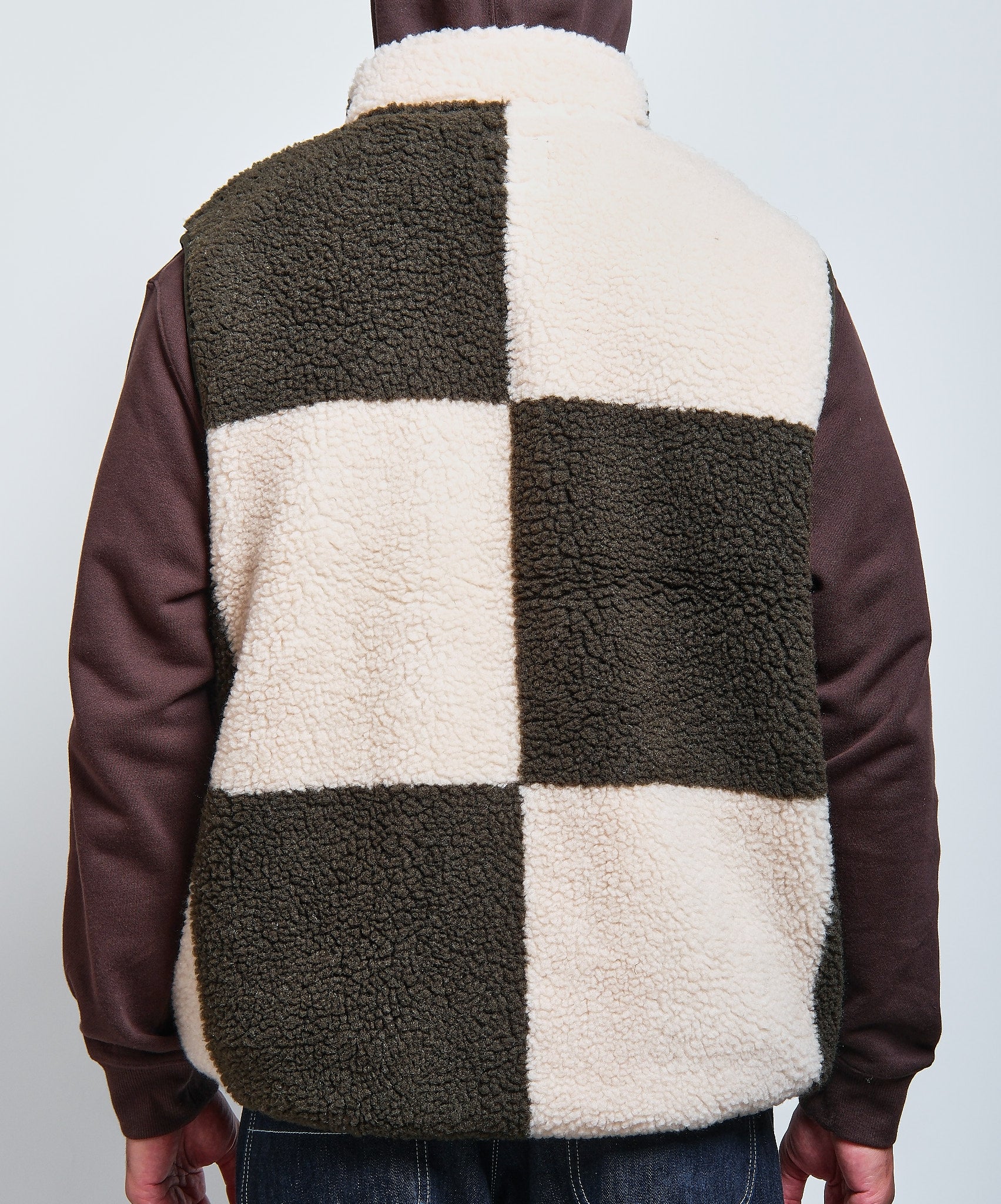 Checkered Sherpa Vest in Natural/Olive Check