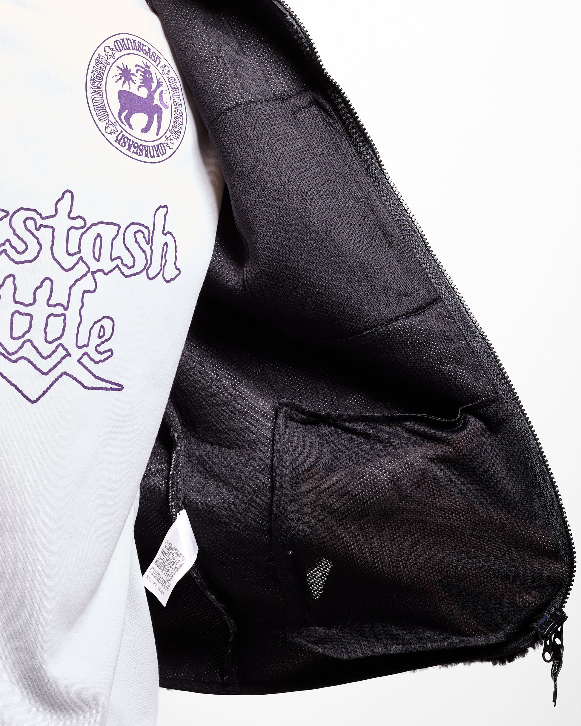 - Two-way front zip, along with a zippered chest pocket and two zippered front pockets