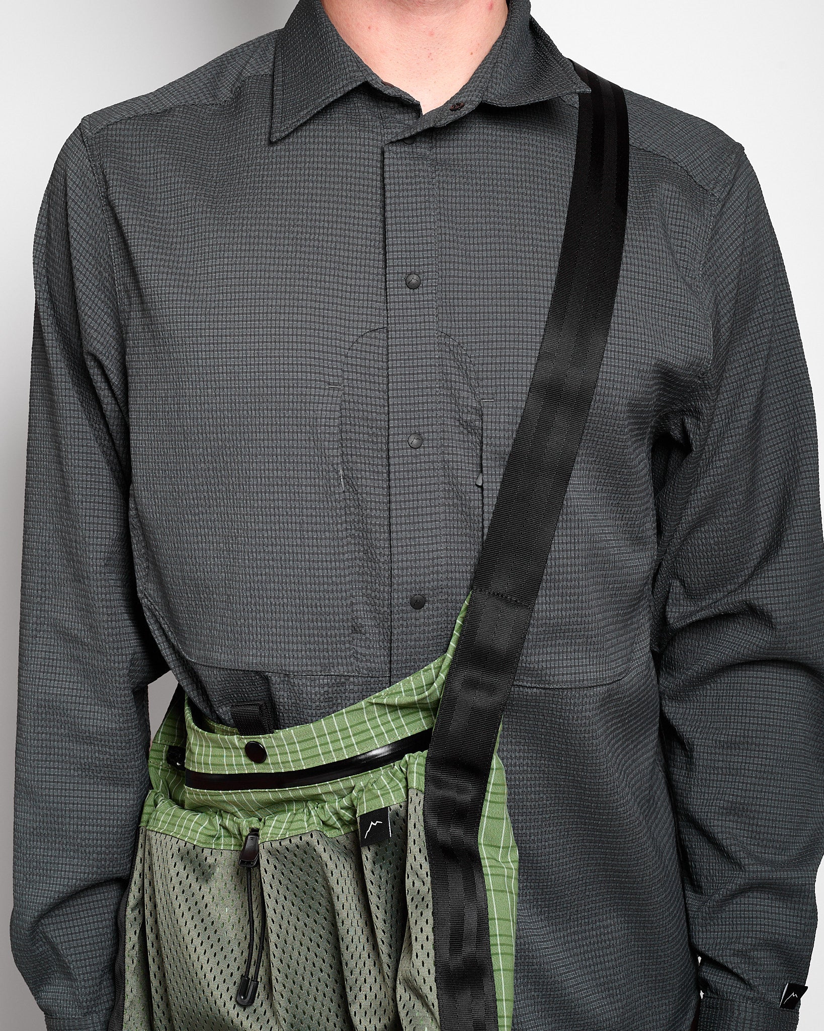 A smooth and stretchy crossbody sling from CAYL. It's anchored by a wide webbing strap and features lots of practical storage options. Plus, it comes in a unique check pattern—can't go wrong with that!
