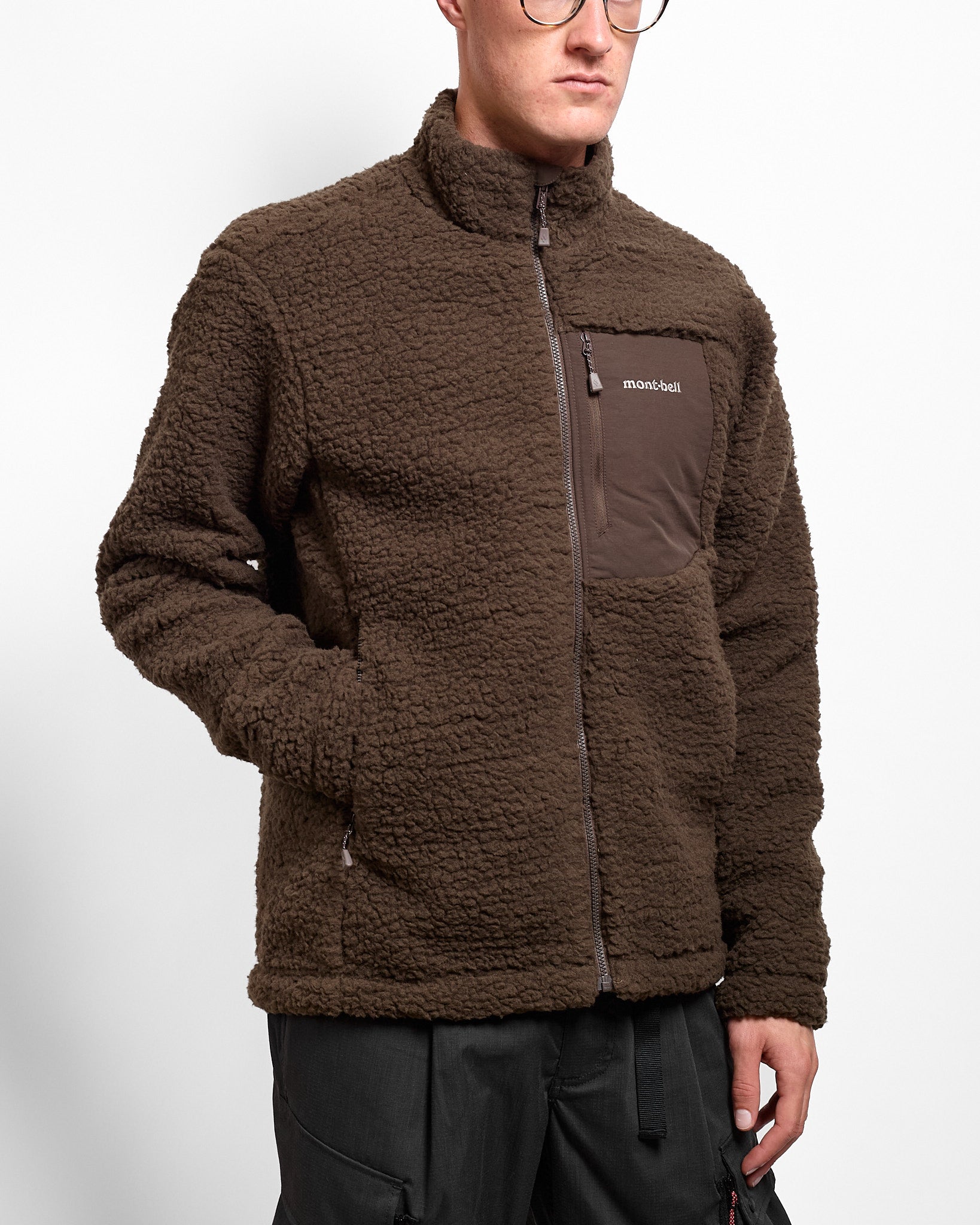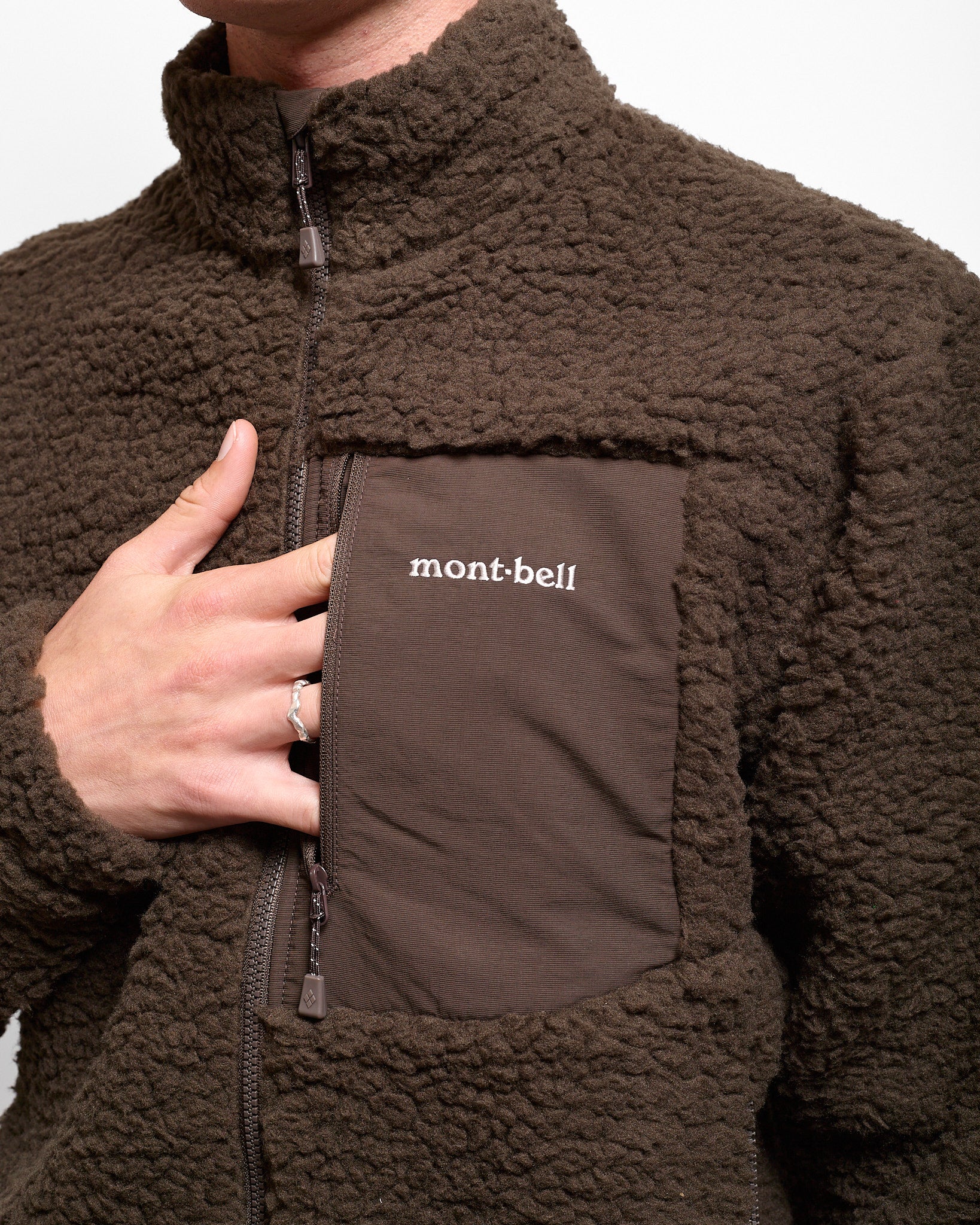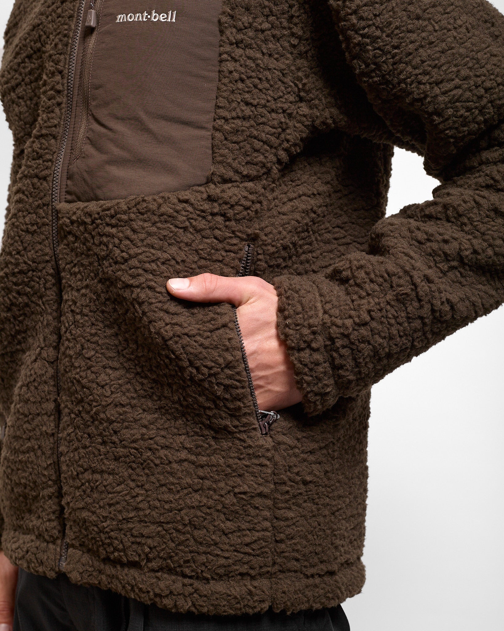 This thick fleece features a fluffy, wool-like texture to provide excellent warmth as an outer layer in cold conditions. It comes with a smooth, wind-resistant lining, making it easy to slide over other layers while also helping to block out wind. The lining fabric along the back and sleeves is arranged diagonally to facilitate stretch for enhanced comfort.