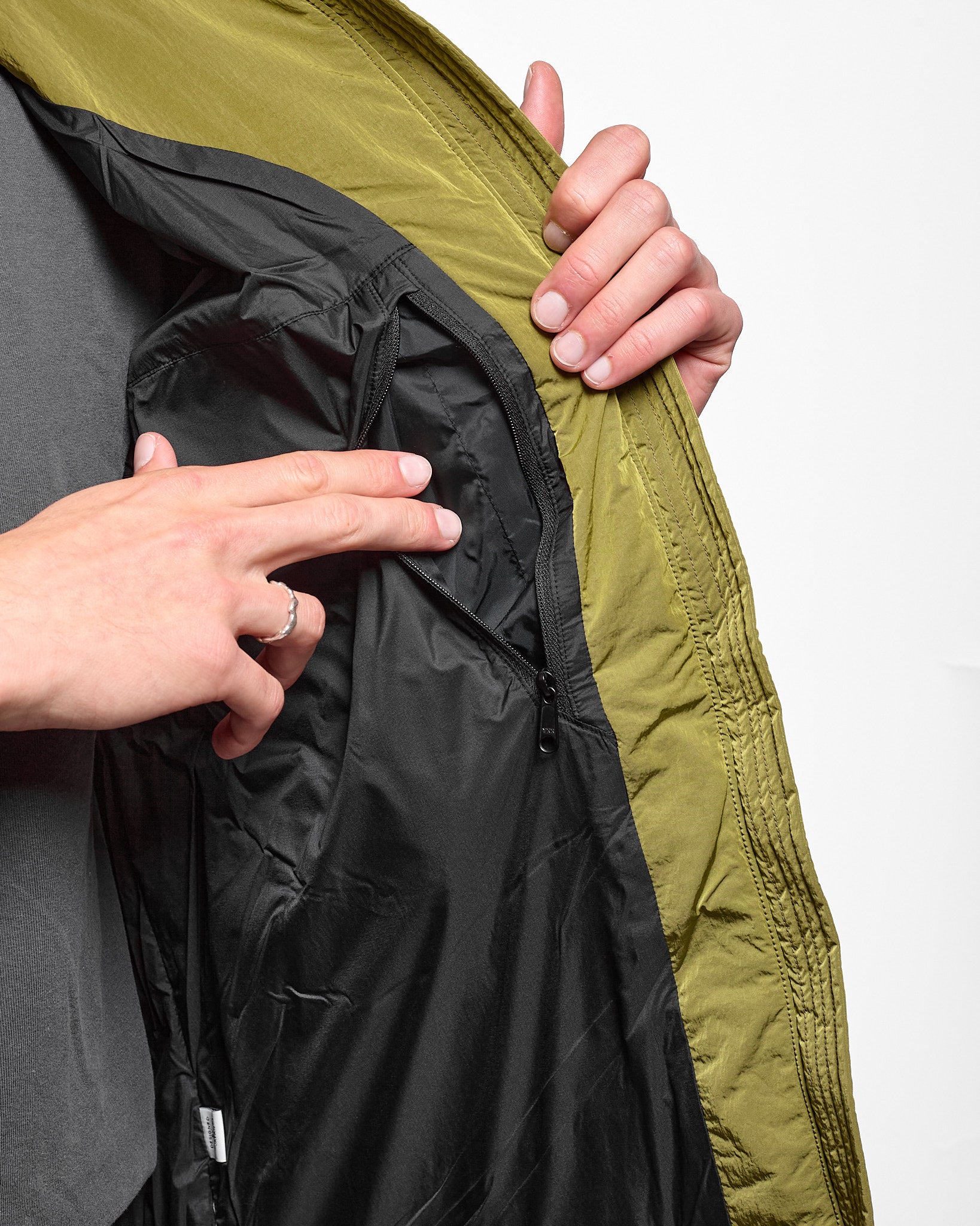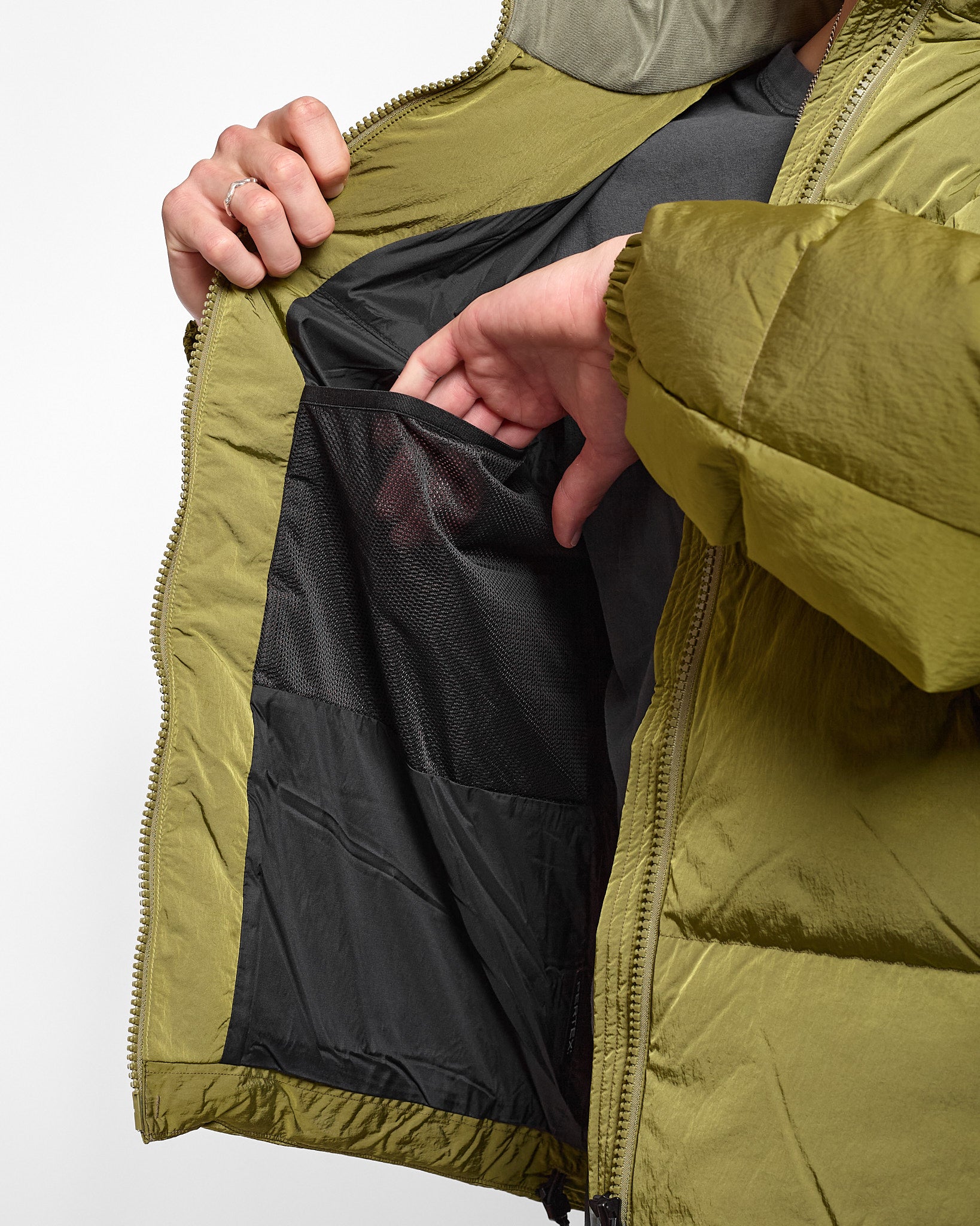 Dope Dyed Ripple Nylon Down Jacket in Uji Tea