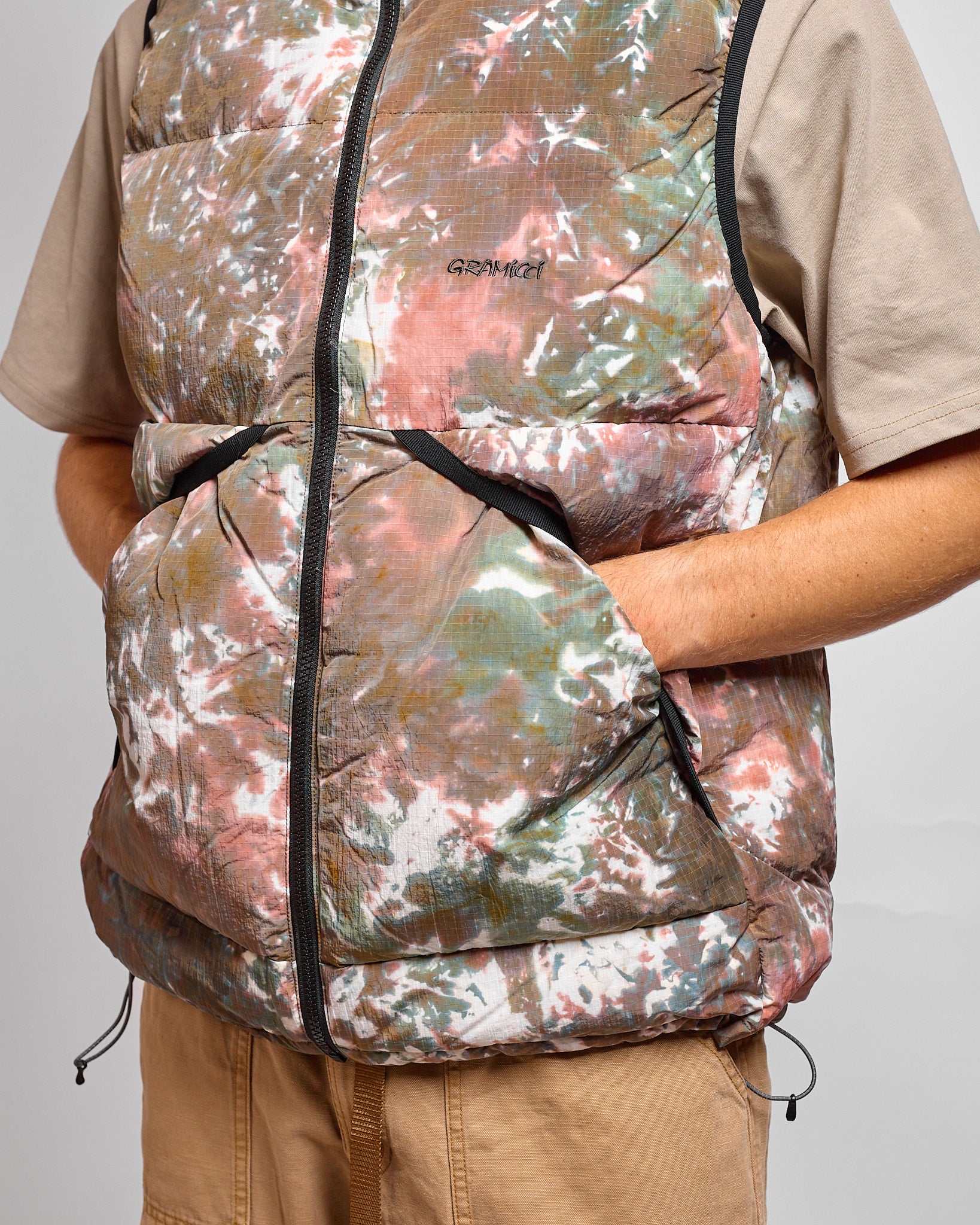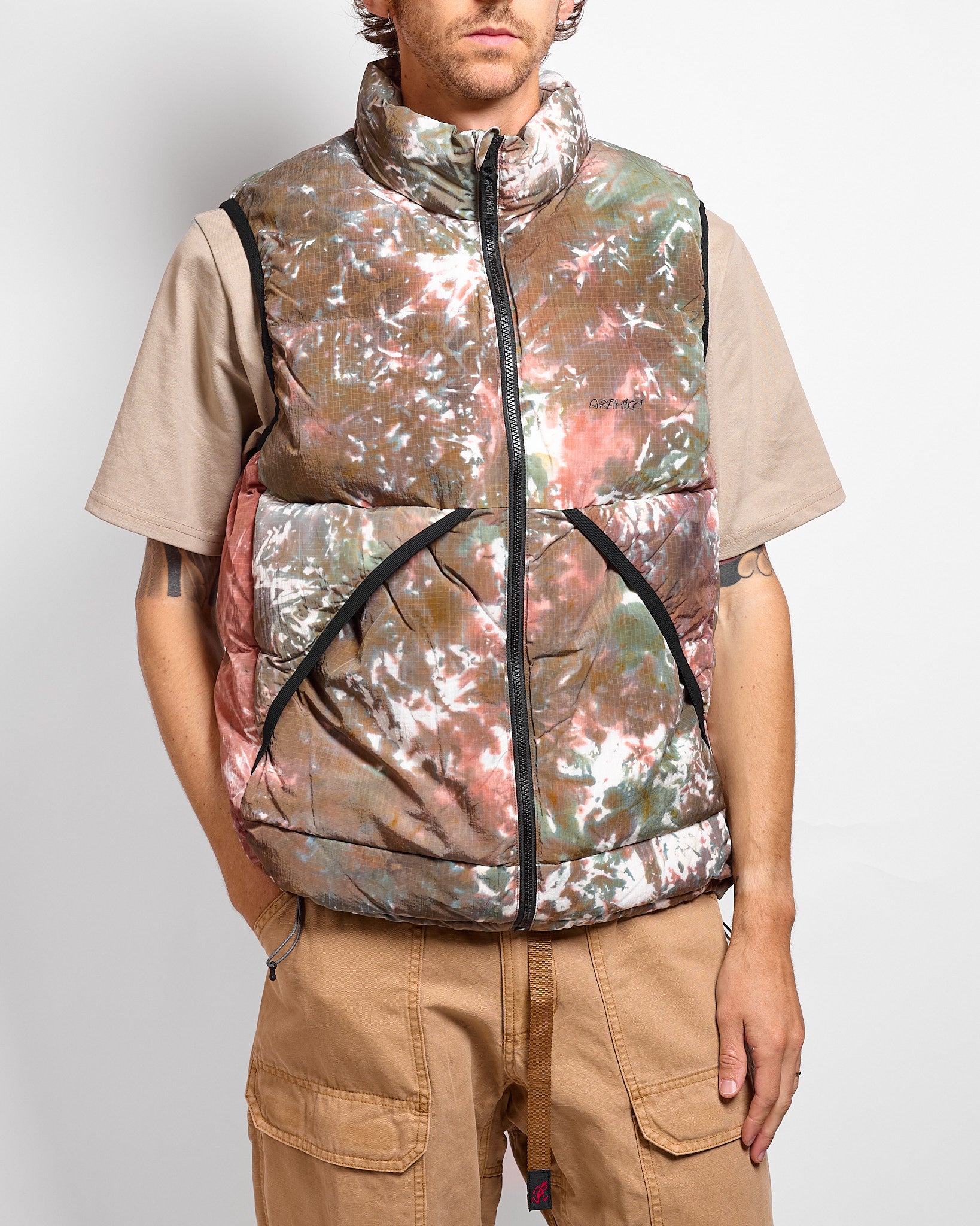 Gramicci's take on the classic down vest. This piece is stuffed with 80/20 down fill, and possesses an utterly unique tie-dye nylon ripstop shell.