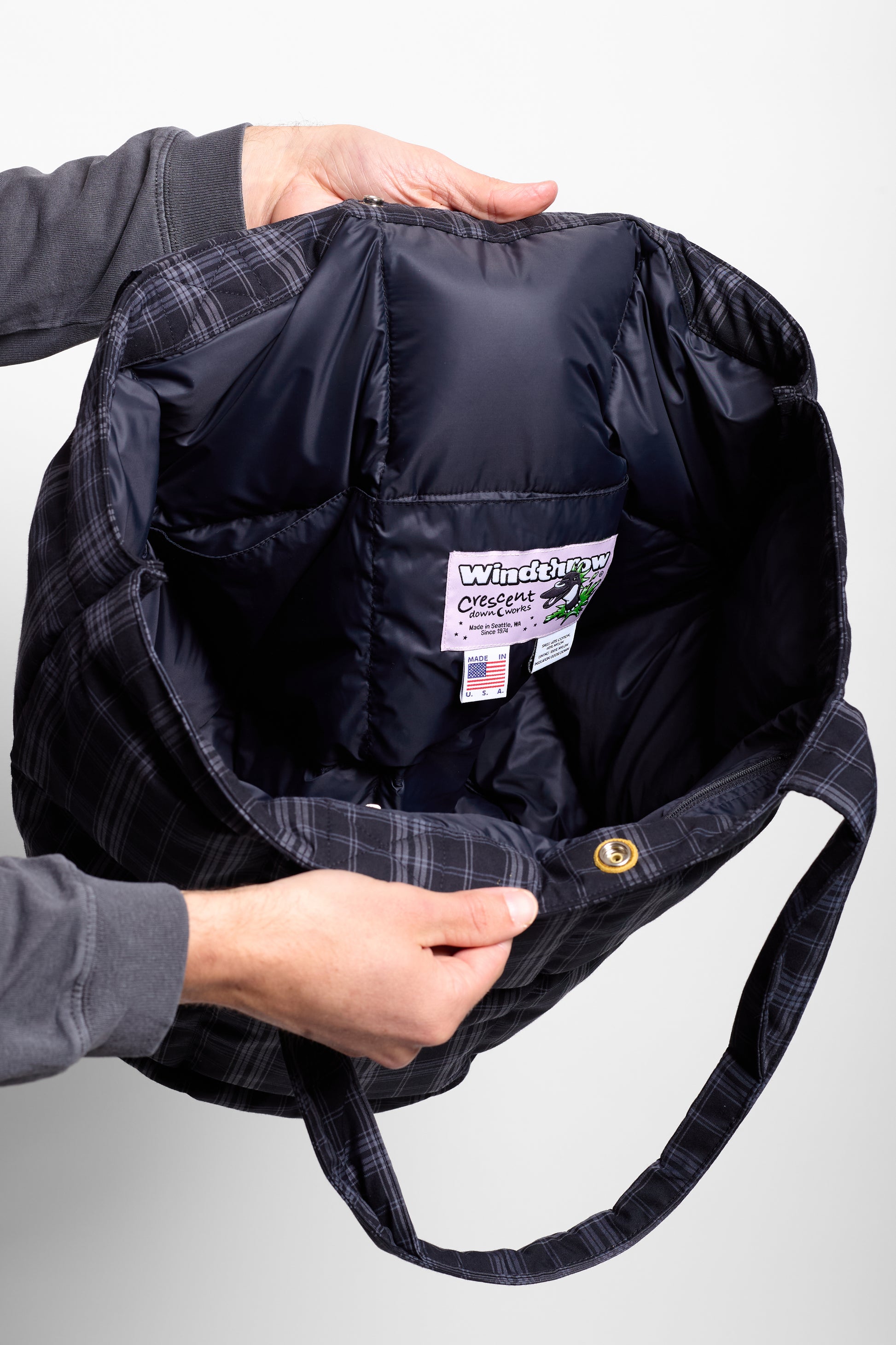Sometimes your stuff has gotta stay cozy. This version of Crescent Down Works's Down Tote is made with a deadstock 60/40 plaid fabric that makes it feel a little more punk-English-countryside...or something like that. This was combined with a lux streakfree nylon lining and filled with the brand's legendary 3oz 700+ goose down that easily doubles as a cozy travel pillow.