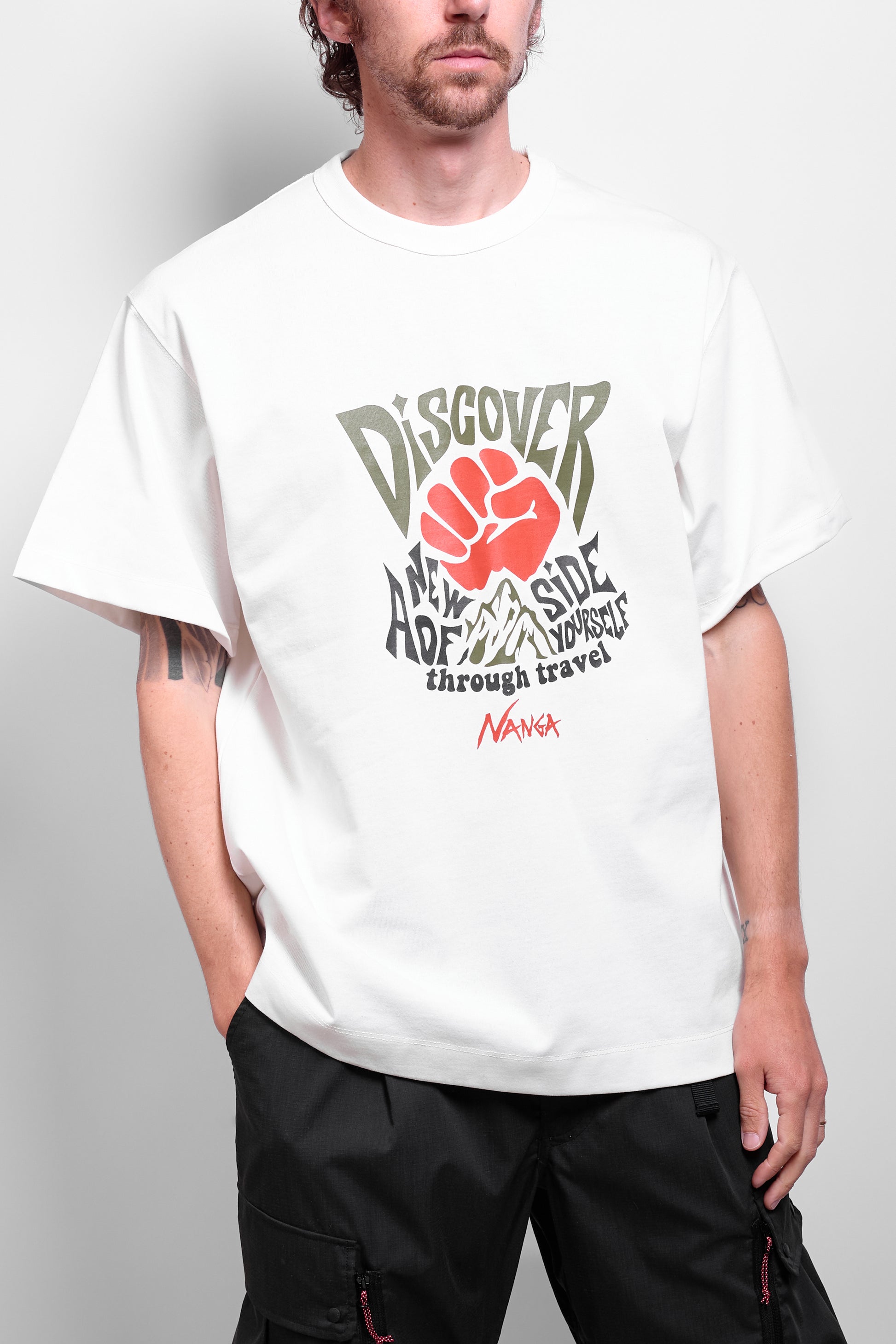 Discover yourself through travel! This graphic tee is cut from Ferre Yarn, a recycled poly/cotton fabric from Spain that boasts a very low environmental impact.