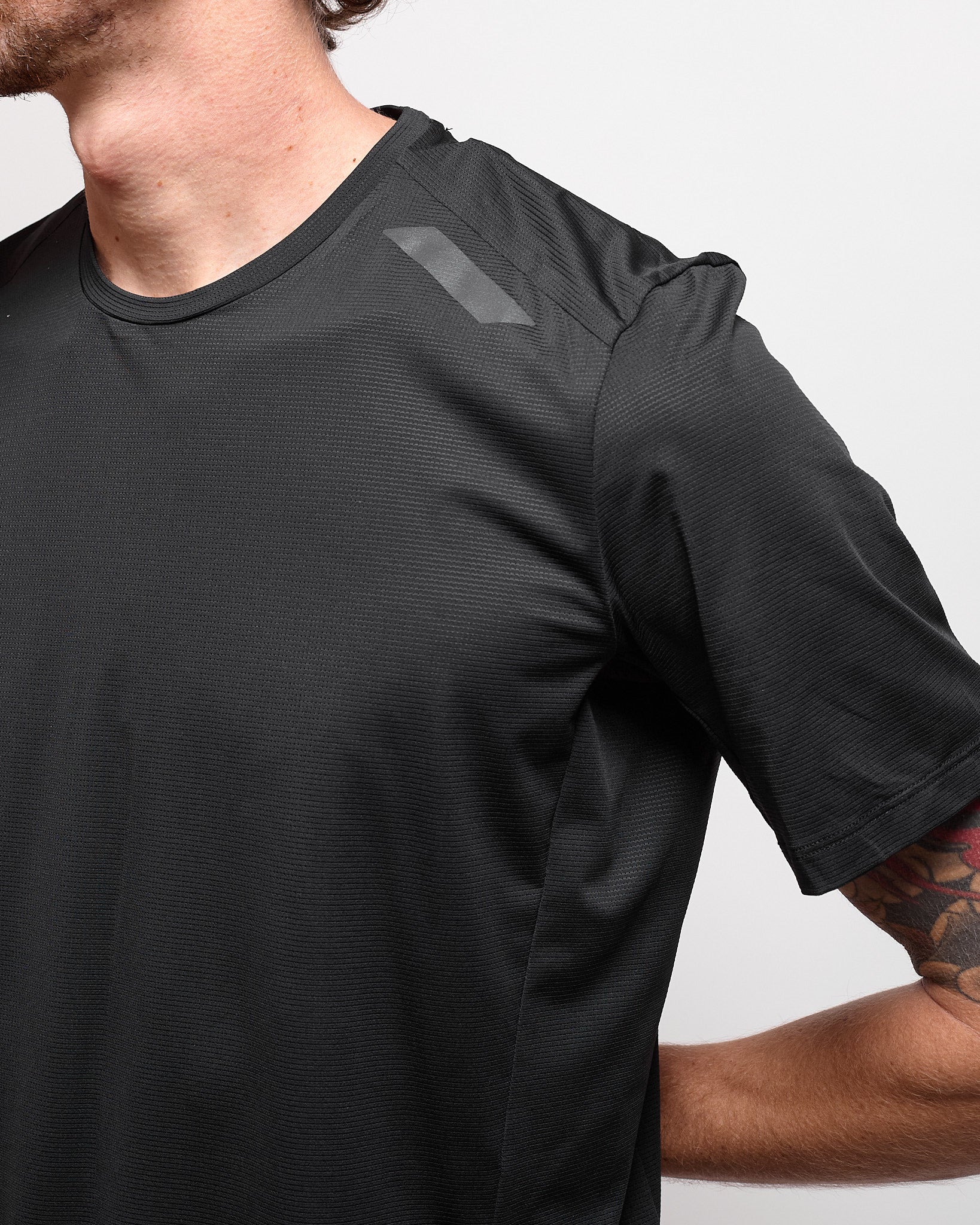 A technical tee made of a recycled, lightweight mesh fabric. SOAR has engineered this fabric with a touch of elastane for added mobility and smoothness and gotten the fit just right for running, hiking or anytime you want a shirt to sweat in. A foundational piece of apparel for any active wardrobe.