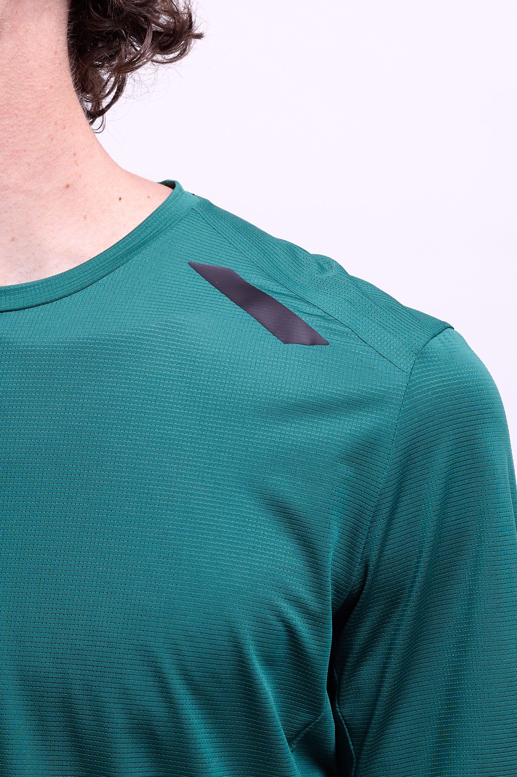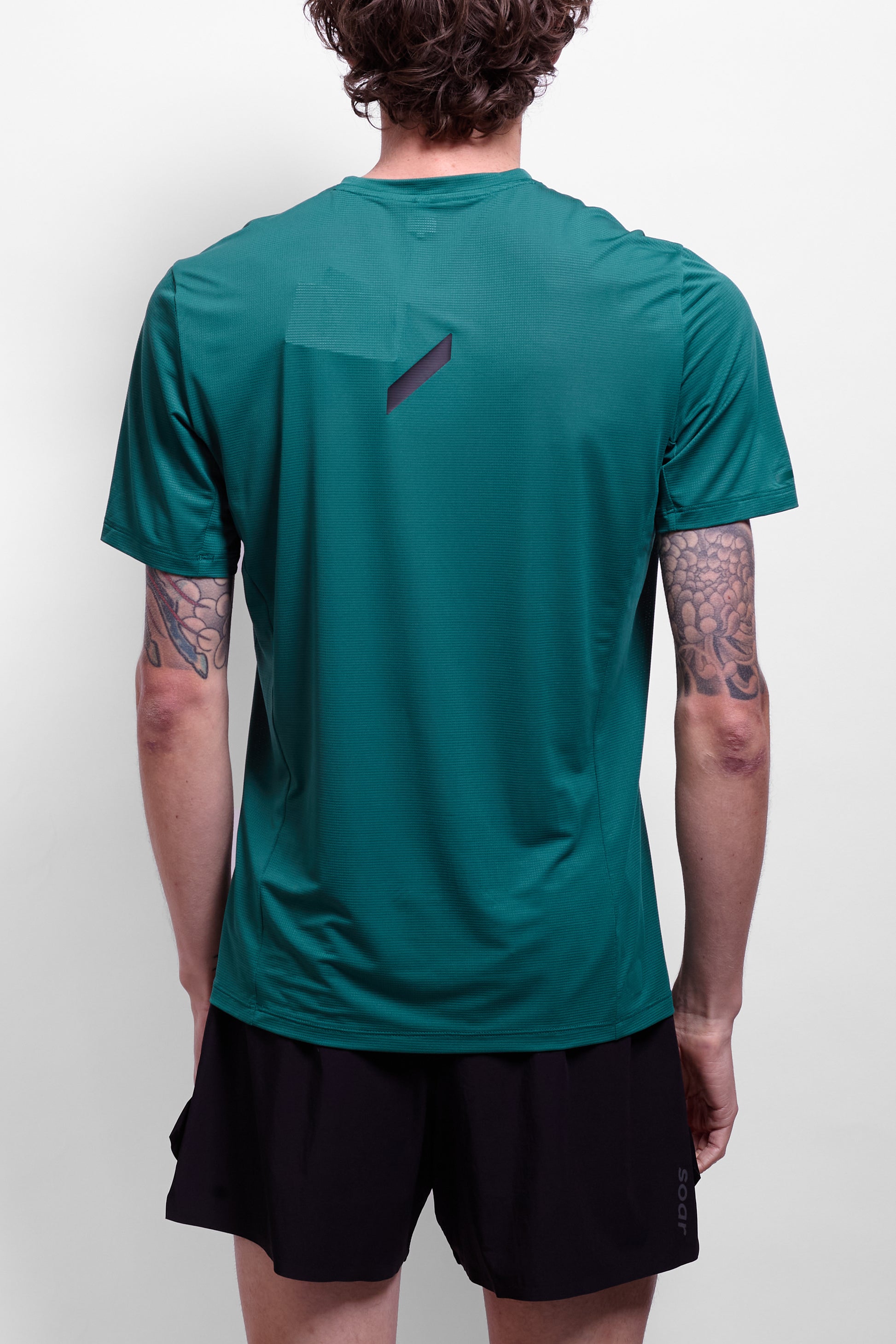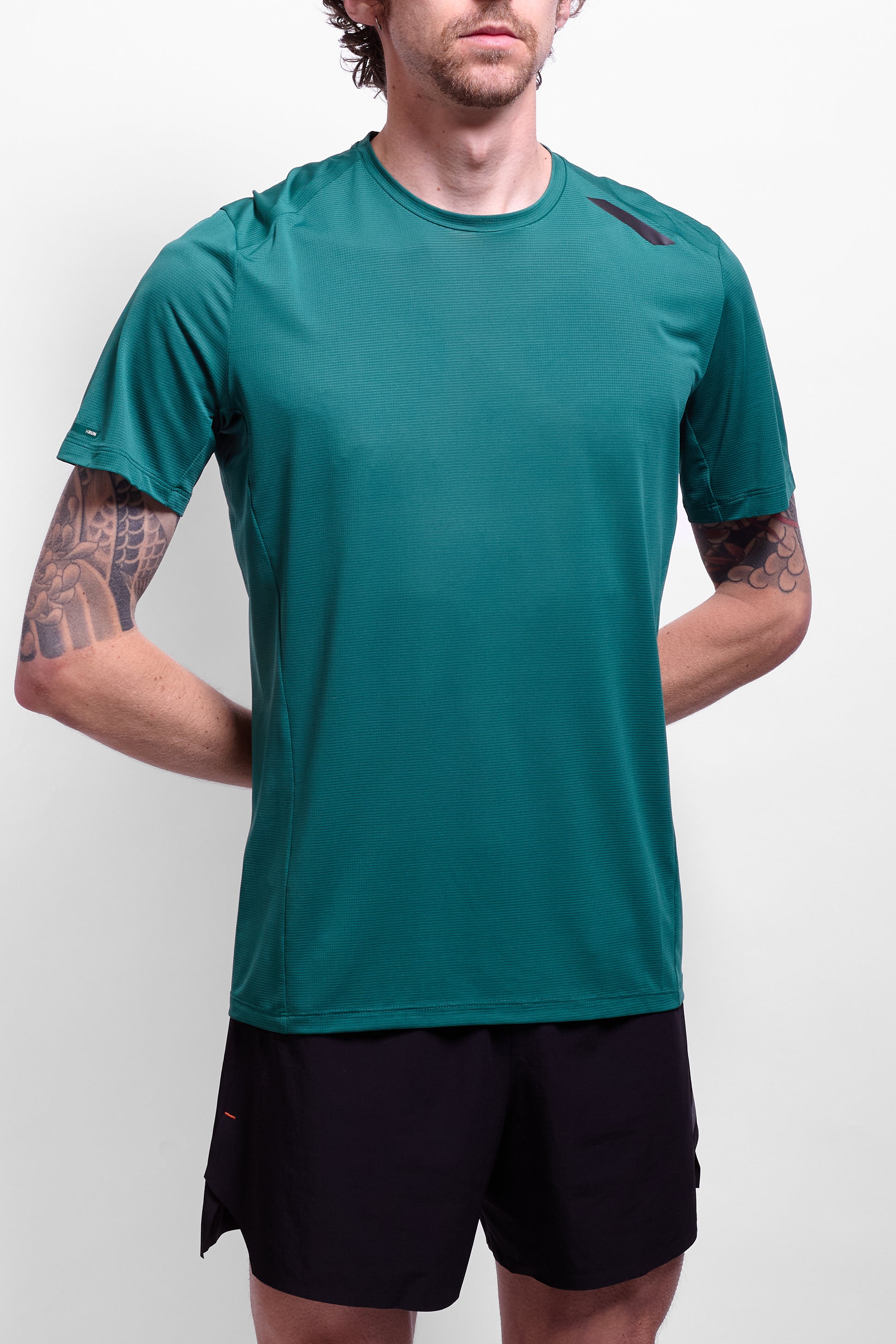 A technical tee made of a recycled, lightweight mesh fabric. SOAR has engineered this fabric with a touch of elastane for added mobility and smoothness and gotten the fit just right for running, hiking or anytime you want a shirt to sweat in. A foundational piece of apparel for any active wardrobe.