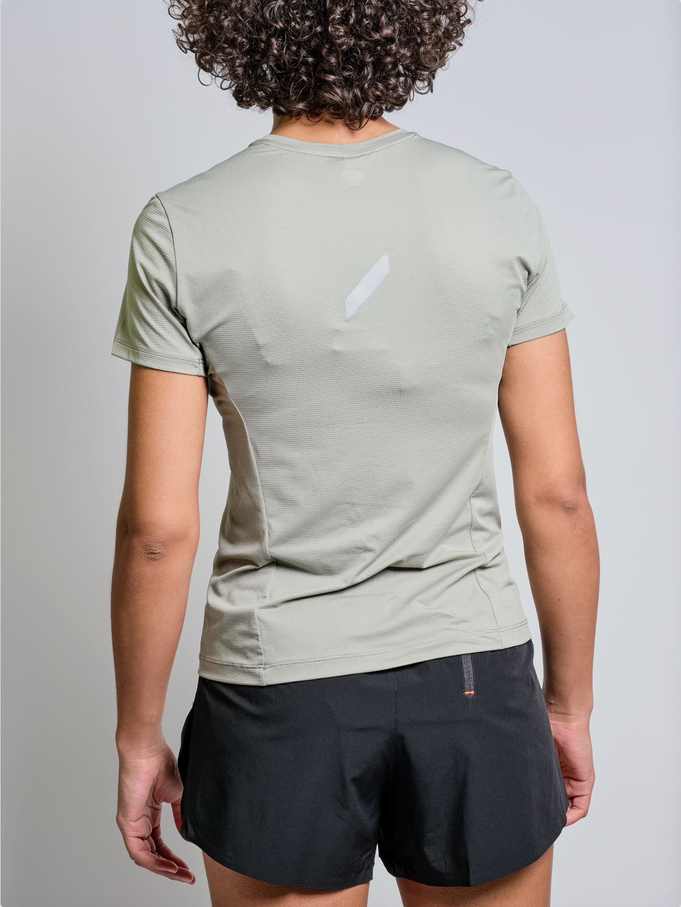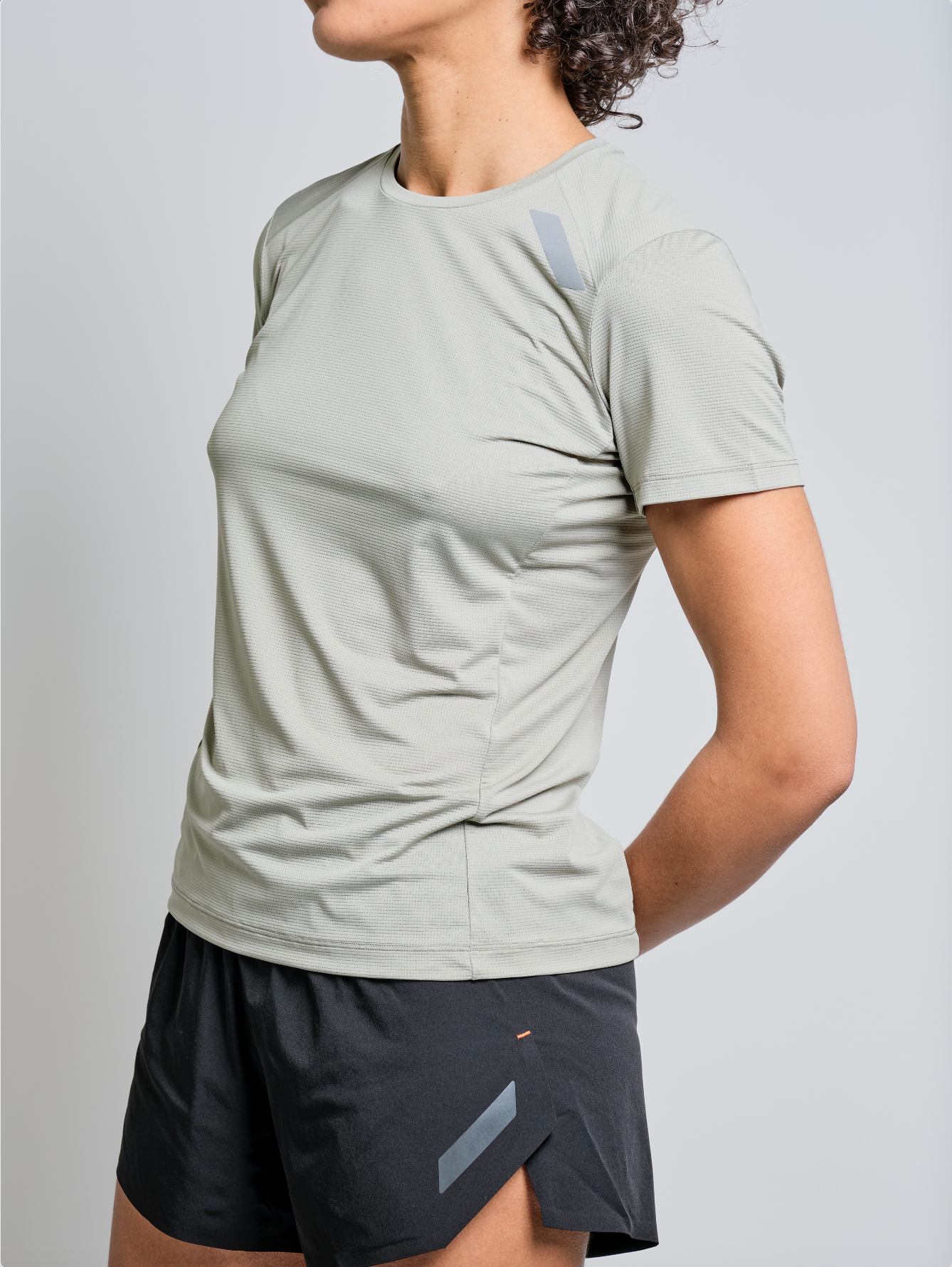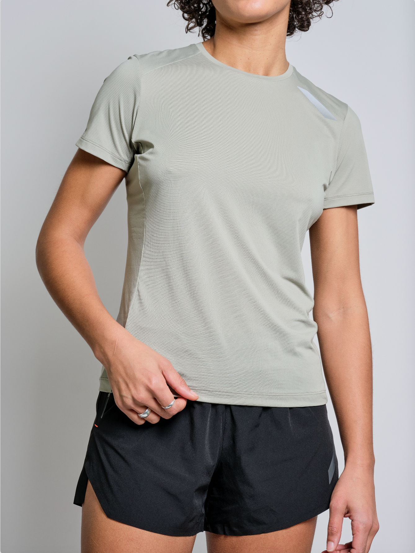 A technical tee made of a recycled, lightweight mesh fabric. SOAR has engineered this fabric with a touch of elastane for added mobility and smoothness and gotten the fit just right for running, hiking or anytime you want a shirt to sweat in. A foundational piece of apparel for any active wardrobe.