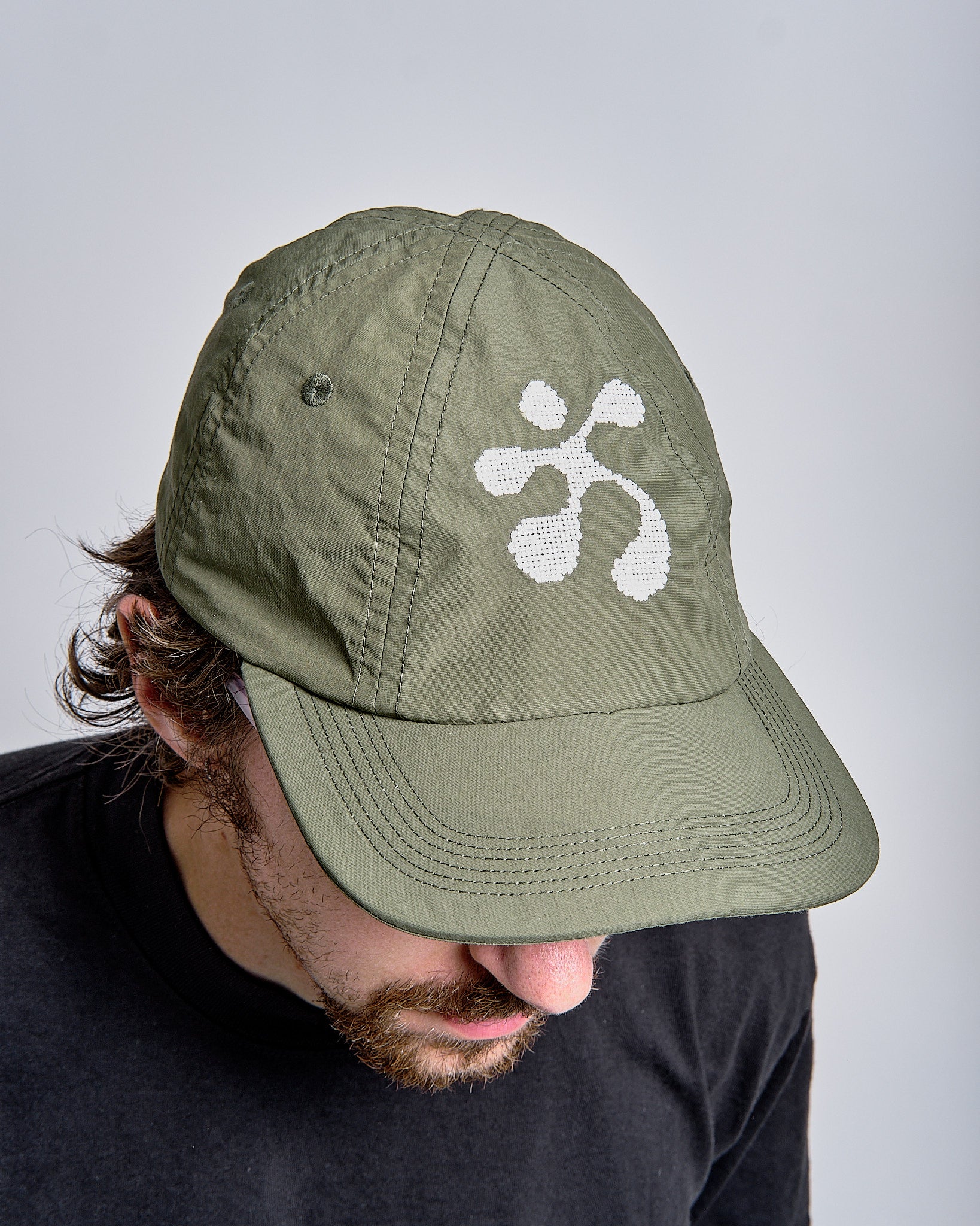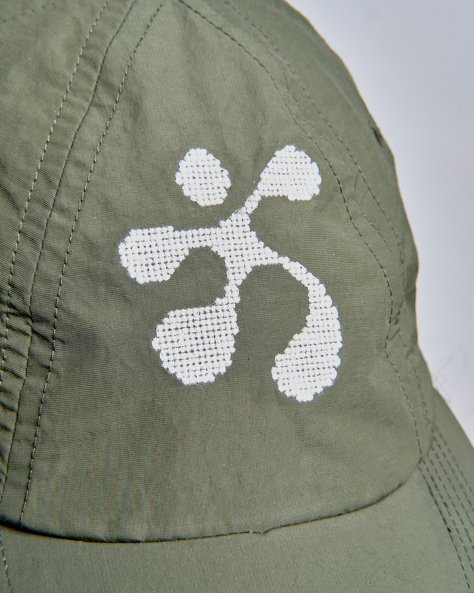 A lightweight hat constructed of a moisture-wicking nylon/cotton blend. The front features our collaborative mascot embroidered with a unique dot effect, and the back utilizes a a sturdy adjustable fastener.