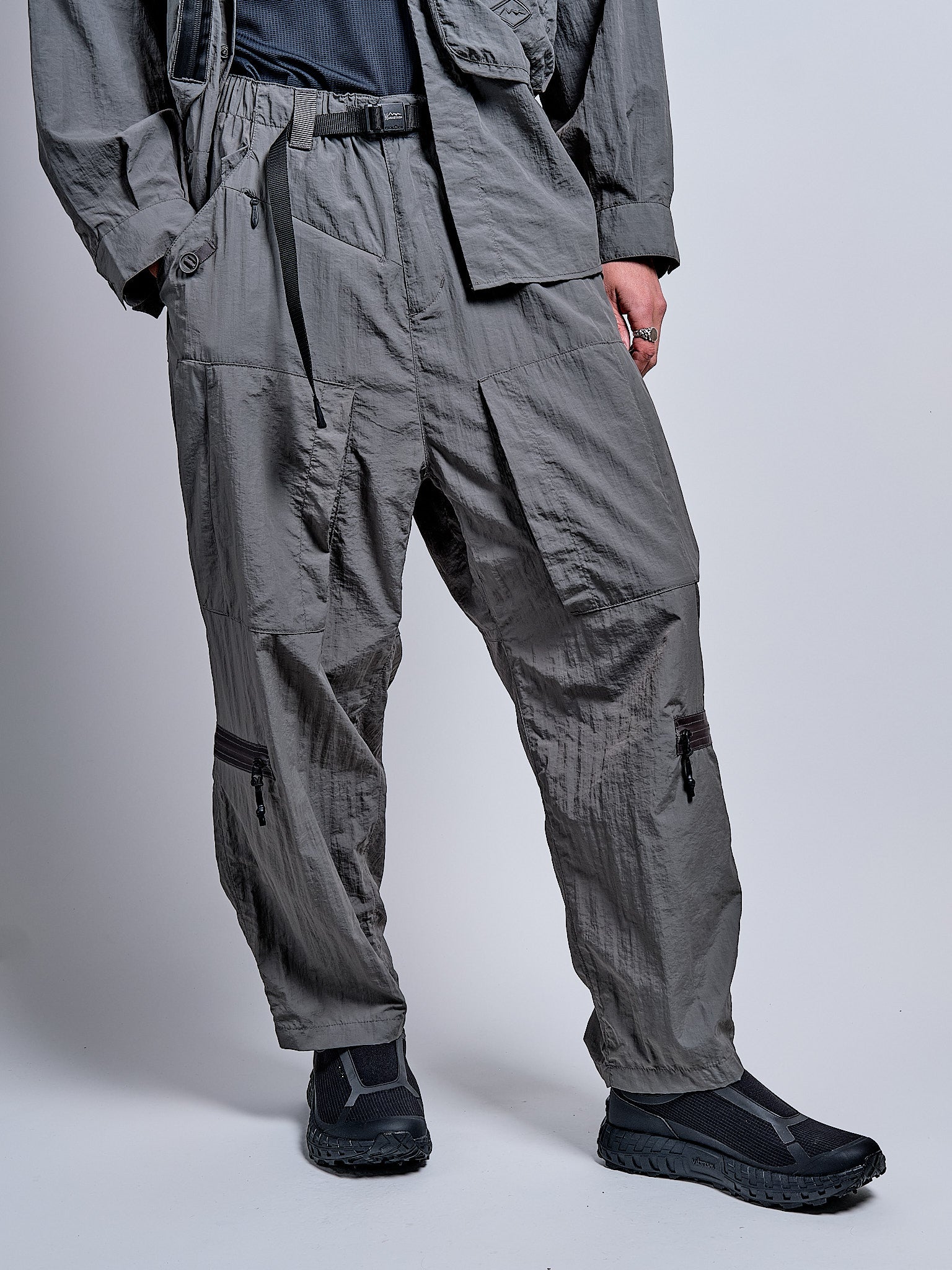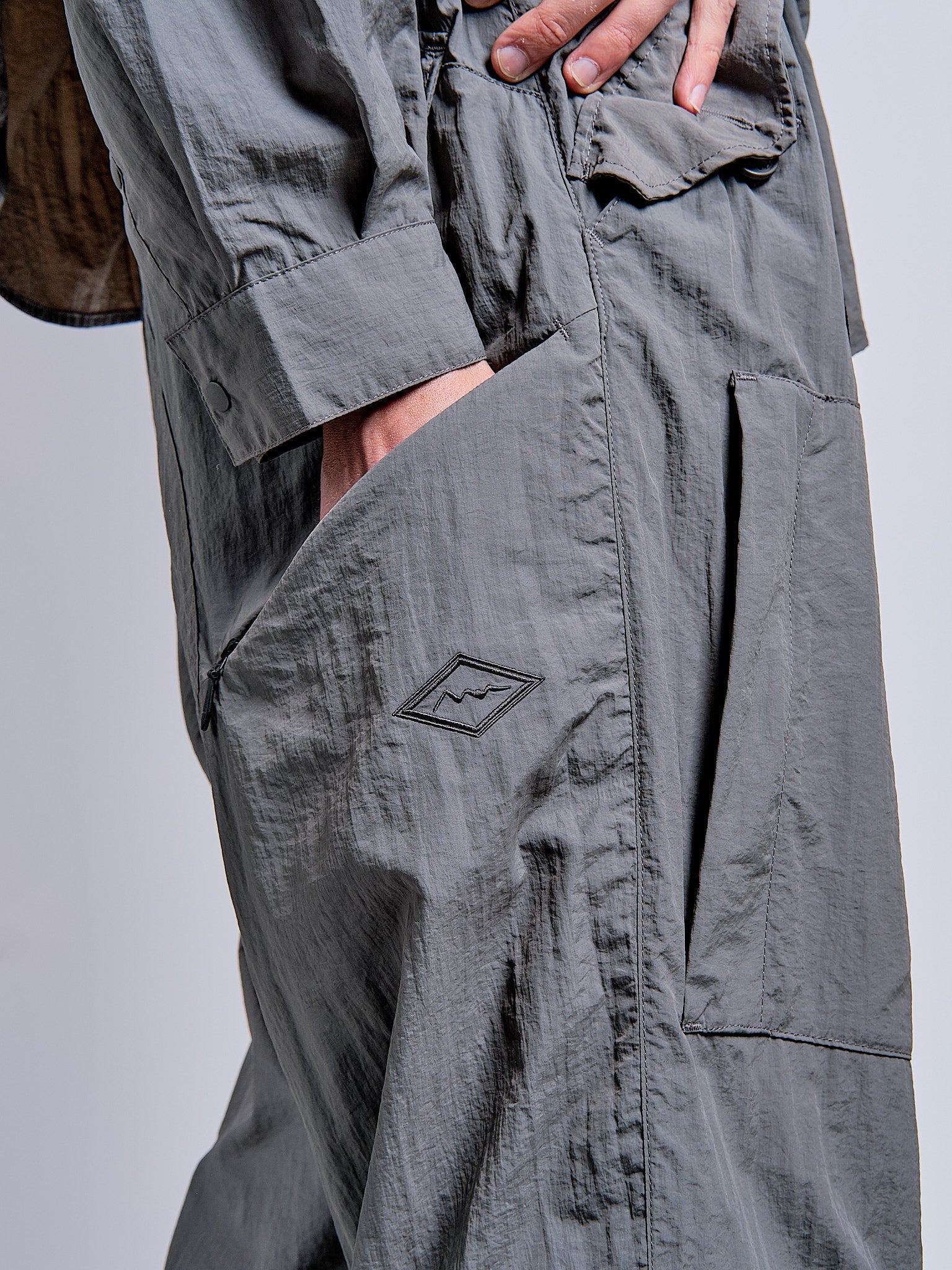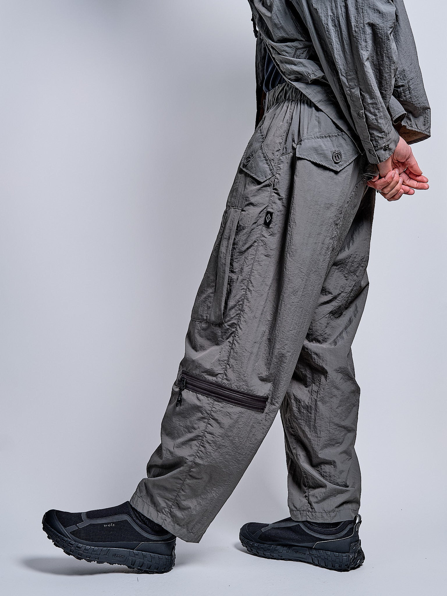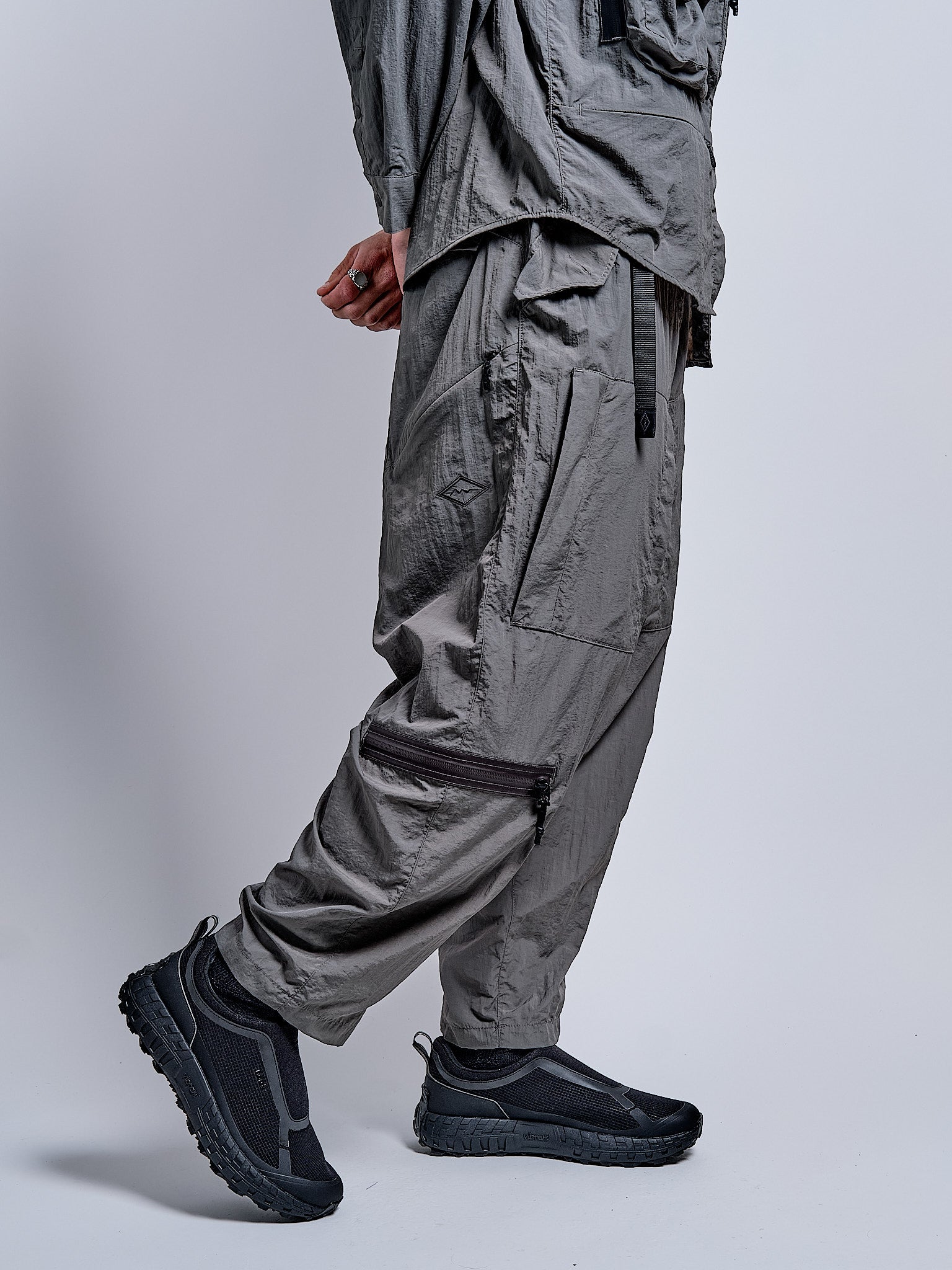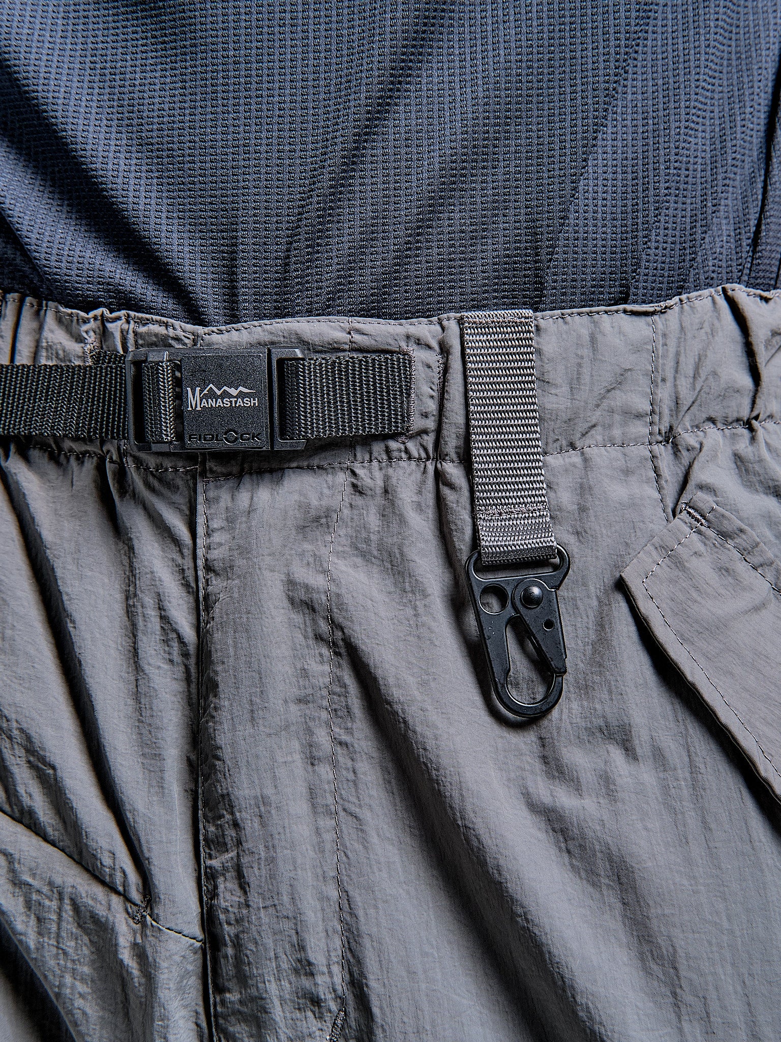 Loose, tapered pants cut from a bouncy nylon. Manastash's "Extra Mile" line contains their most technically sophisticated styles, loaded with cool details and unique fabrics. These pants fit the mold, with numerous taped zippers, cool buttons and fun pockets that keep things unique.