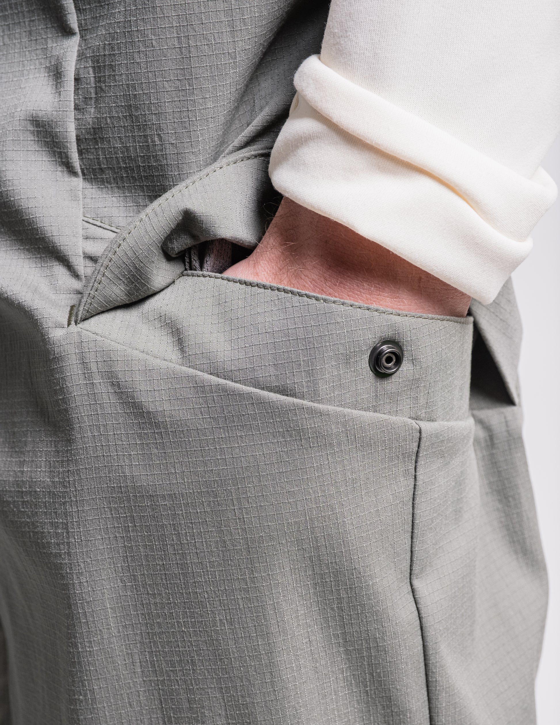 These pants are part of Snow Peak's venerable "Takibi" series, designed for use around the camp fire. Cut from a fire-resistant ripstop nylon, these pants feature spacious front and cargo pockets and a classic straight fit. The Takibi treatment also gives the fabric an excellent drape and dry hand, along with added durability.
