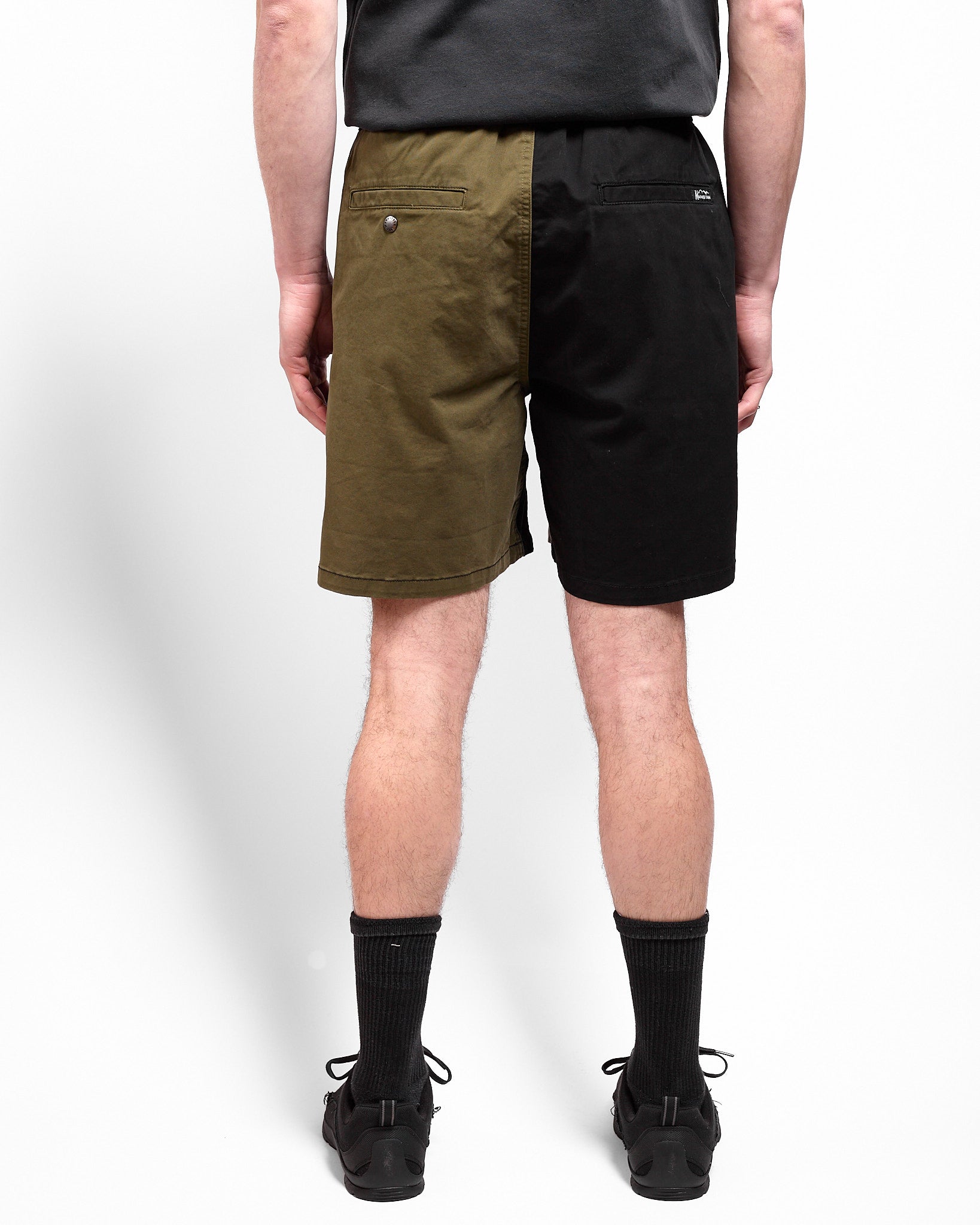 Life is better in fun shorts. These are constructed from a hefty cotton twill that's been washed for a soft, lived-in feel. Their multi-colored paneling is eye-catching and their elastic waist makes sizing simple.