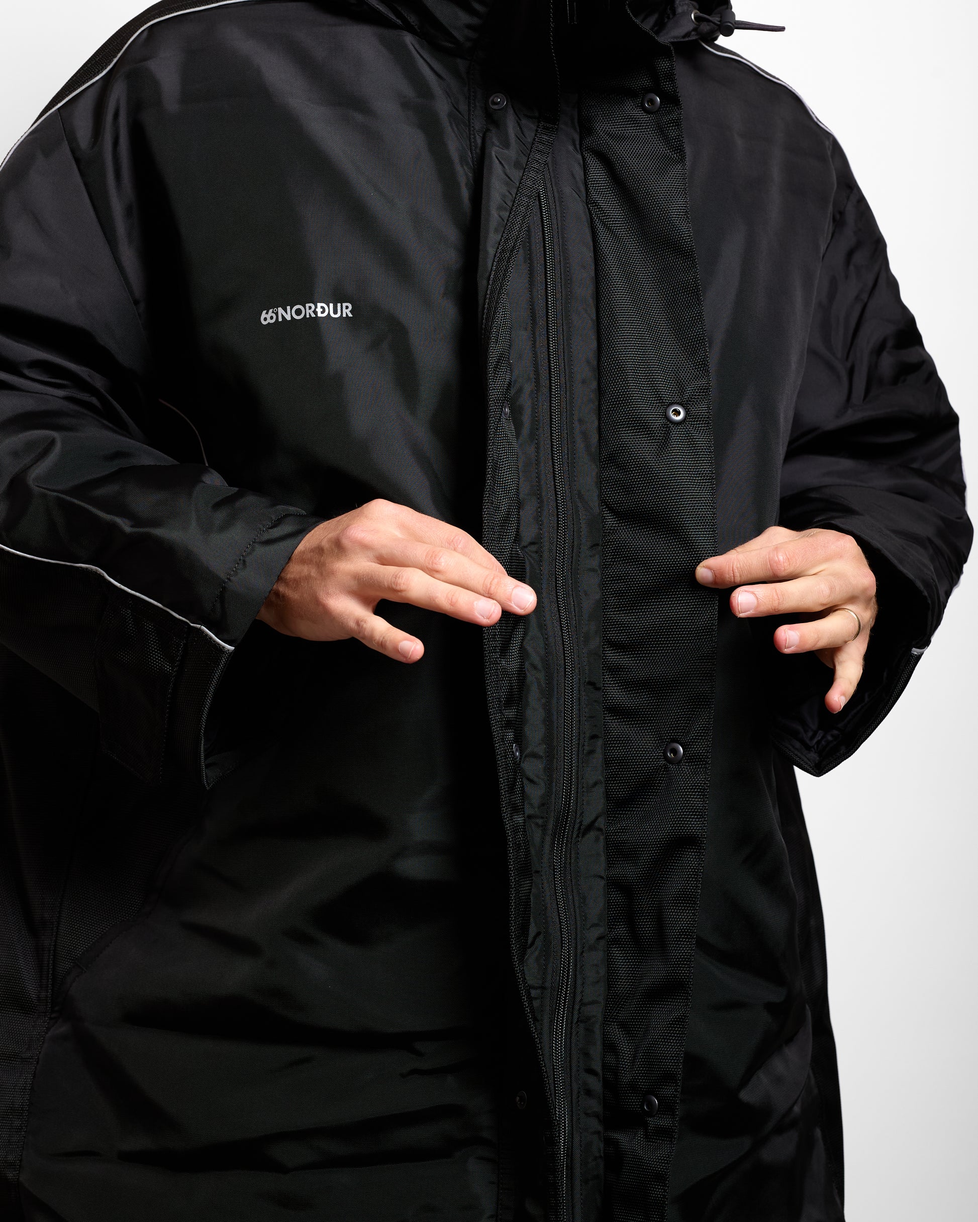 Equal parts Icelandic dockhand and highway worker, the Grótta Coat is an absolute tank of an outer layer. Made from a resilient blend of water-repellent poly fabrics this coat also features reflective piping, a stow-away hood and a cool dropped-shoulder look for a contemporary spin on a workwear classic.