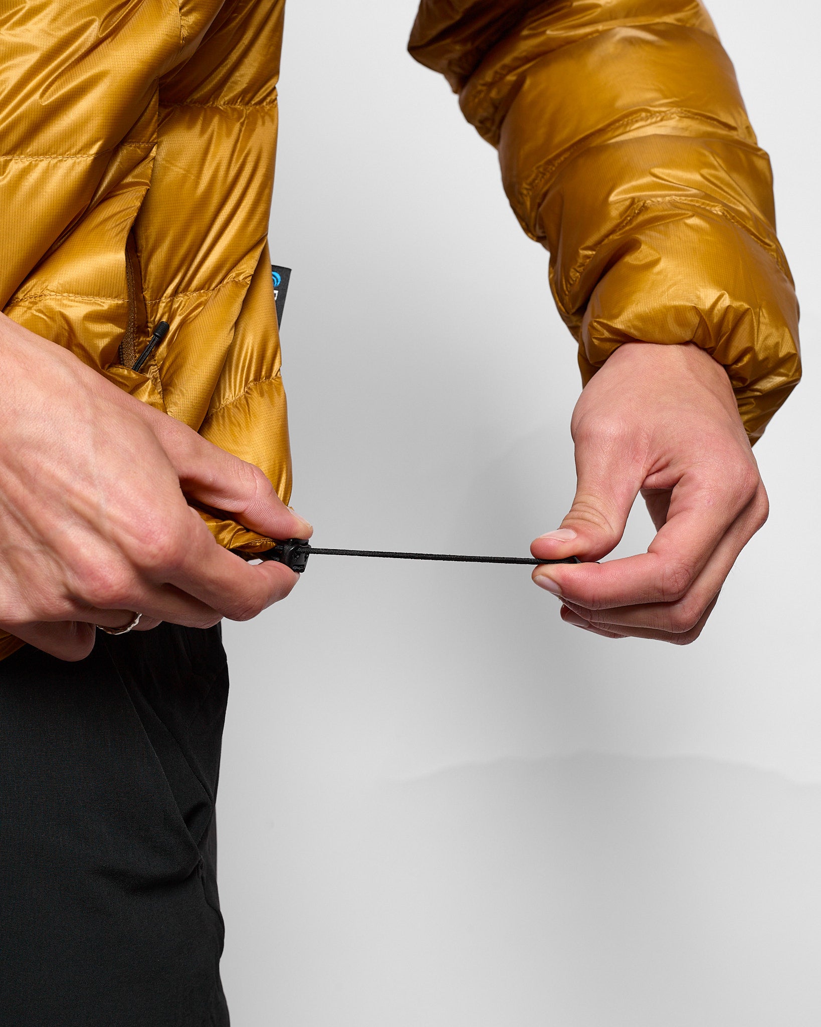 A packable puffer from CAYL. Designed to withstand less-than-awesome conditions, this jacket is made with Pertex® Quantum, a tightly-woven nylon ripstop that keeps out the wind and dries quickly. It even comes with its own stuff sack.