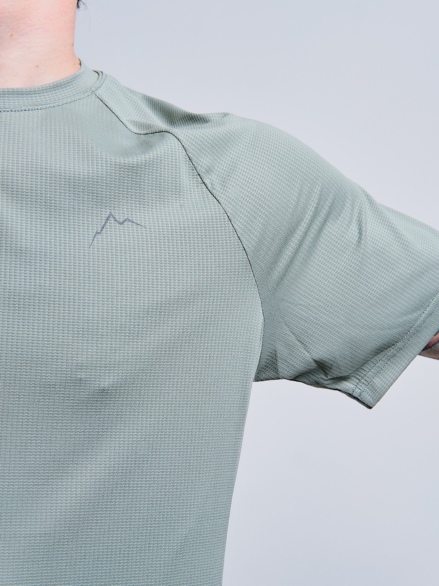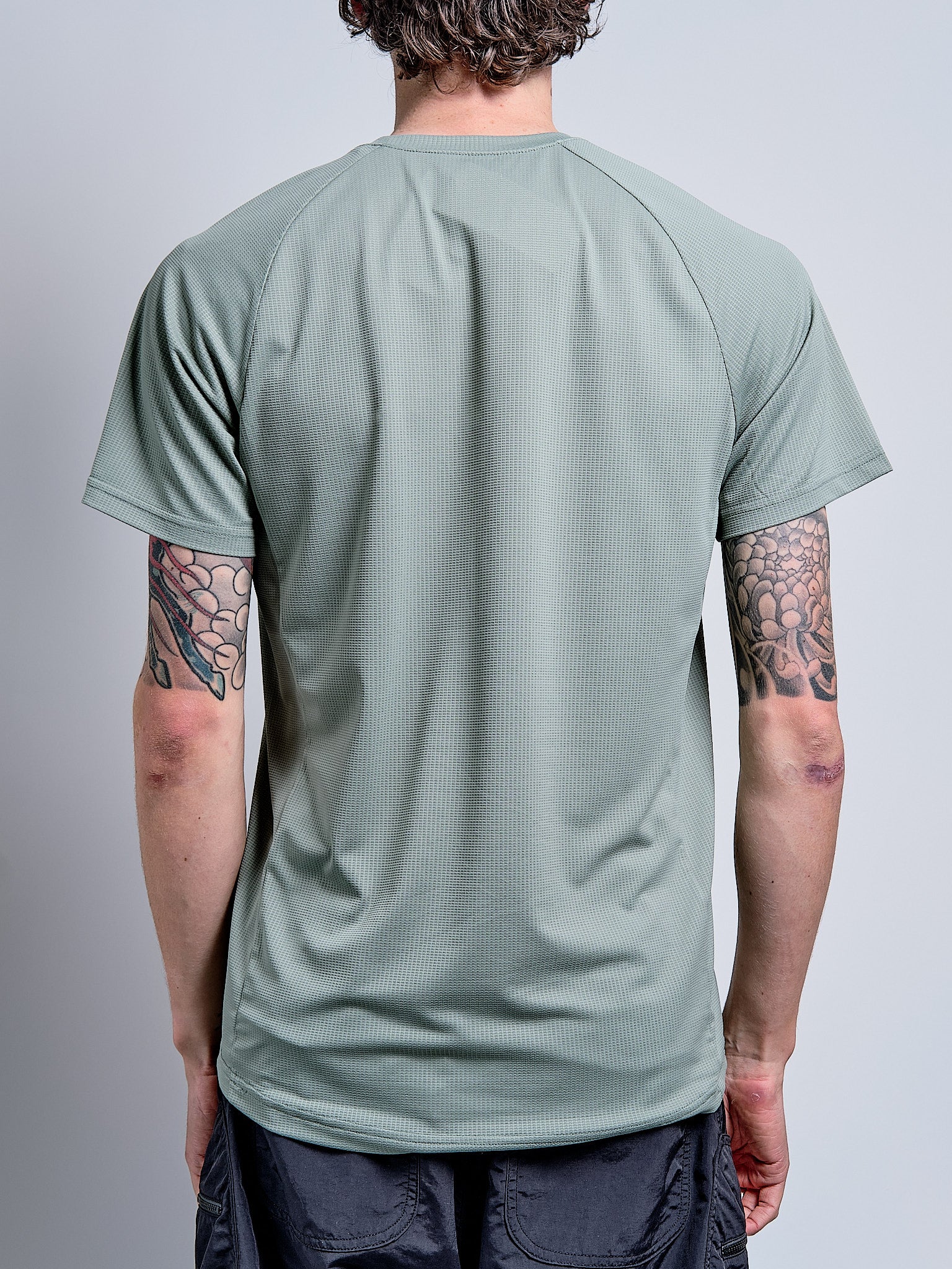 The platonic ideal of an "active tee". CAYL's signature style is cut from a polyester/spandex blend that's light, stretchy and soft to the touch. It sports raglan sleeves and a longer length for a nice active fit.