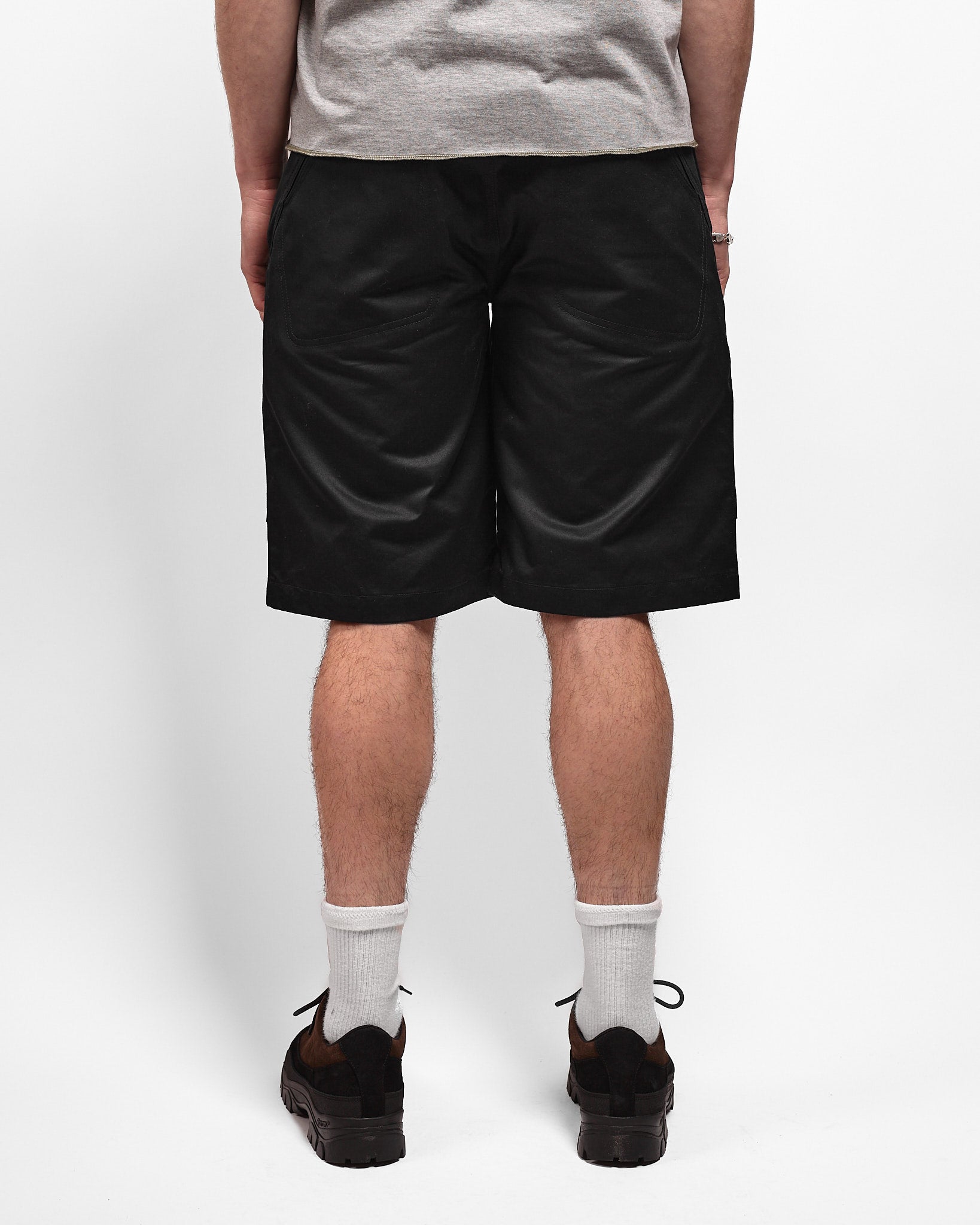 Named for its striking g-hook waist adjustments, the Loop Claw Short sports a wide fit and cool arching pockets. This version is made from a jet black Japanese twill fabric.