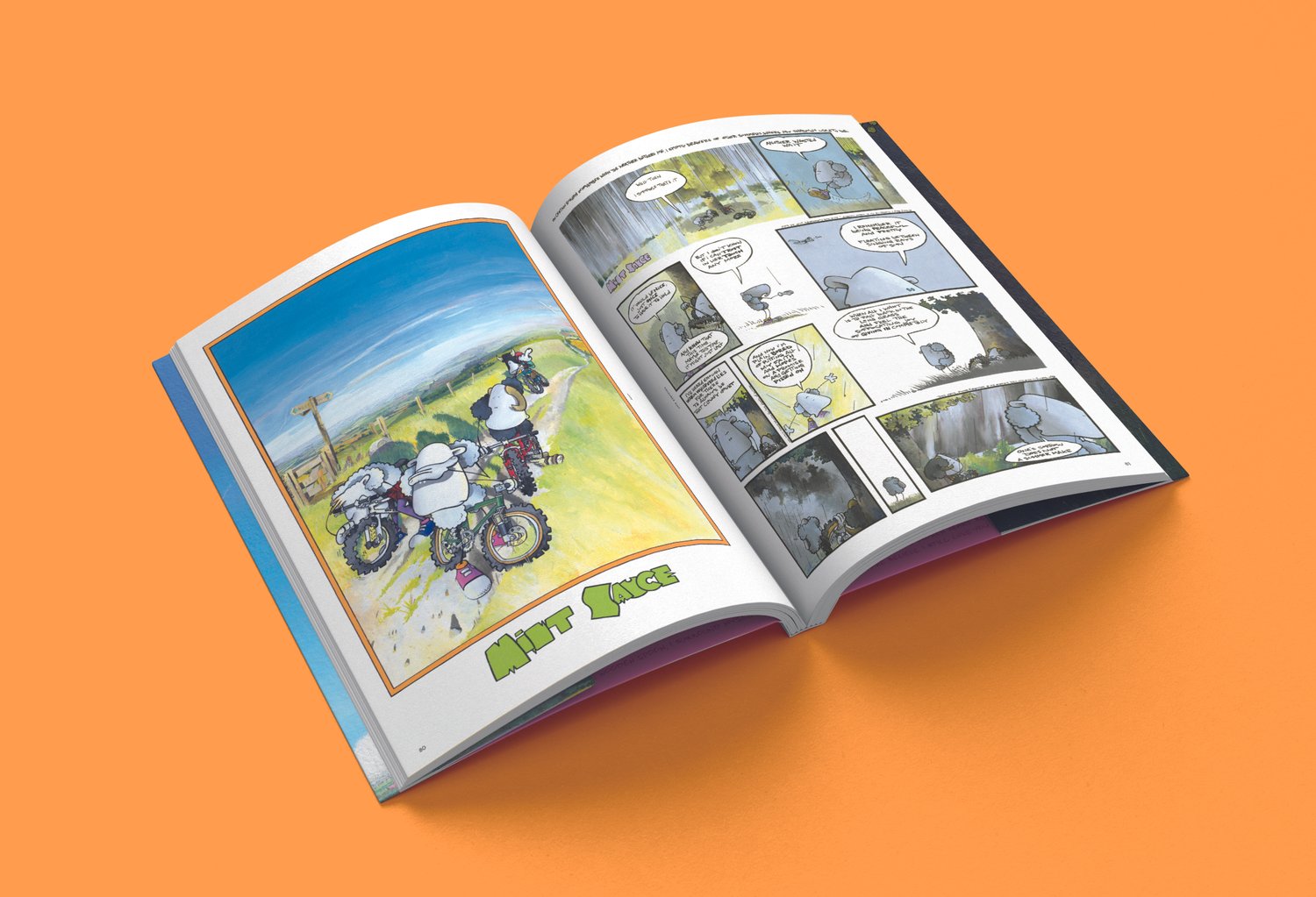 Jo Burt’s comic strips detailing the adventures of Mint, a mountain-biking sheep, have amused and delighted readers for over three decades. Join Mint as he rides through an enchanting, bucolic world in which Death stalks the whaleback hills of the South Downs and Summer is a beautiful, capricious goddess.