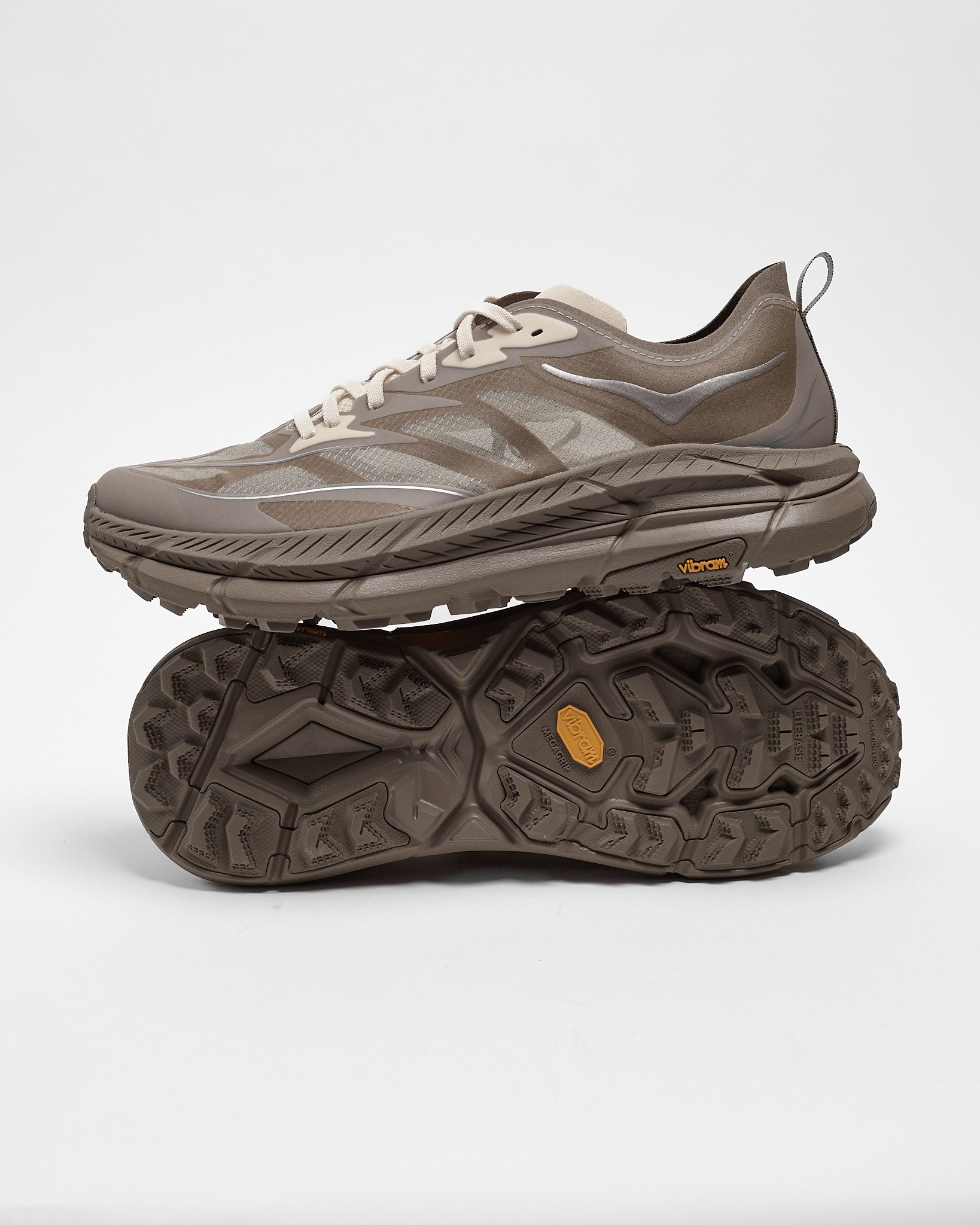 Say hello to a lighter, faster and more durable version of the Hoka's beloved Mafate trail runner. Equipped with a gossamer translucent ripstop upper and Vibram® Megagrip outsole, these can tackle serious terrain while looking amazing.