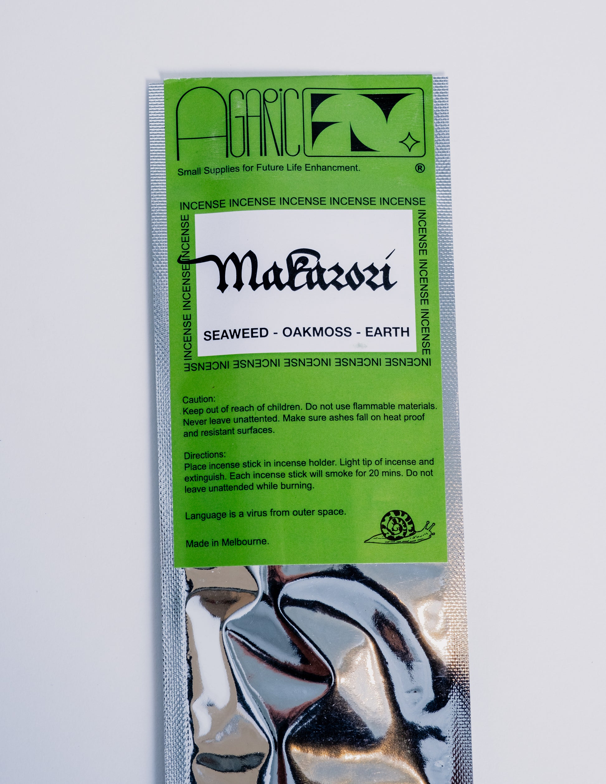 Beamed to us straight from outer space (Australia) comes Agaric Fly incense. These sticks are named after a lovely beach community in New Zealand. Fittingly, they smell of seaweed, oakmoss and earth.