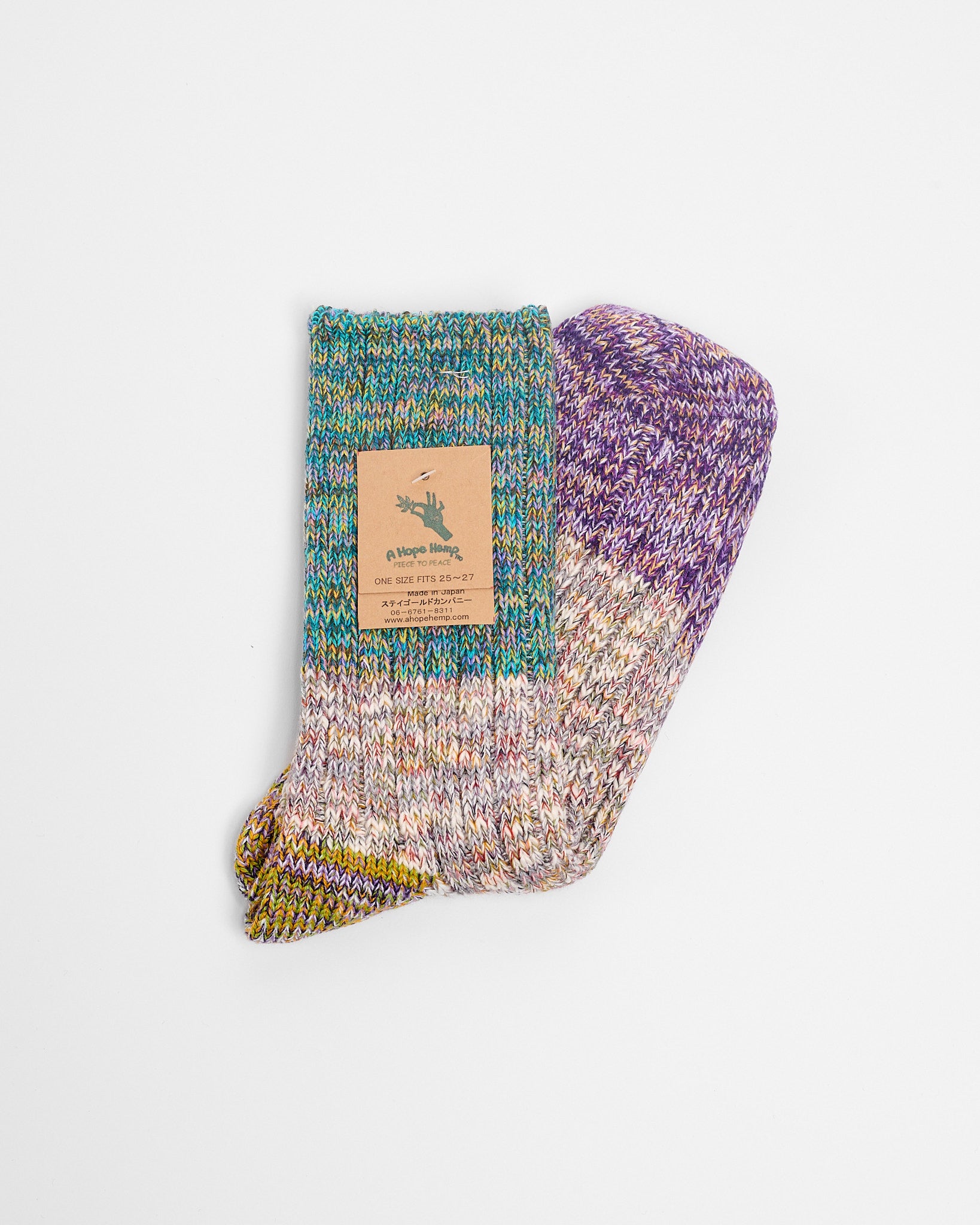 We love Japanese socks. Like many aspects of the country's legendary craftsmanship, their sock production is tedious, refined and lovingly tolerant of artistic errors. A Hope Hemp products are woven on rare old machines that only make about 40 a day, and produce the cool slubby texture the brand is known for.