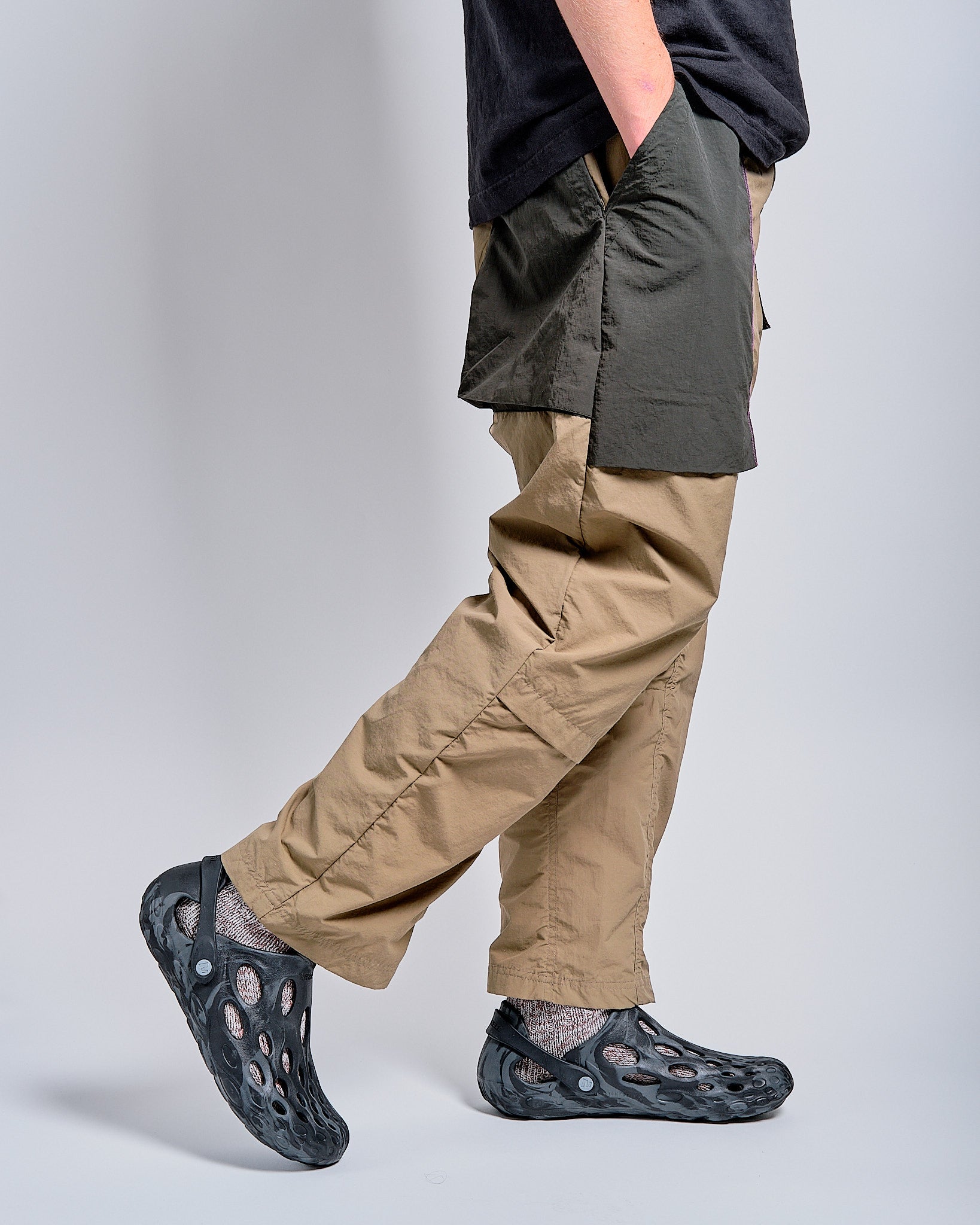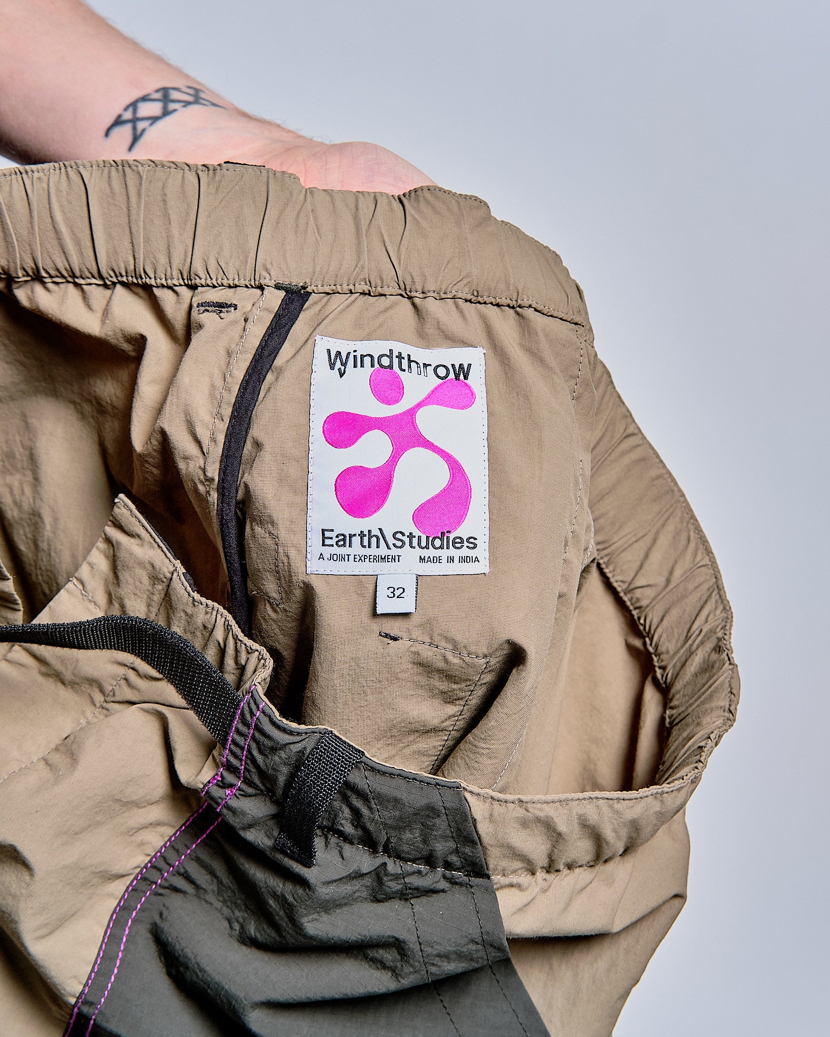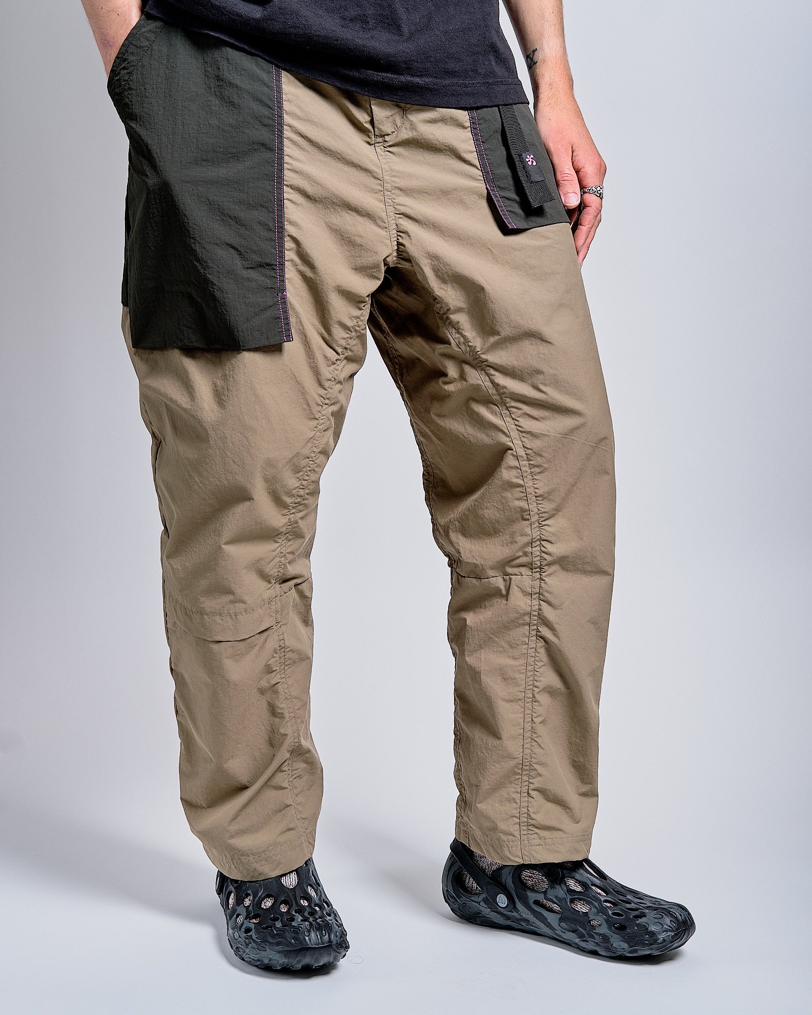 A lightweight, sporty, collaborative version of one of our favorite pants. Constructed of a moisture-wicking nylon/cotton blend, this iteration of Earth\Studies's field pant features bold colorblocked ripstop pockets, magenta contrast stitching and unique graphic touches. Made for movement and exploration.