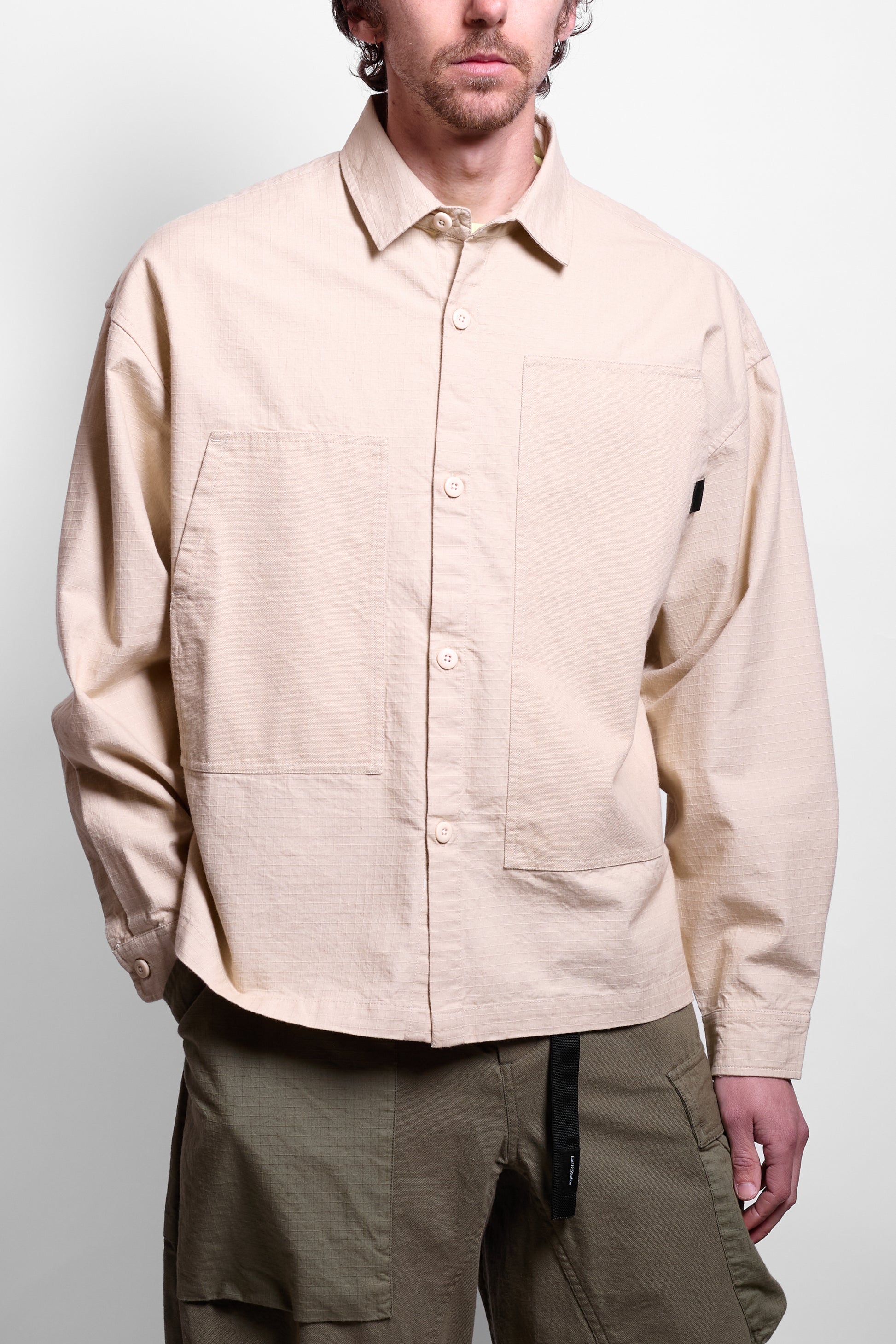 A clean, boxy shirt made from a soft and dense brushed cotton twill. The Research Shirt features two large chest pockets and an elegant button closure. Look nice while still letting people know you're a bit weird.