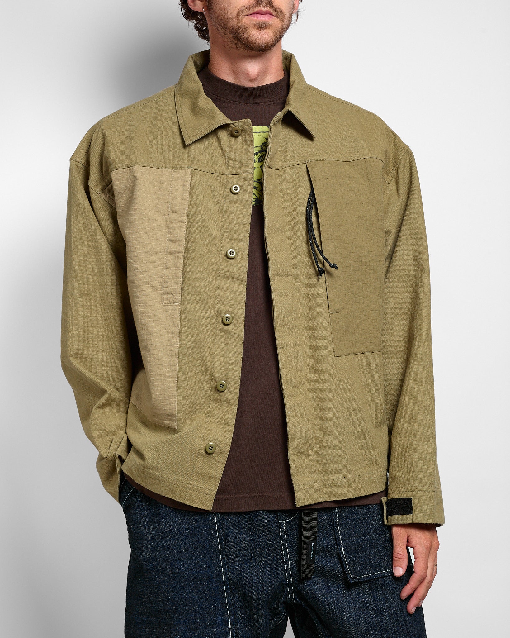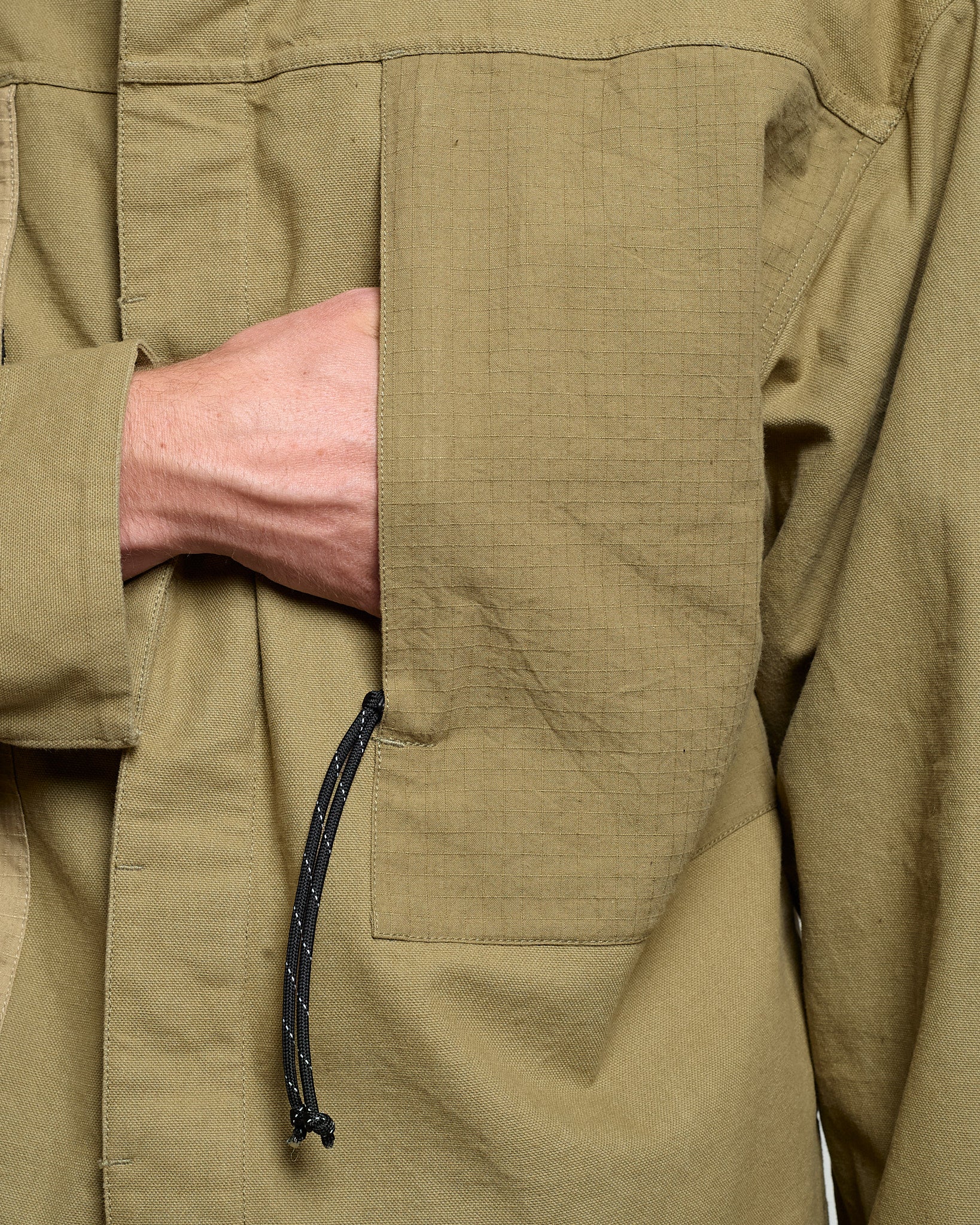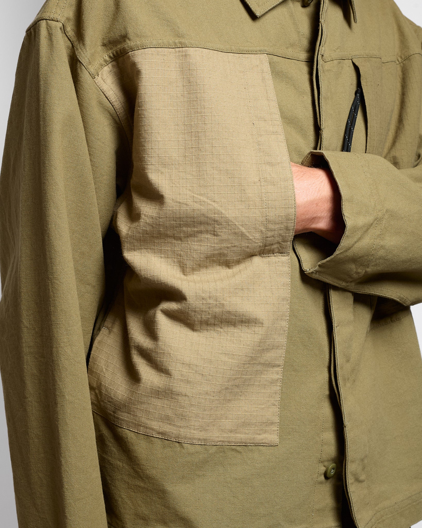 A burly shirt jacket from Earth\Studies. Constructed from a dense (but soft) cotton duck twill, the Shift Jacket is easy to pop over most anything and has some technical bells and whistles to add some utility.