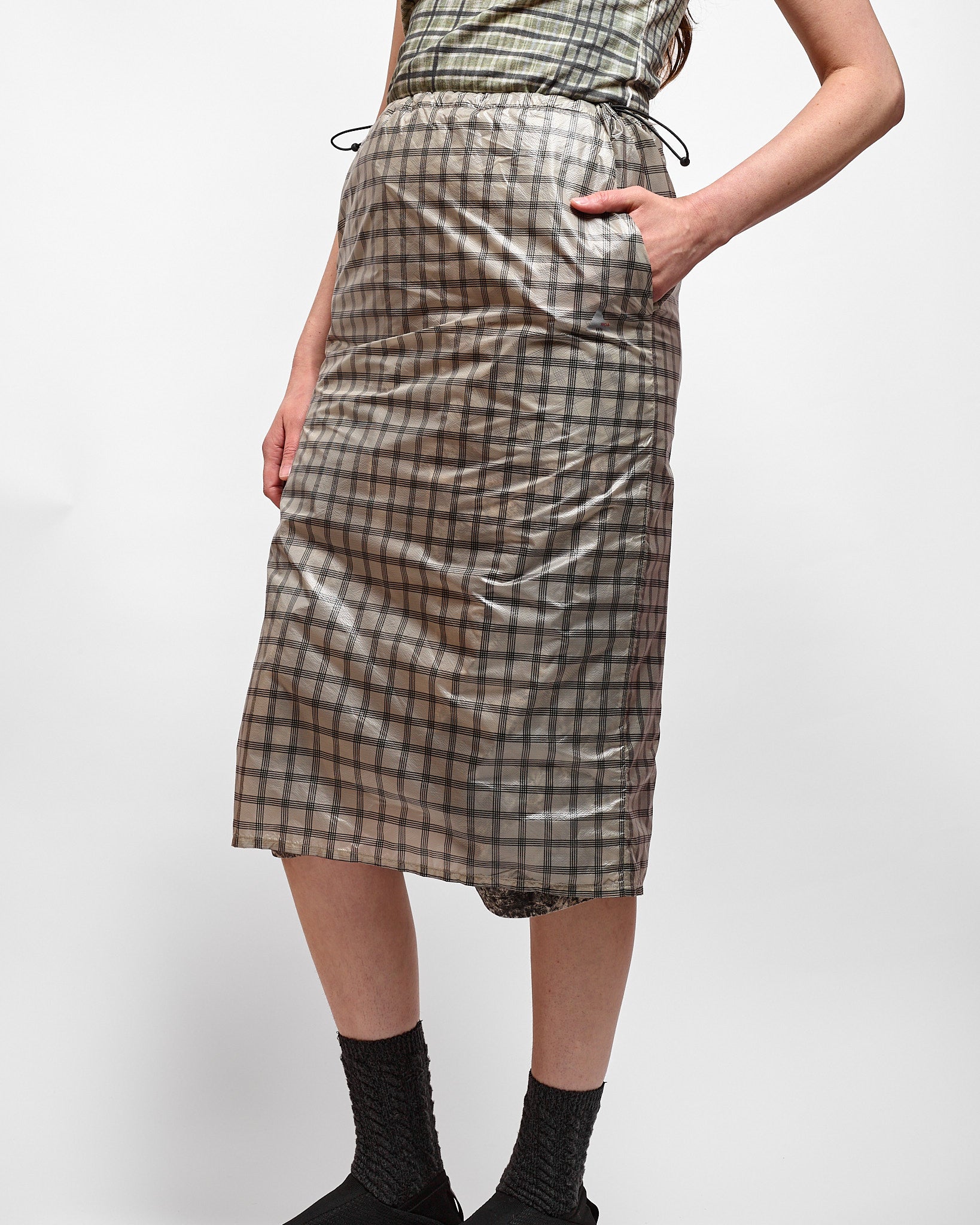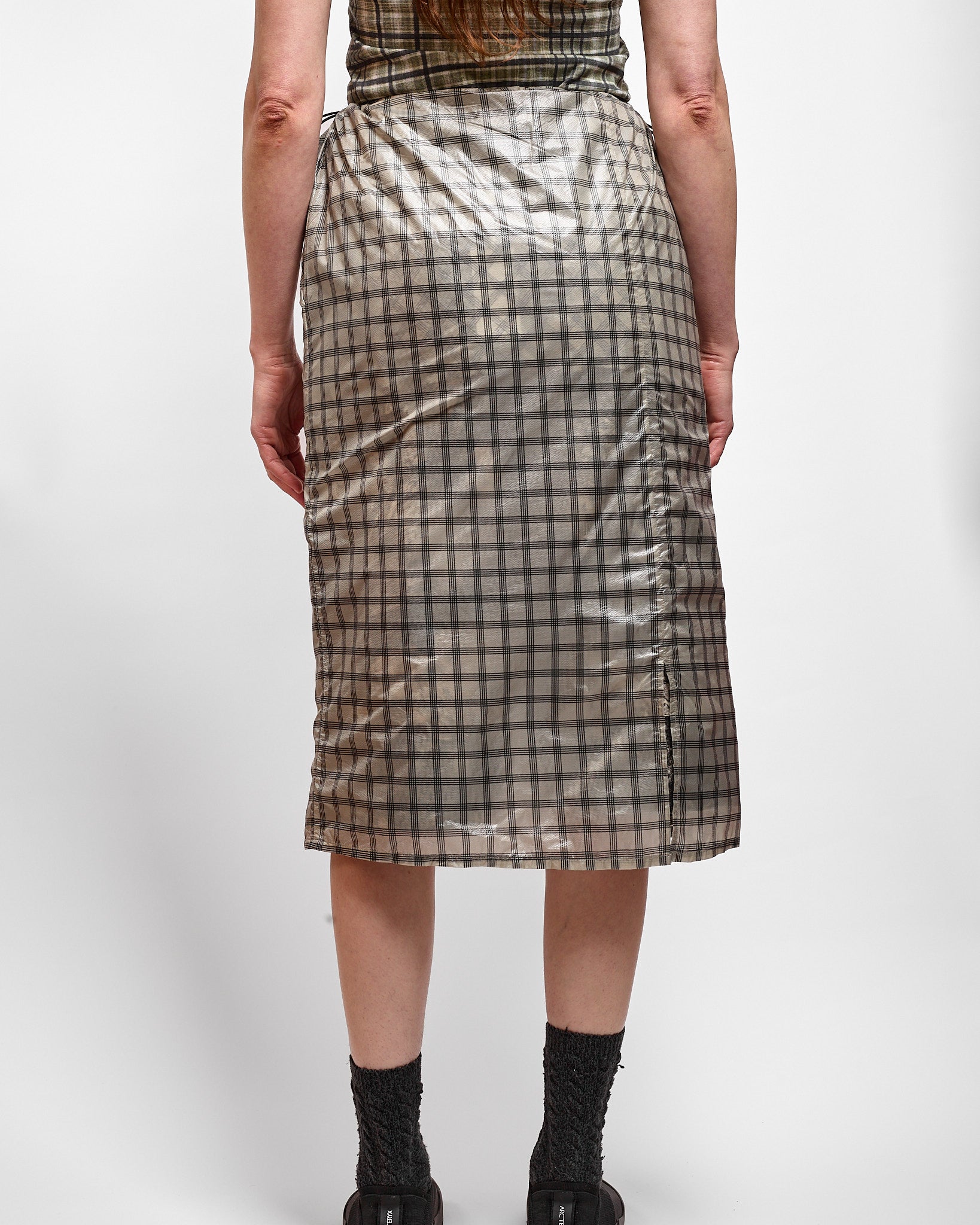 NIA See Through Printed Check Mid Skirt in White