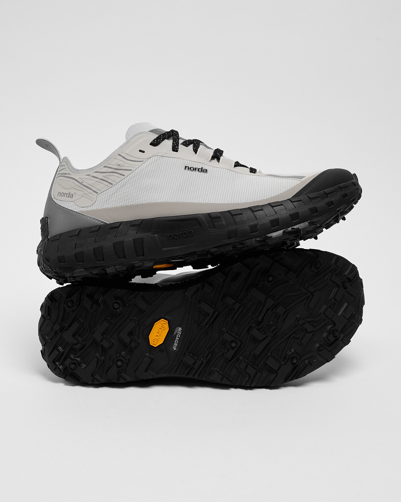 Outsole features a norda™ x Vibram® exclusive design Formation Sole with Litebase® and Megagrip® Rubber 5mm lugs