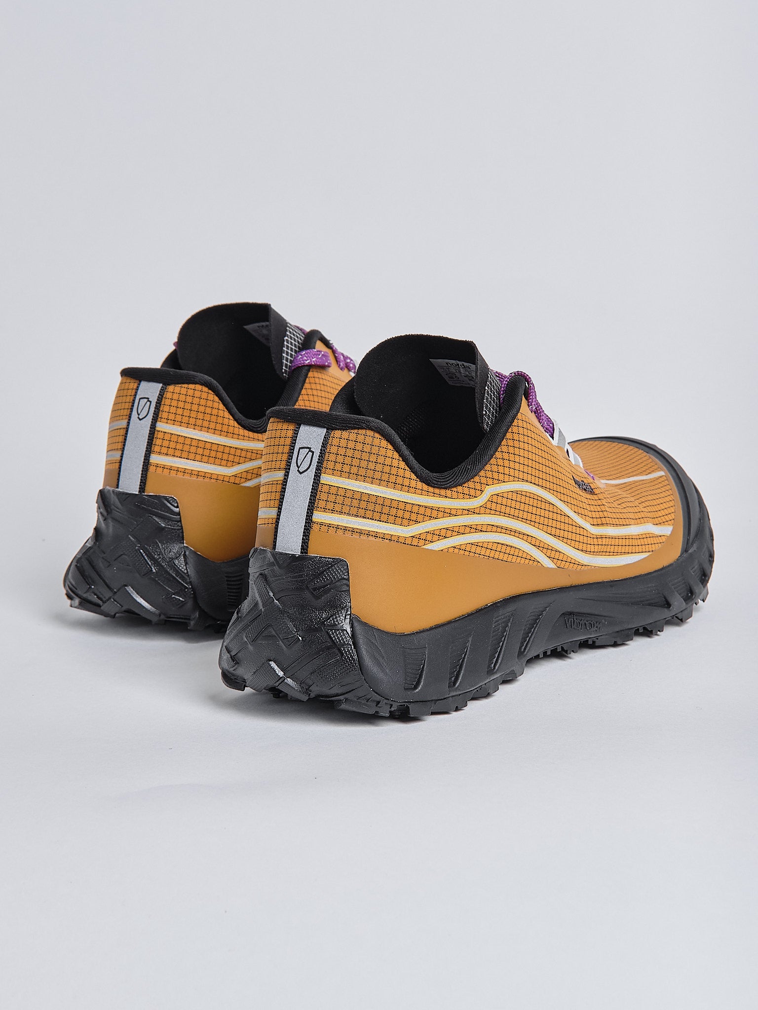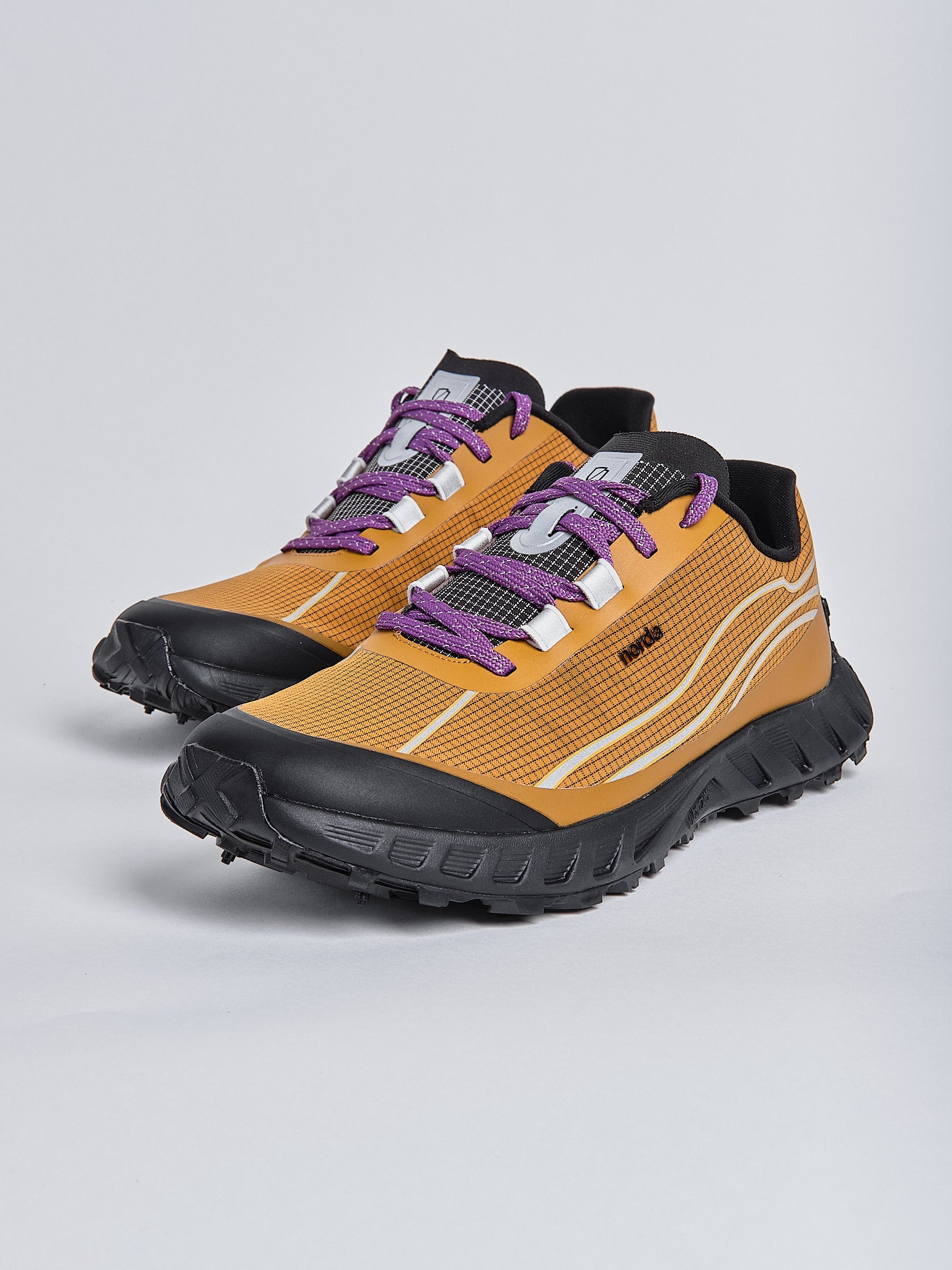 The 002 is norda's leaner shoe, designed to perform and maneuver on technical terrain. Its lower stack height, padded heel collar and pyramidal midsole geometry contribute to an increased ground feel and connection to the earth. Its Dyneema® upper is woven in a ripstop pattern, providing a distinct (and tear-resistant) appearance. Those three reflective stripes represent the three peaks of Montreal.
