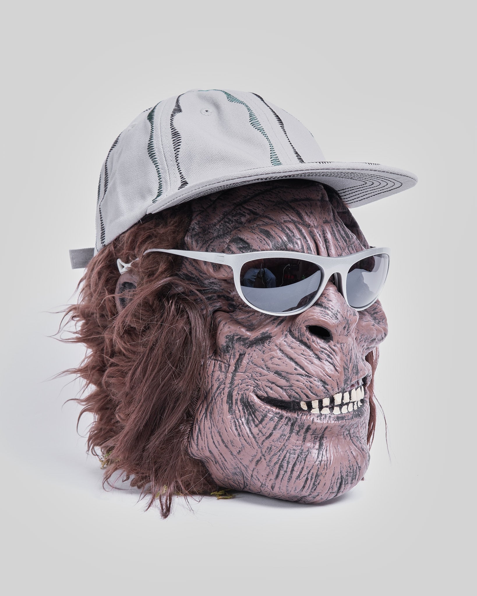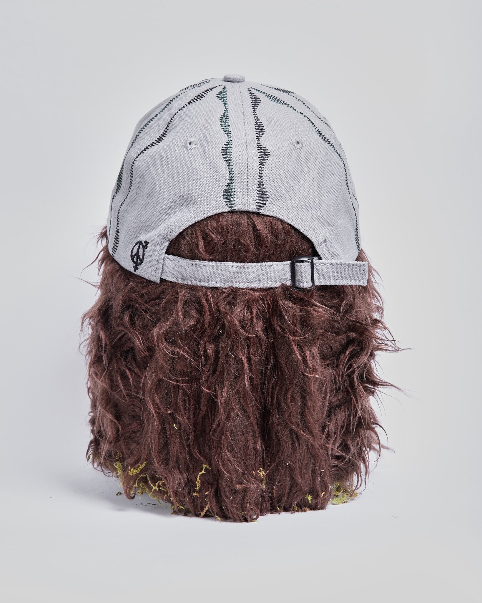 - Two-color embroidery: dark green and black pinwheel design