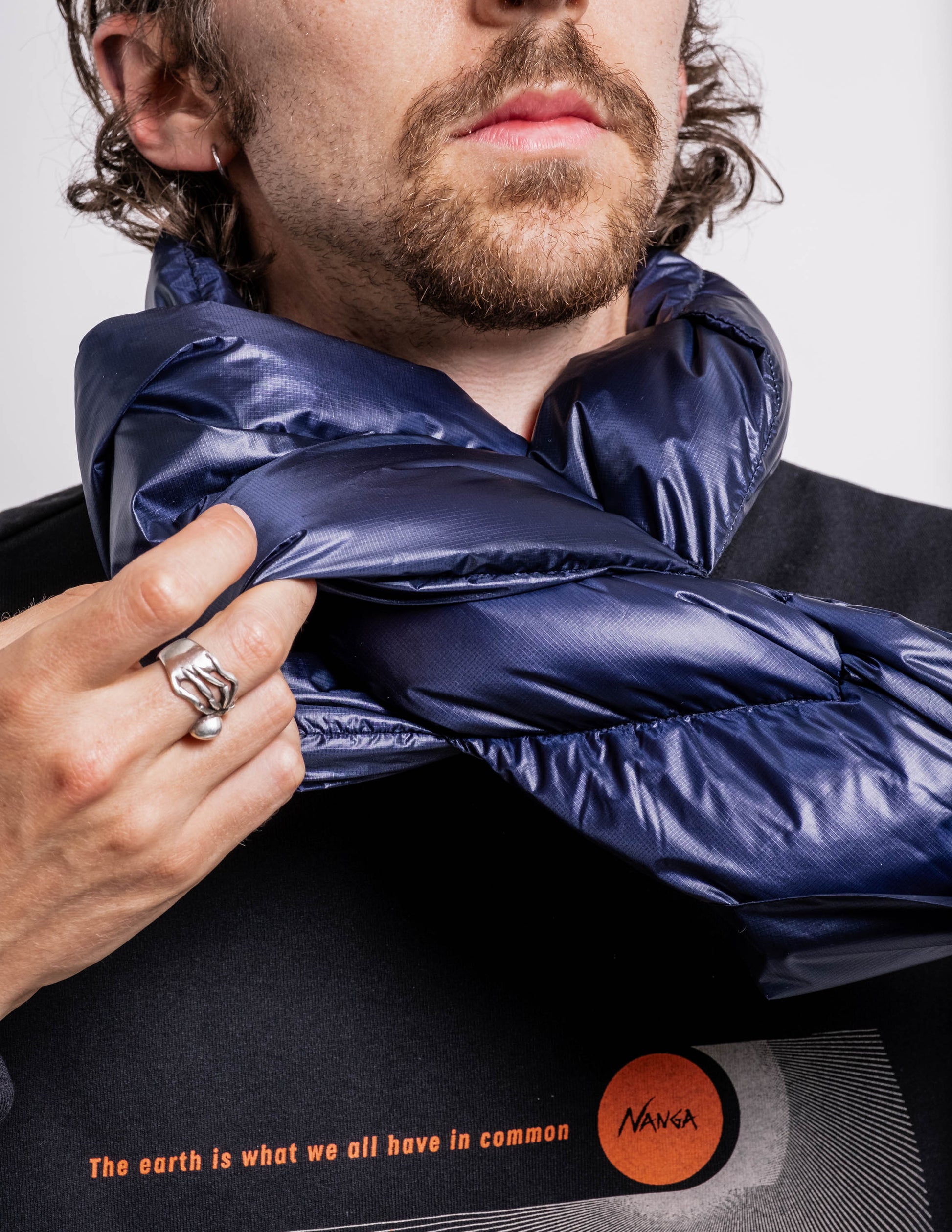 Imagine a classic Nanga jacket, but in scarf form! Made from recycled feathers that are processed in Japan's leading down refinery and incased ultralight ripstop nylon.