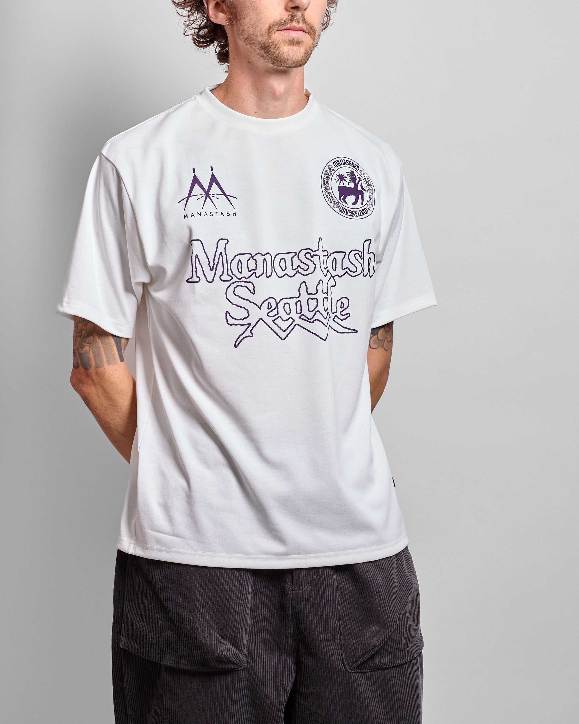 Emblazoned with graphics from Manastash's fake sports team, this tee is cut in a boxy fit and sewn from a surprisingly soft and thick recycled polyester fabric. The result is a exceptionally comfortable shirt that's quick drying and odor resistant. Put me in the game coach.