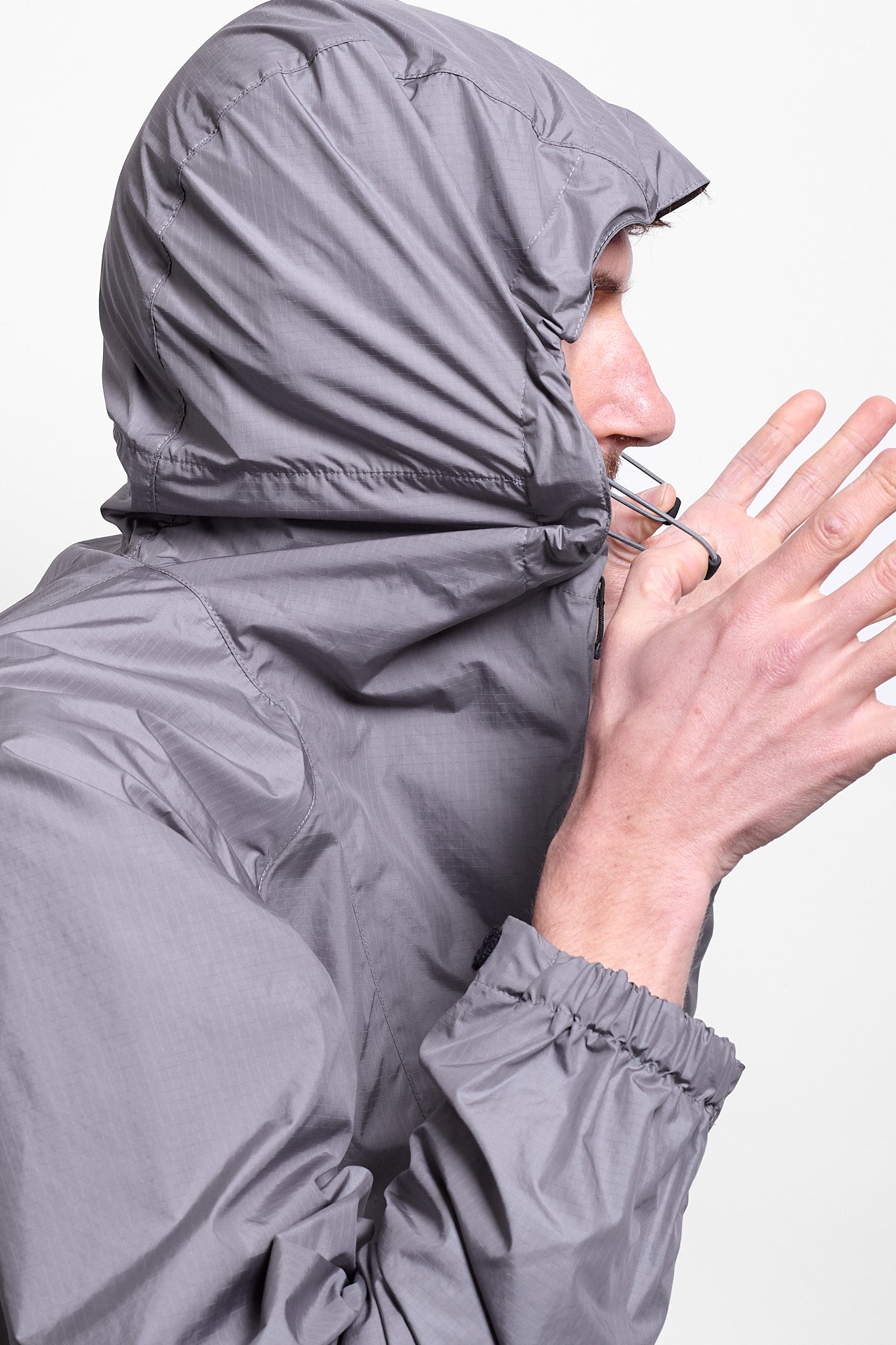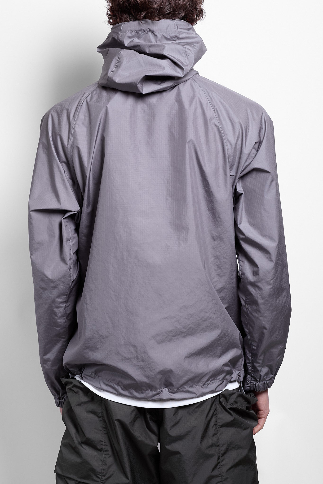 Rip-Stop Hooded Jacket in Metallic Grey