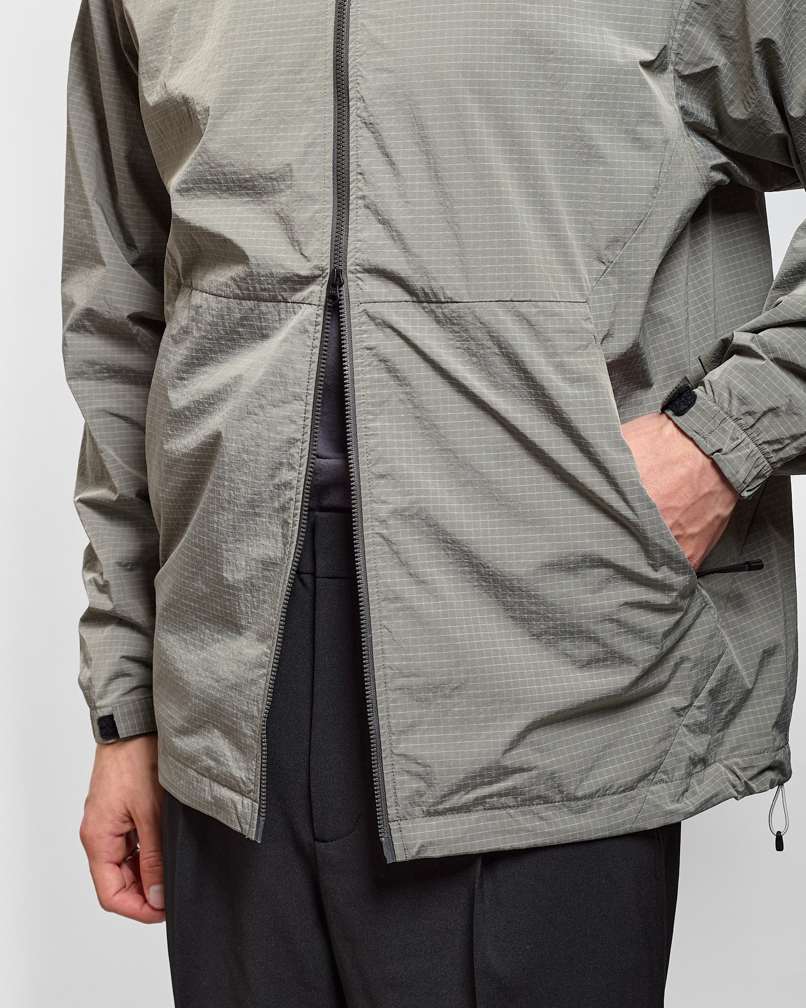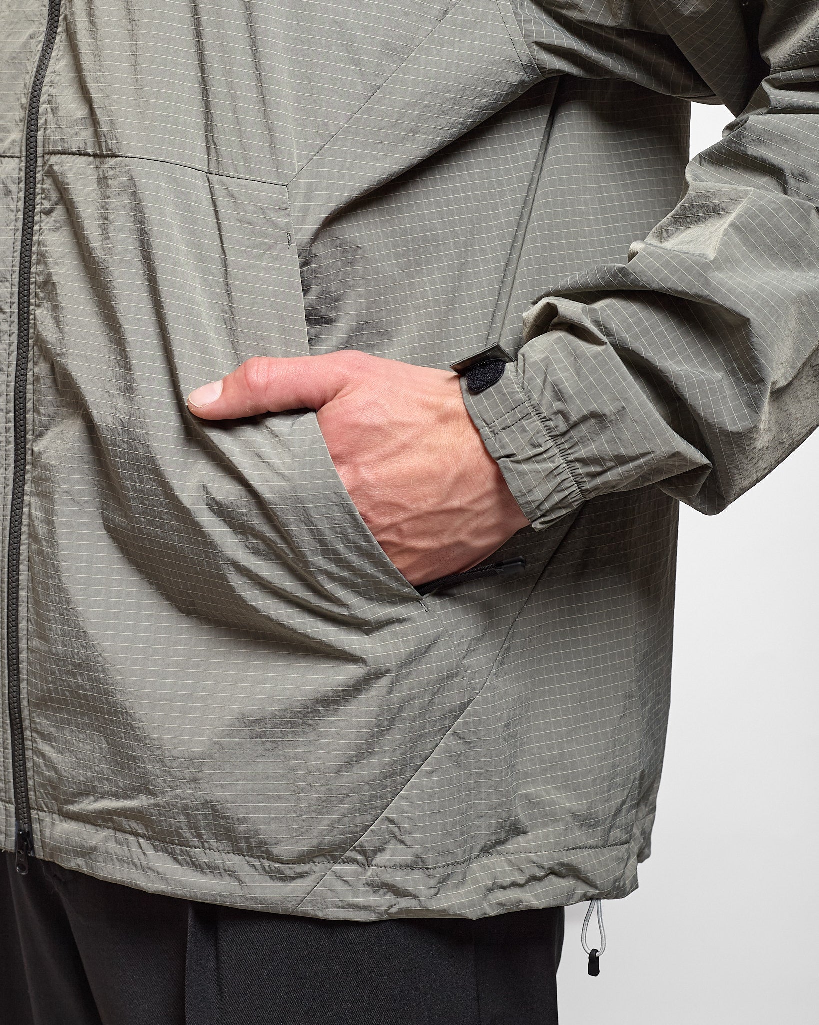 A super light wind jacket made from a Goldwin-engineered water-repellant ripstop that's been dope dyed to produce a unique color and texture. This visual depth is paired with an easygoing silhouette and plenty of bells and whistles.