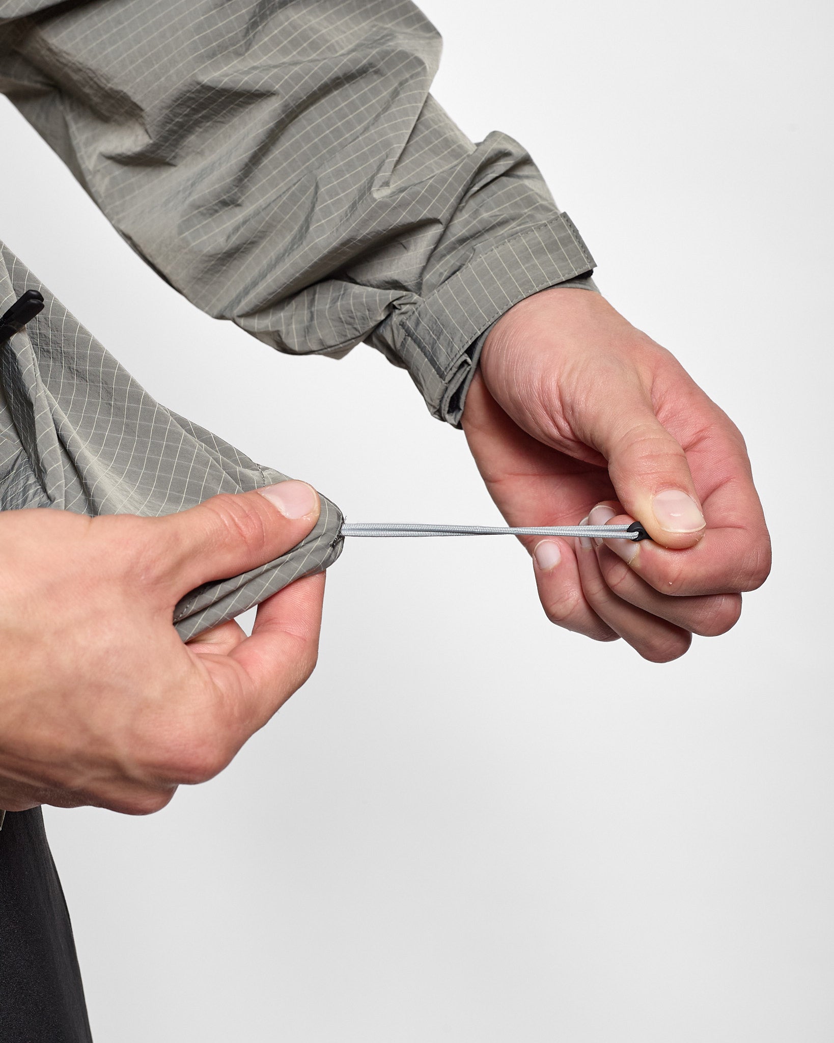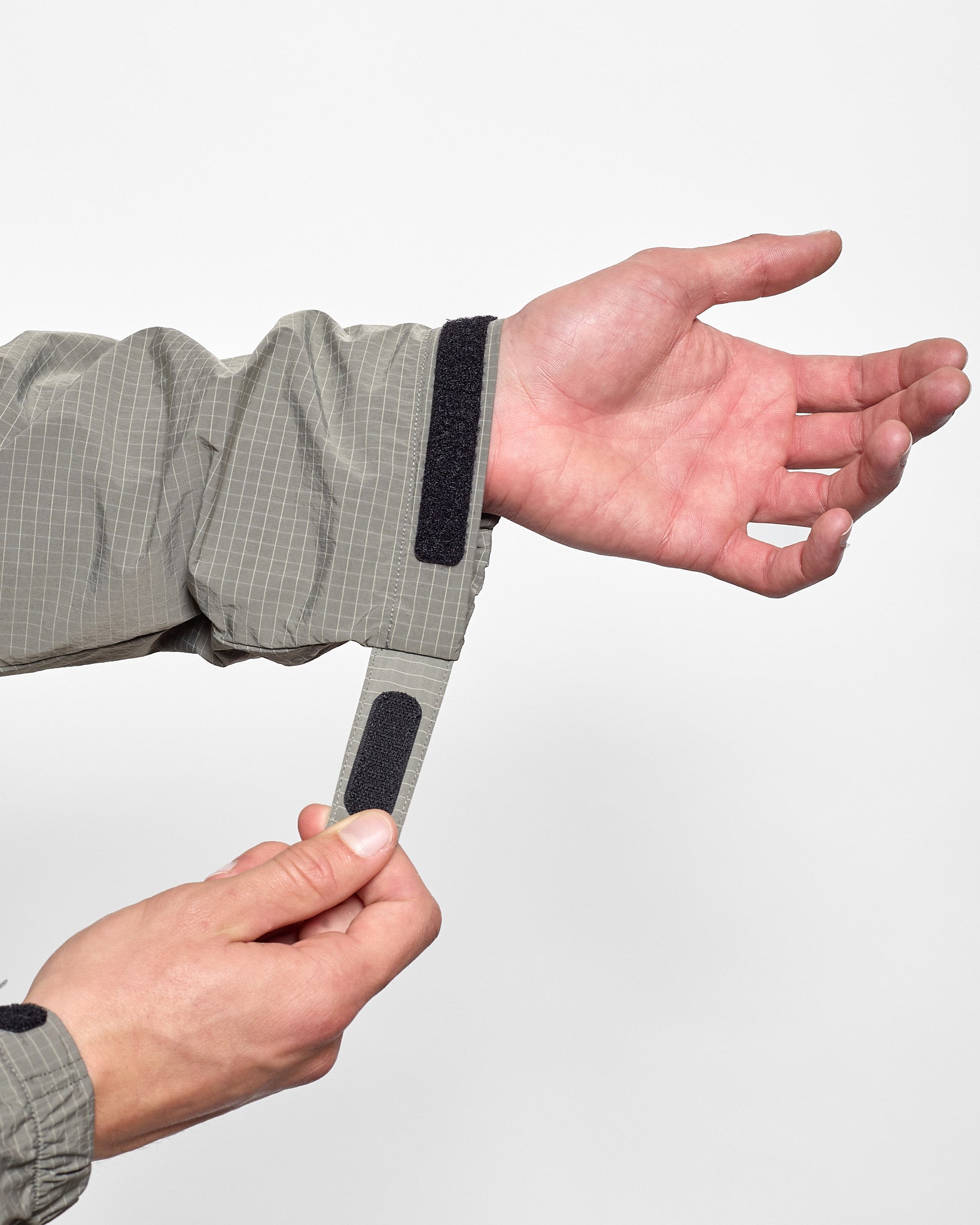 - Cinch toggles at waist and velcro adjustment at sleeve ends