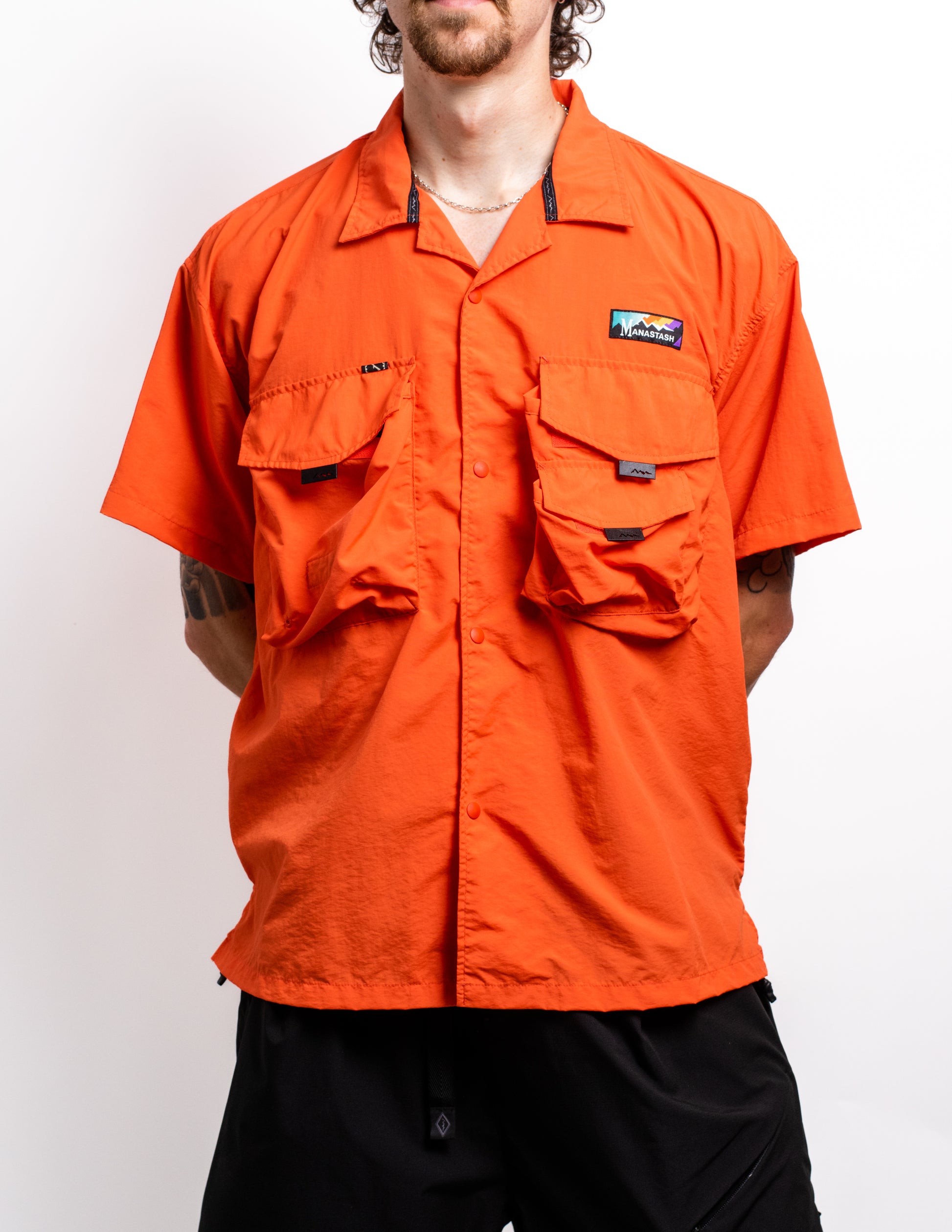 A Manastash take on the classic fishing shirt. Naturally, it features a wild color, branded details and a lot of pockets. It's cut from a packable, wrinkle-resistant fabric too, and can be stashed into its own pocket.