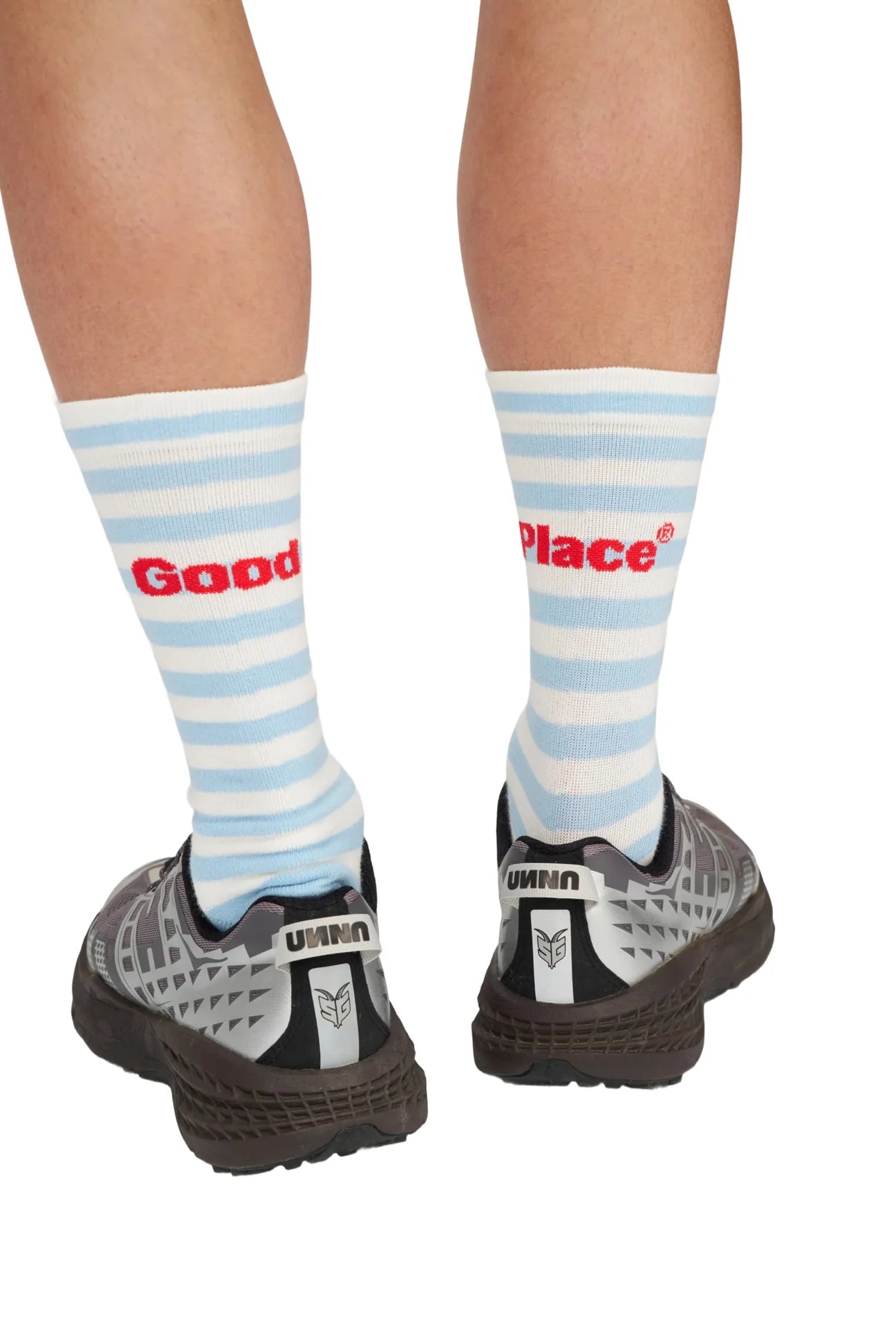 - Red jacquard embroidery UNNA logo on the toe and 'Good Place' with one word separated on each sock
