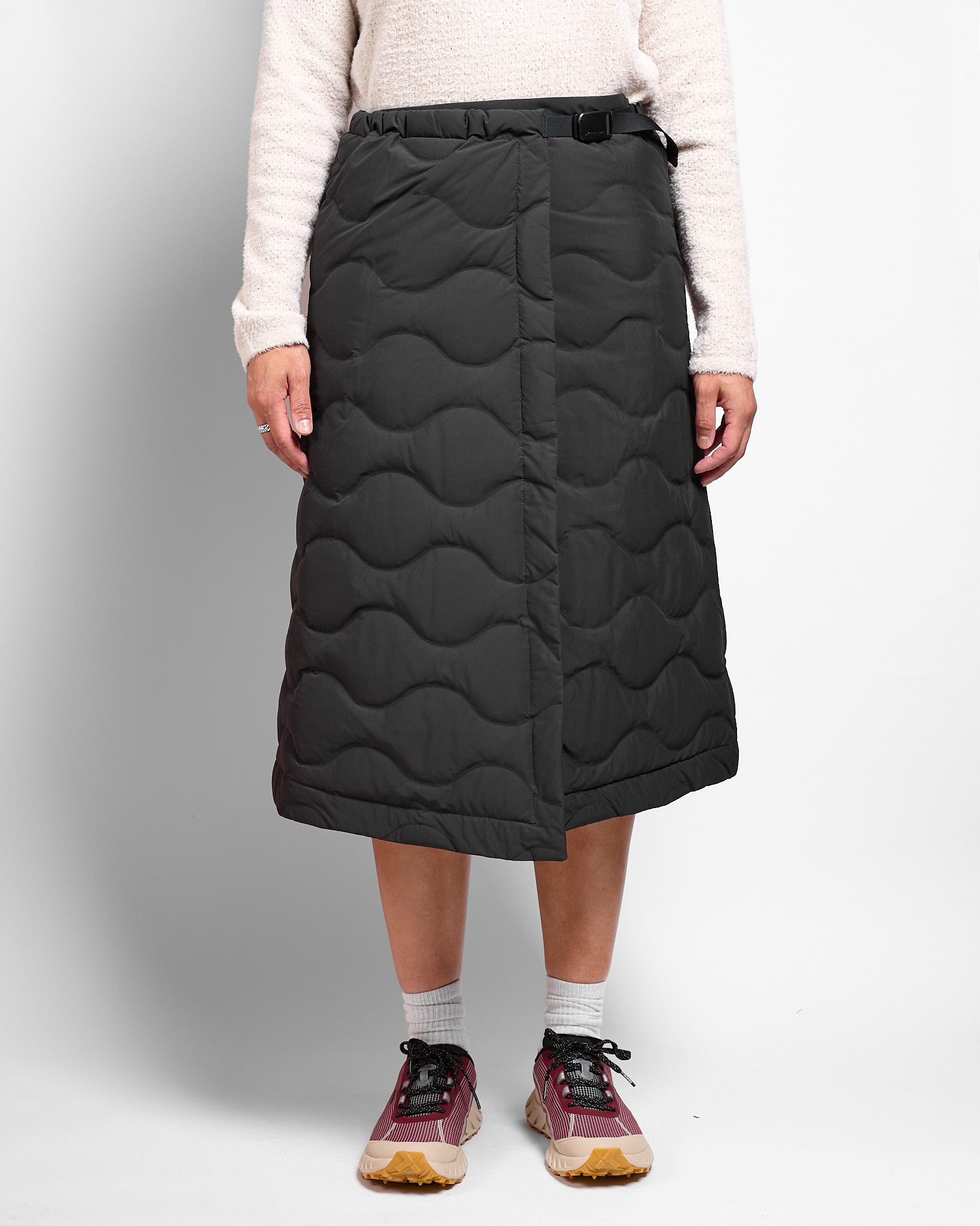 Seamless Quilted Down Wrap Skirt in Black
