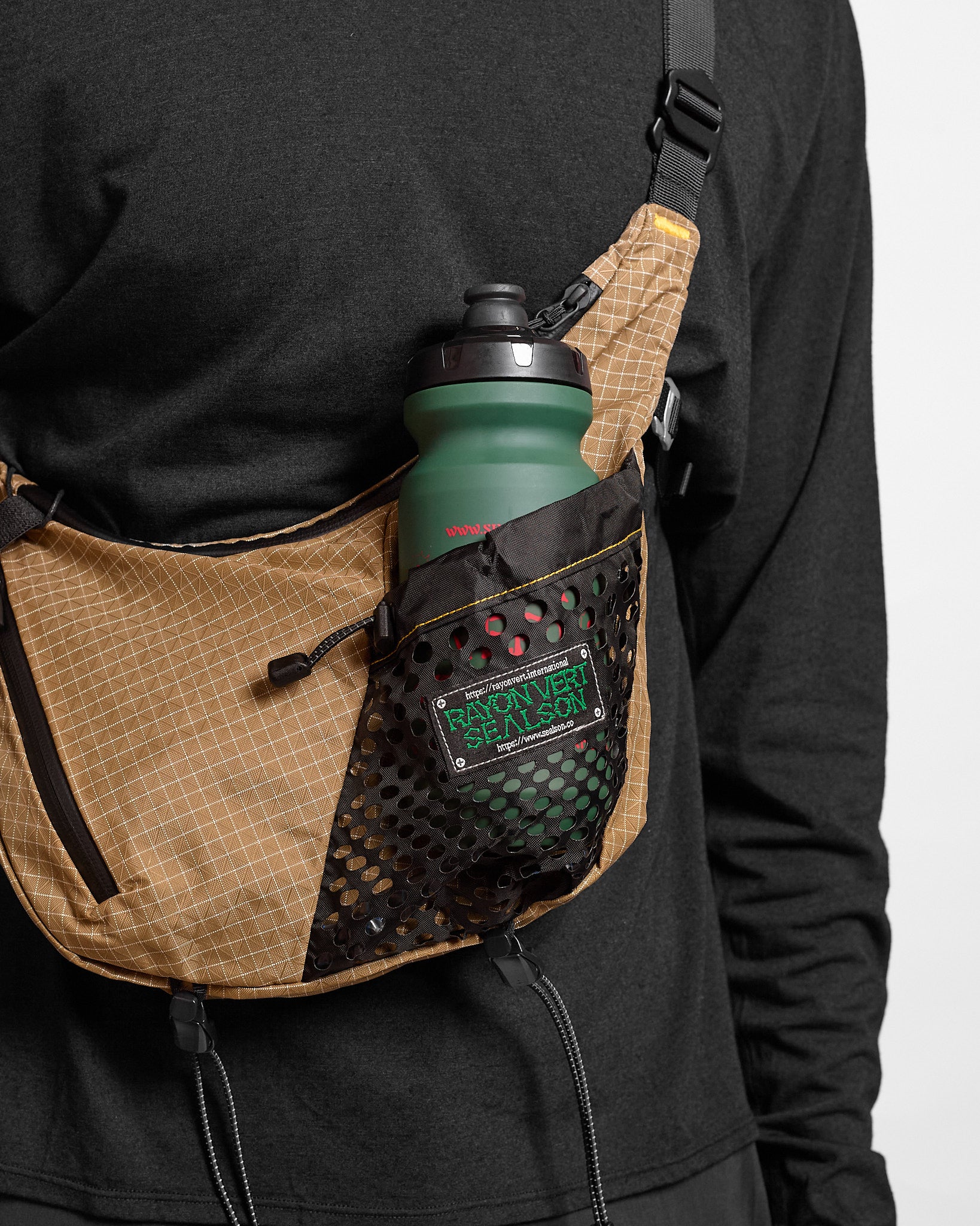 A collaborative edition of Sealson's popular M2 crossbody, made with Italian outdoor mavericks Rayon Vert. A technical, streamlined silhouette that's perfectly suited for outdoor adventures and everyday stuff around town. The M2 easily holds a water bottle, all your daily stuff and clips to an extra strap so you can ride your bike. Its bottom cinches can hold a jacket or collapsable hiking poles.