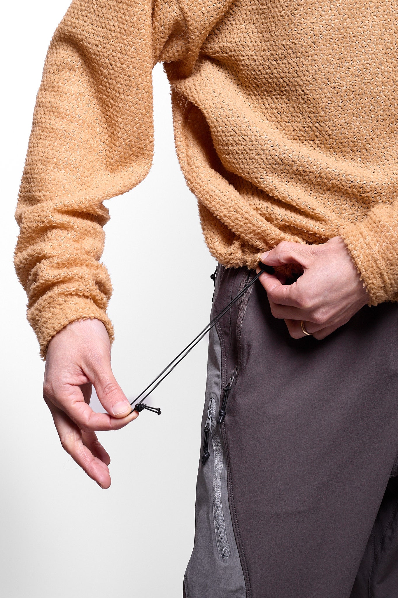 - Cinches at hood and hem