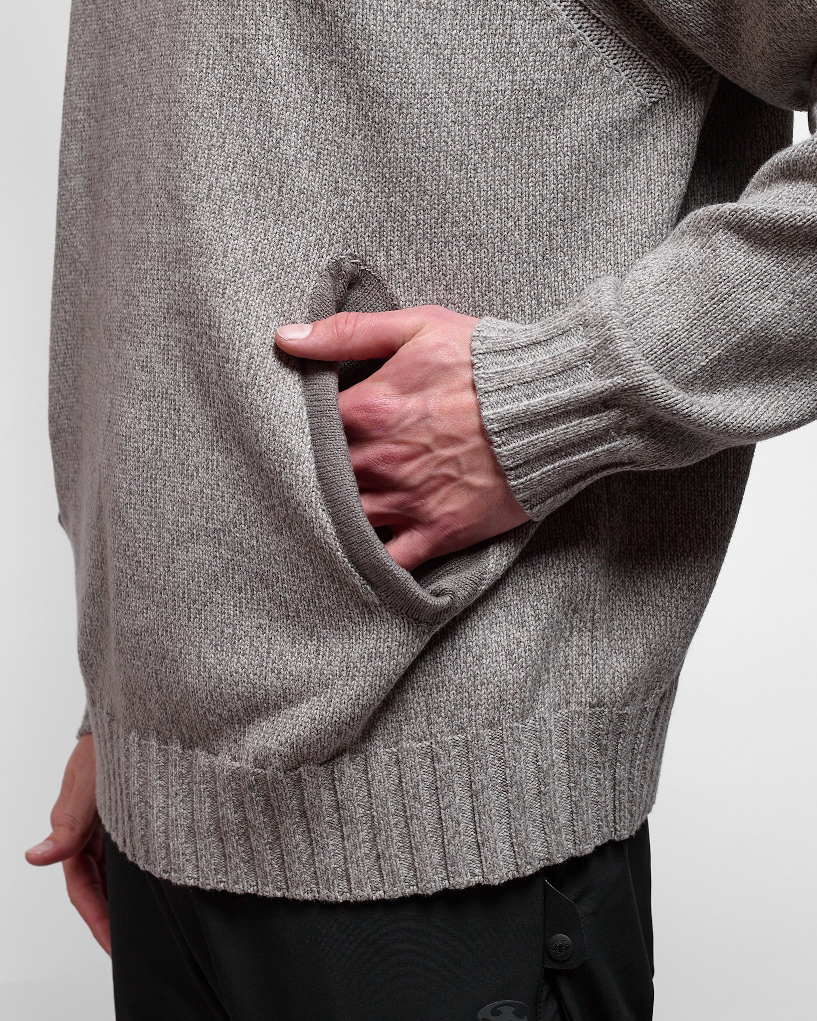 A chunky knit to toss on before or after activity, or whenever you want to look nice. It's constructed from a dense cotton/acrylic blend and has a nifty kangaroo pocket for your hands.