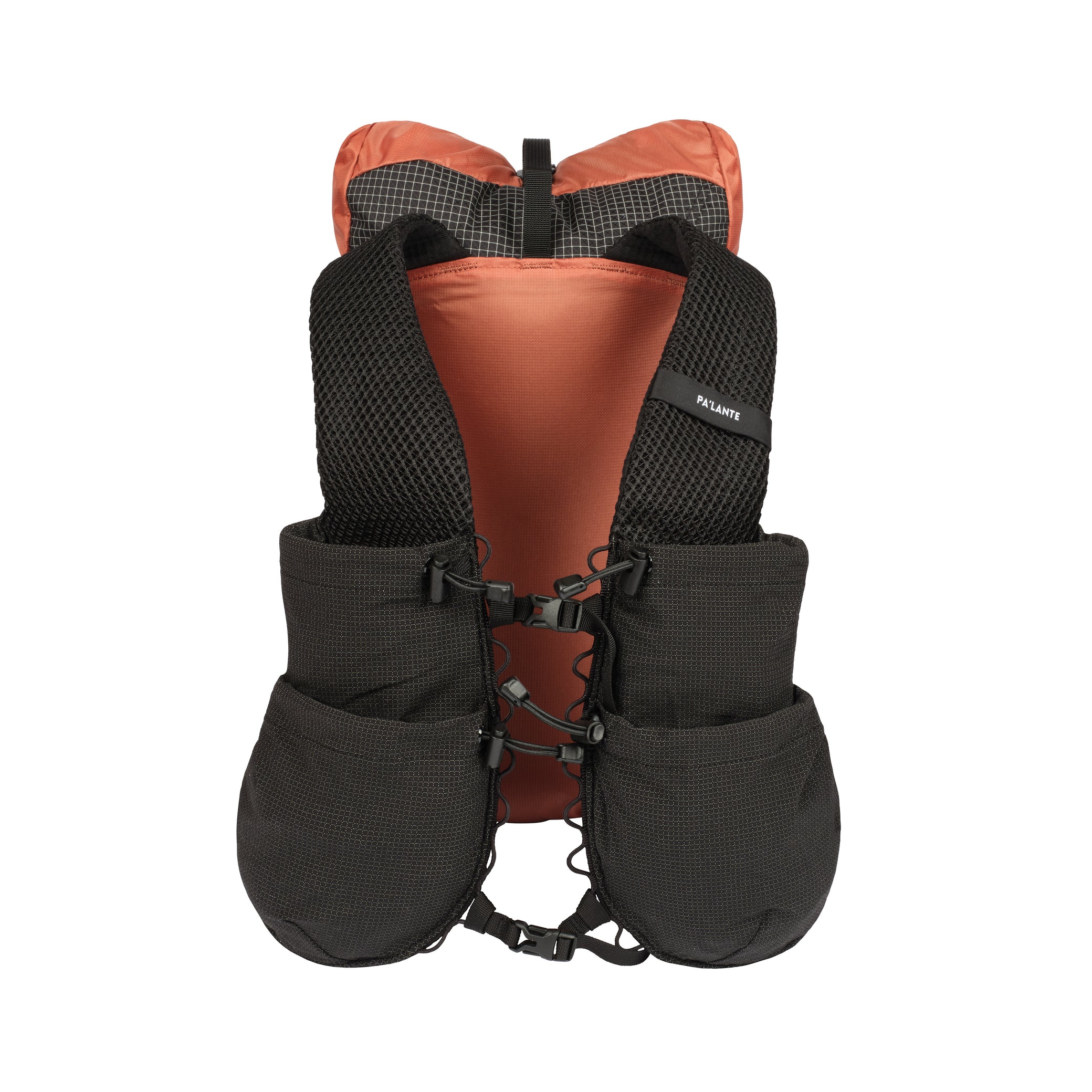 - Four grid mesh cinchable strap pockets: two bottle sized, and two much larger pockets for sandwhiches, bao buns, etc