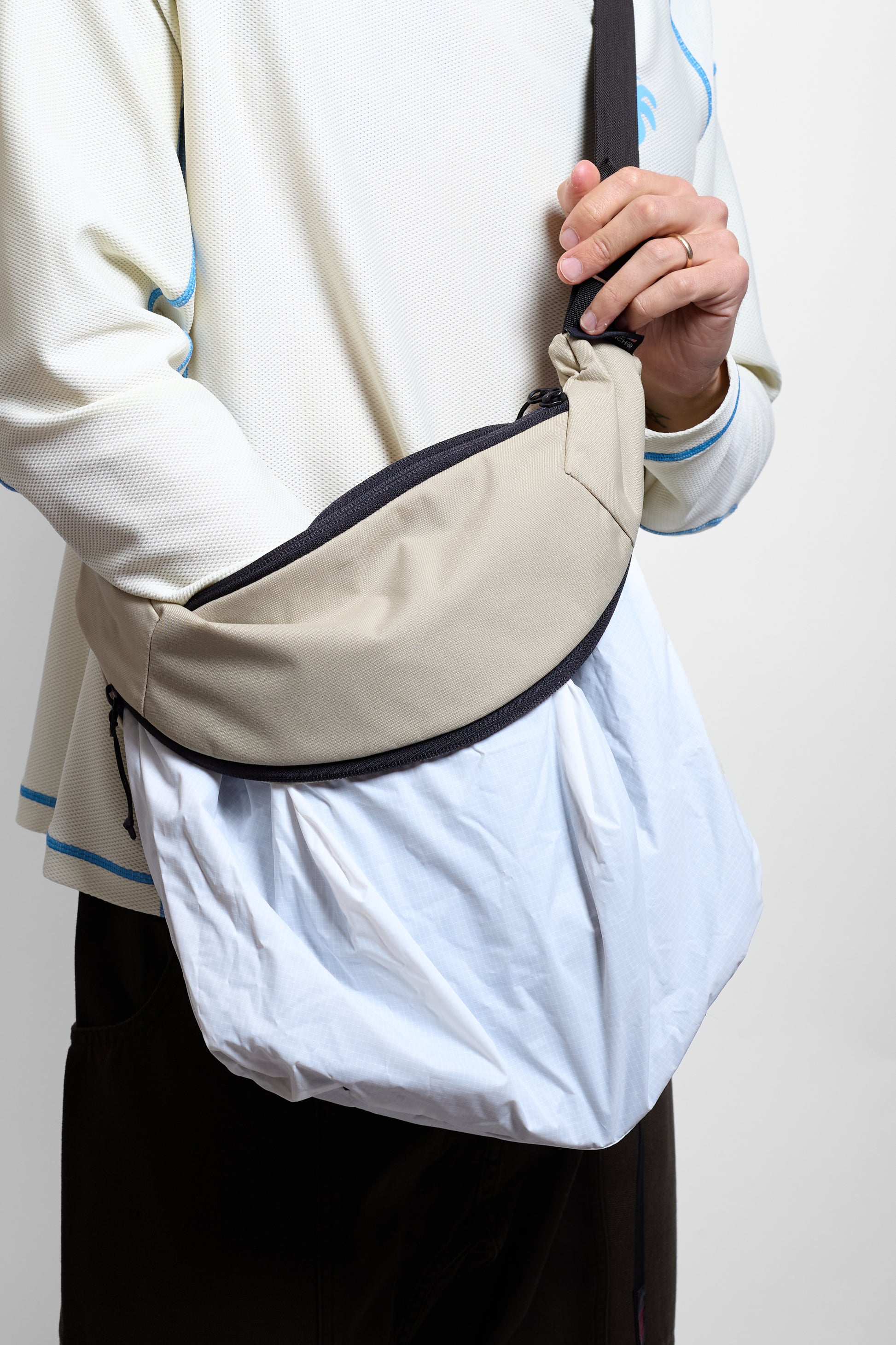 An amphibian-inspired sling bag with three distinct modalities, Rishi Assar's Toad Tote is the bag we never knew we needed but can't imagine life without. This clever system allows the bag to reach two different crossbody sizes and a third big tote size for when you bought a few more things than you planned to or need a spot to stash your puffer.