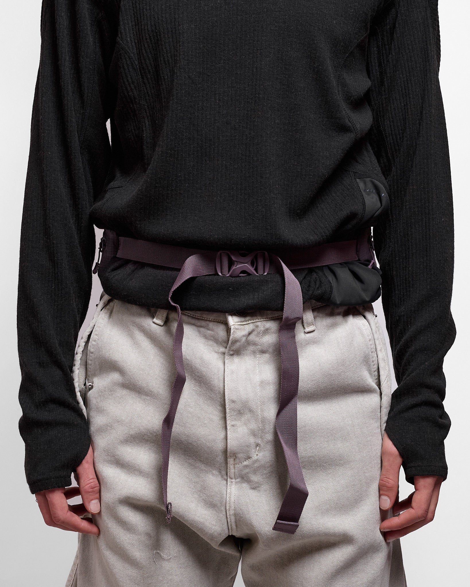 - Secured with a central waist buckle