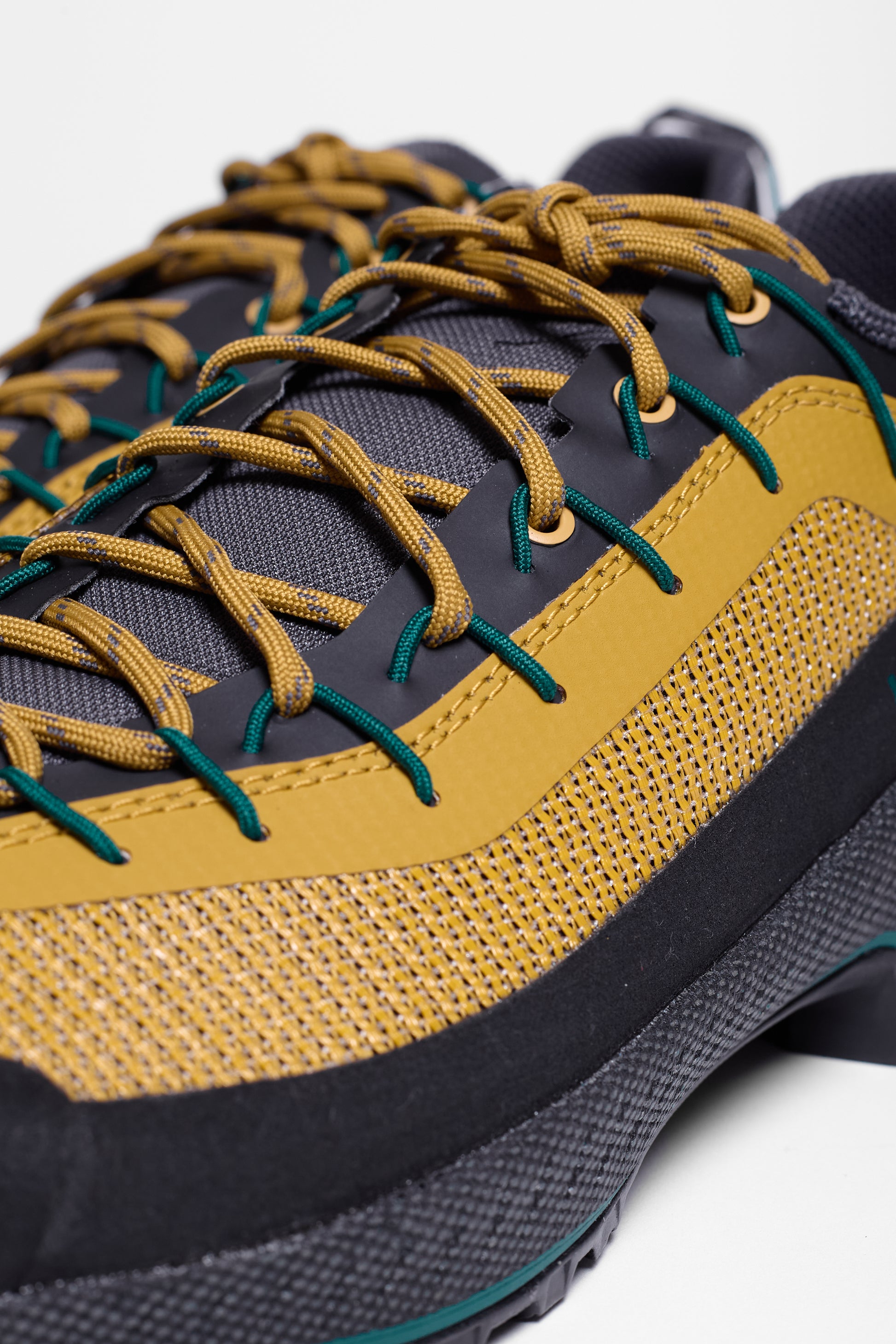 - Recycled materials throughout: upper yarn, laces, tongue fabric, internal mesh, lacing harnesses and hooks, rubber rands and EVA midsoles are also made with with 7% recycled content