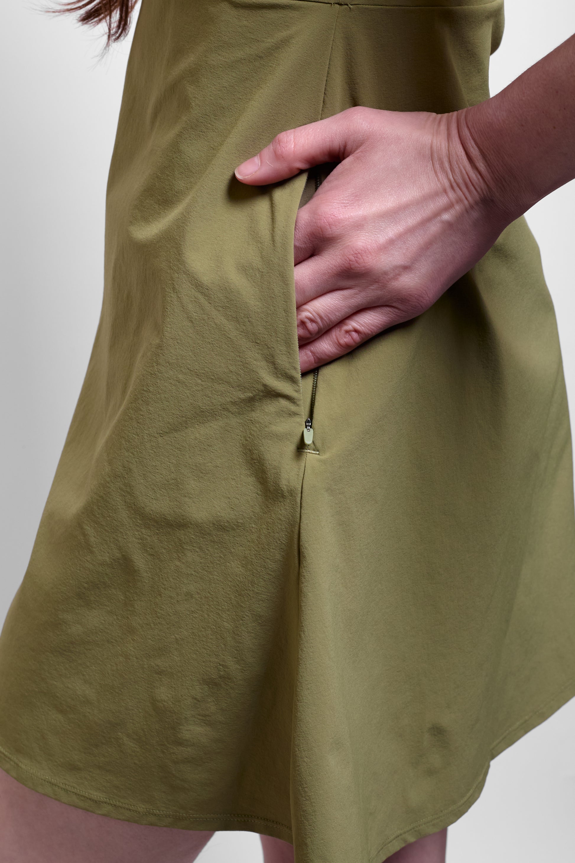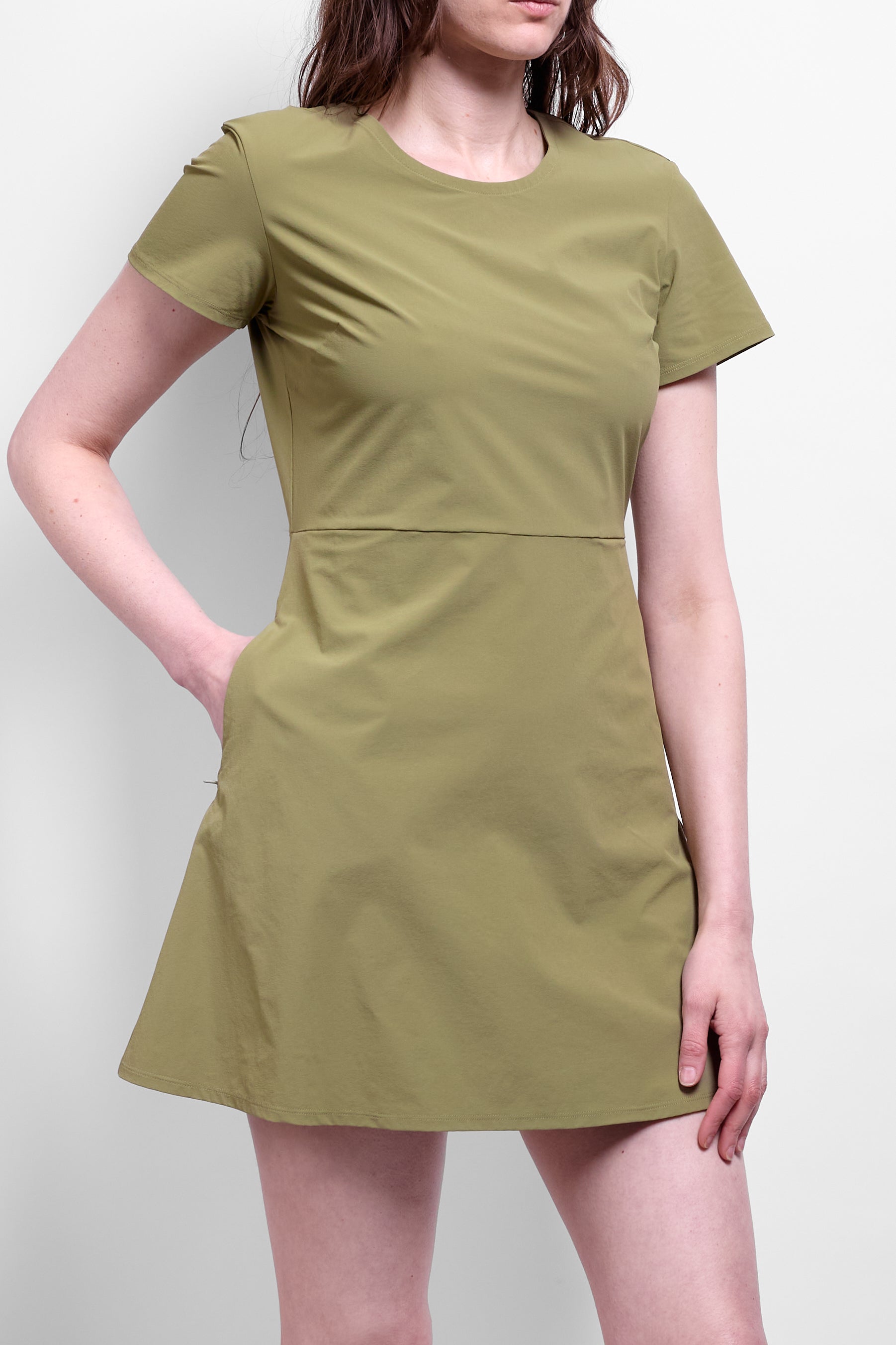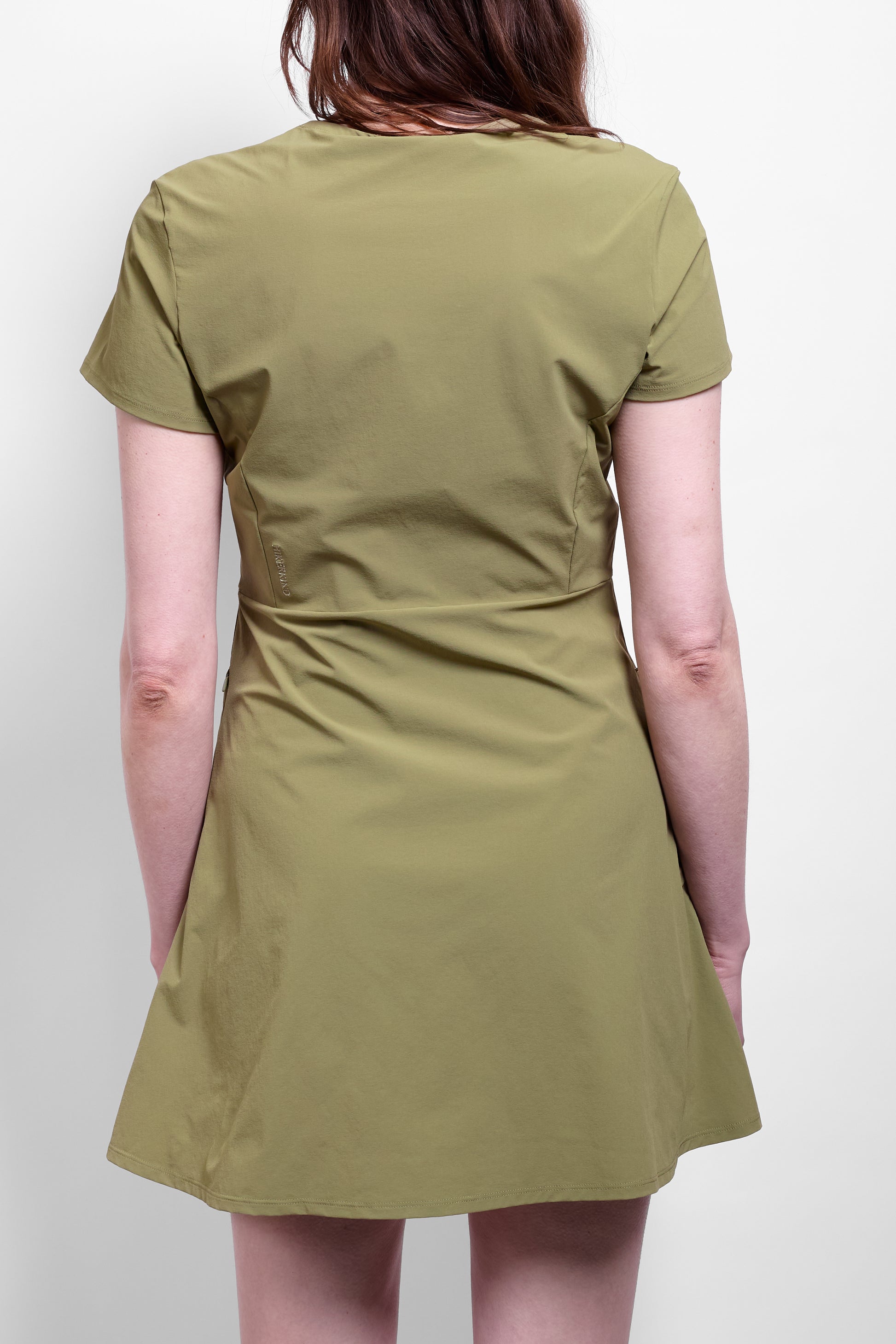 This sleek and elegant dress boasts ample sun protection, durability and moisture-wicking properties in a practical, everyday package. An essential on or off the trail.